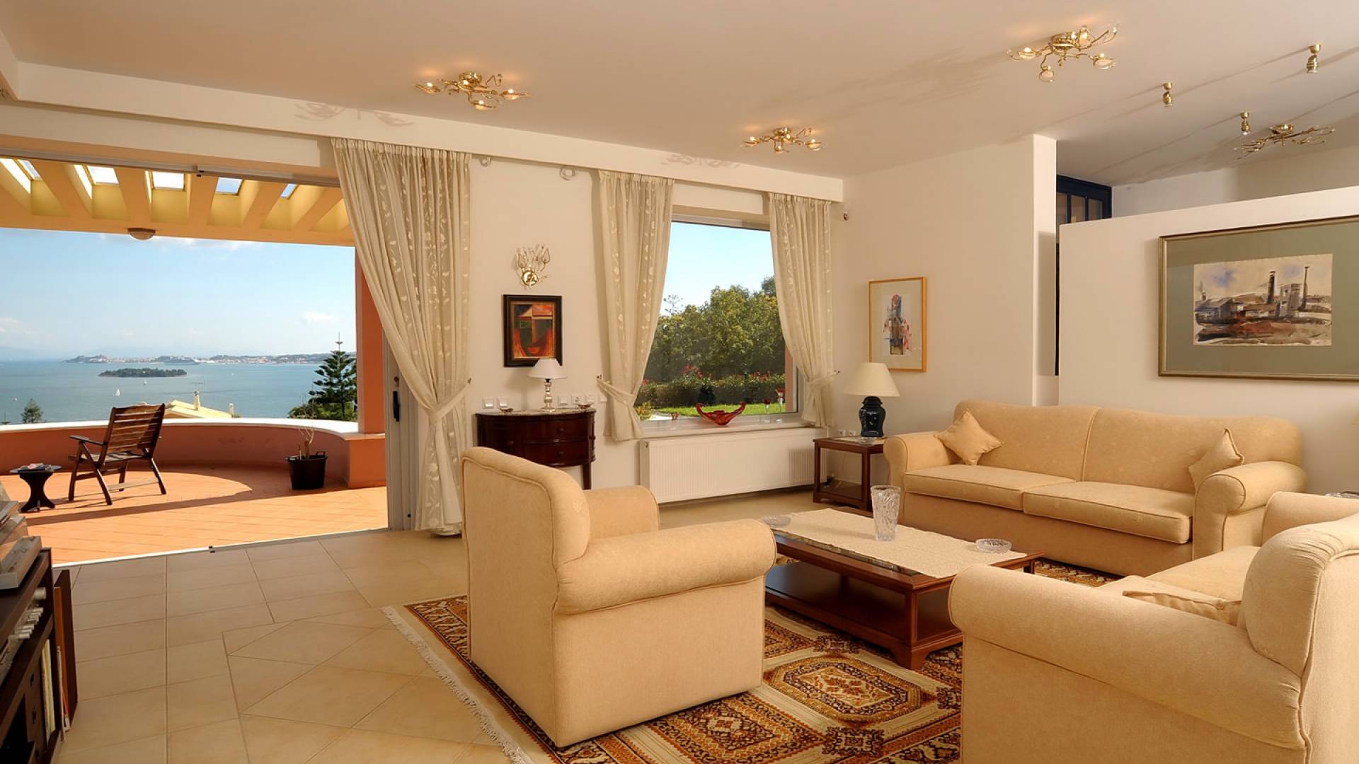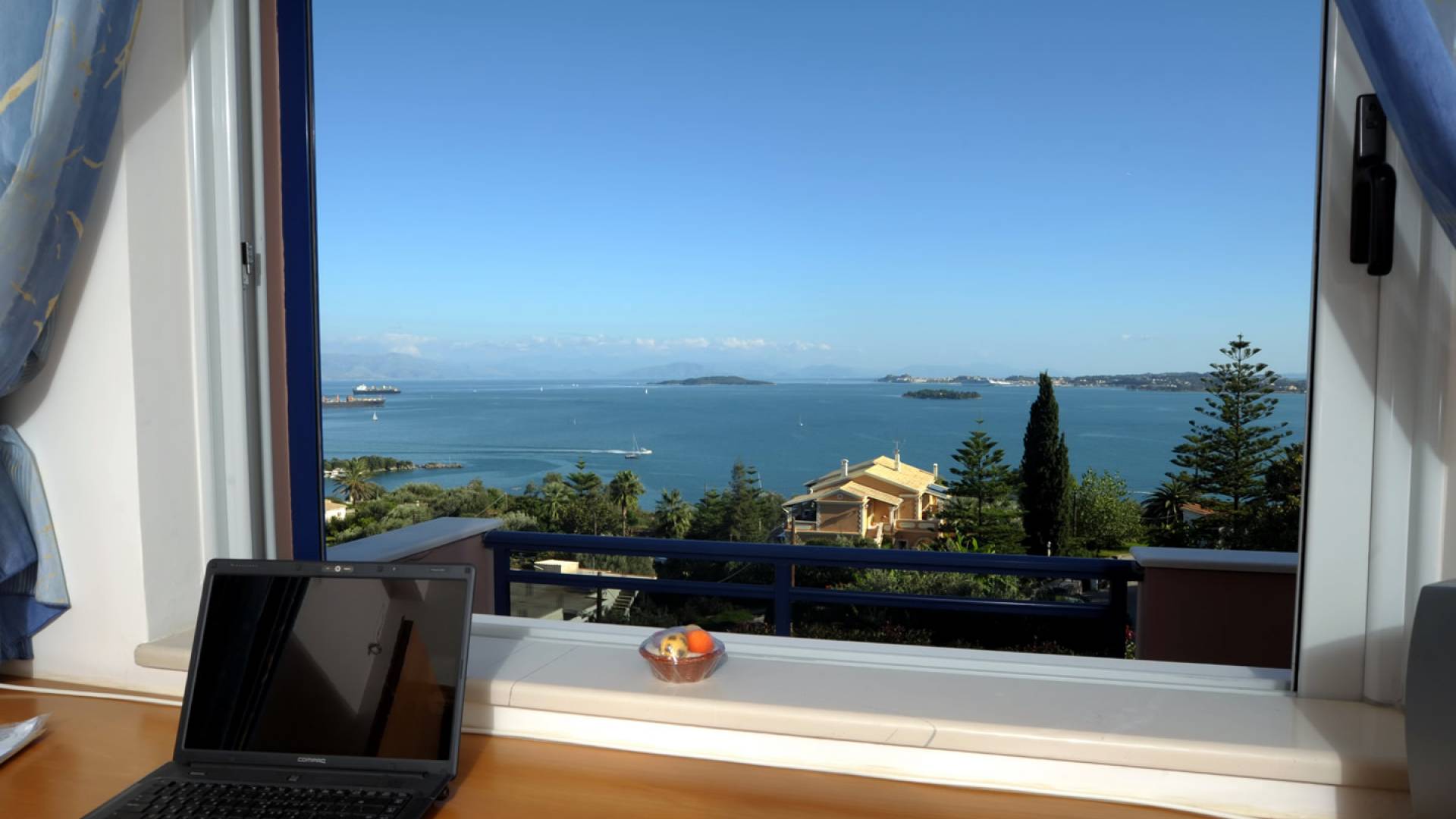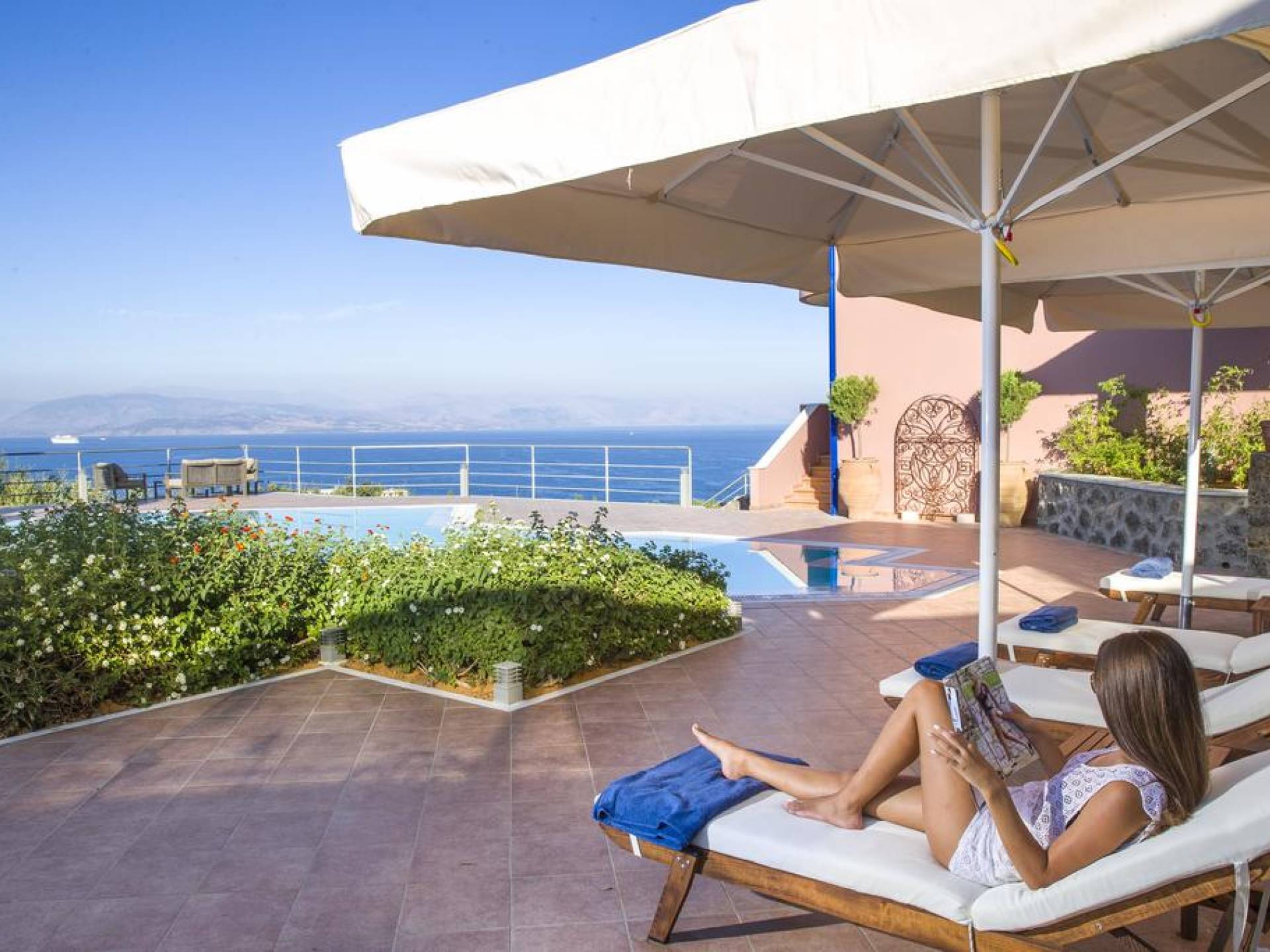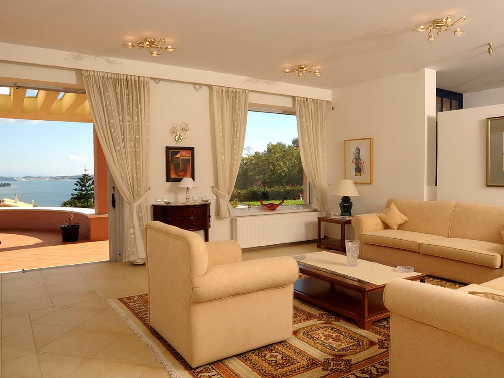 Вилла Moon Reach Corfu площадью 600 кв. метров на трех уровнях со следующими характеристиками: 5 спален, 3 обеденных зоны, 2 полностью оборудованные гостиные и 1 гостиная, 1 офисное помещение с диваном и письменным столом, 5 ванных комнат, 1 из них есть джакузи (3 ванные), 3 гостевых туалета, один из них в саду, гараж на 3 машины, электрические жалюзи, сигнализация и камеры наблюдения, 1 встроенный барбекю с духовкой для выпечки, тренажерный зал с беговой дорожкой, велотренажер и утяжелители, 2 полностью оборудованные кухни, Wi-Fi во всем доме, полностью благоустроенный сад 2000 м2 с бассейном 11 х 5,5 метров с захватывающим видом на море и окружающие горы.