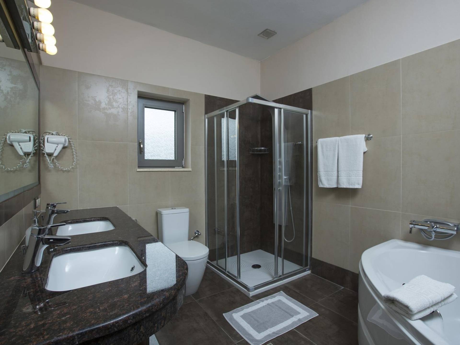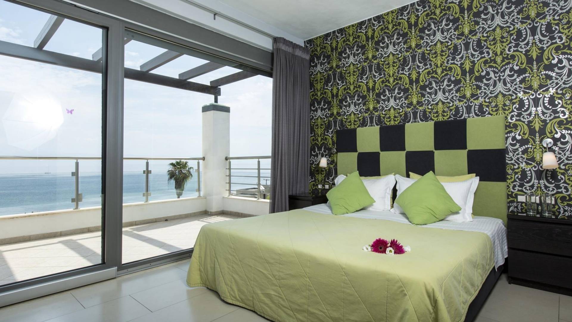 Во всех интерьерах отеля Corfu Paradise есть большие раздвижные стеклянные двери, которые открываются на большие частные террасы. С открытыми дверями жилое пространство почти удваивается, и комнаты залиты теплым воздухом или прохладным звездным светом. Из каждой комнаты и из умиротворяющего убежища вашей собственной роскошной спальни вы сможете полюбоваться потрясающим горизонтом и шумными горами материковой Греции. Наши номера в жилом стиле были разработаны с единственной целью: «Вы и ваш комфорт».