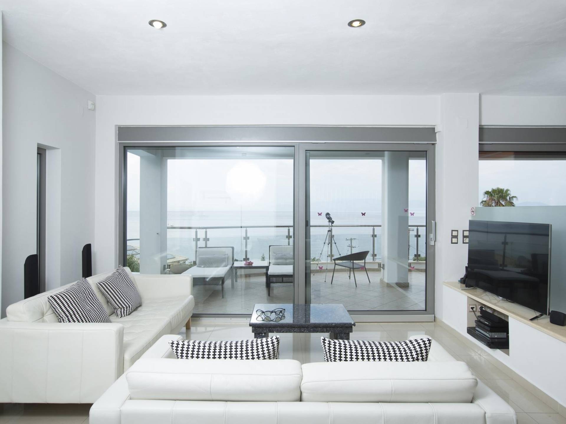 Захватывающий вид на набережную со всех сторон. Уникальные панорамы на море и горы. Всего один шаг на вашу частную большую террасу и погрузитесь в панорамный вид на Ионическое море и материковую Грецию, или посмотрите в свой бесплатный телескоп и понаблюдайте за жизнью на пляже Мораитика, Старой крепости города Корфу или понаблюдайте за местными рыбаками в их лодках «кайки».