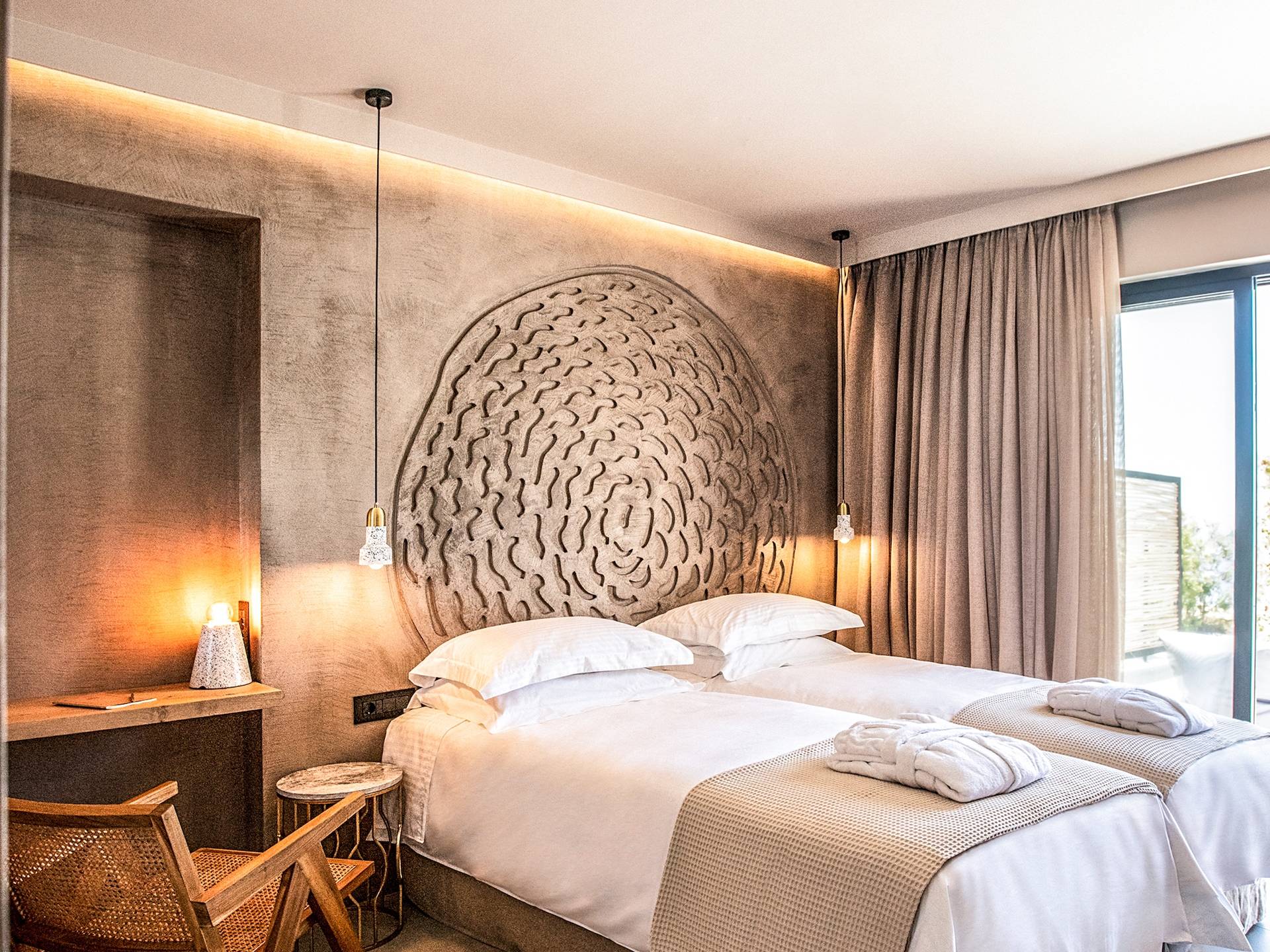 Вилла Augustus может вместить до шести человек на общей площади 75 кв.м. На первом этаже есть спальня с двуспальной кроватью размера "king-size" или двумя односпальными кроватями, ванная комната и гостиная. На первом этаже вы найдете главную спальню с одной двуспальной кроватью размера «king-size» и ванной комнатой. Вдохновленный средиземноморским образом жизни, уютный характер исходит от натуральных поверхностей и землистых тонов. Удобные подушки, подобранная вручную мебель создают теплую атмосферу. Личное пространство, где вы замедляетесь и чувствуете летний бриз. Настоящей изюминкой являются частные веранды с бесконечным бассейном с шезлонгами и валиками. Площадка для барбекю всегда готова собрать ваших друзей и семью для веселых вечеров.