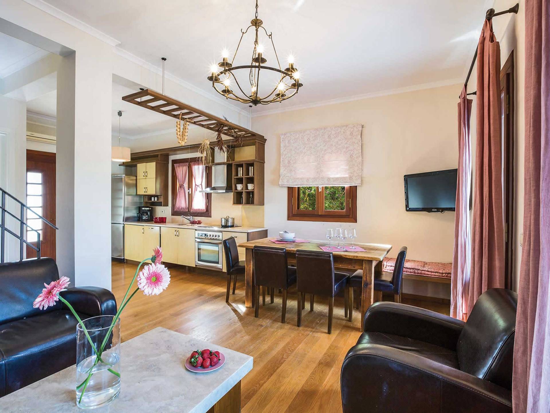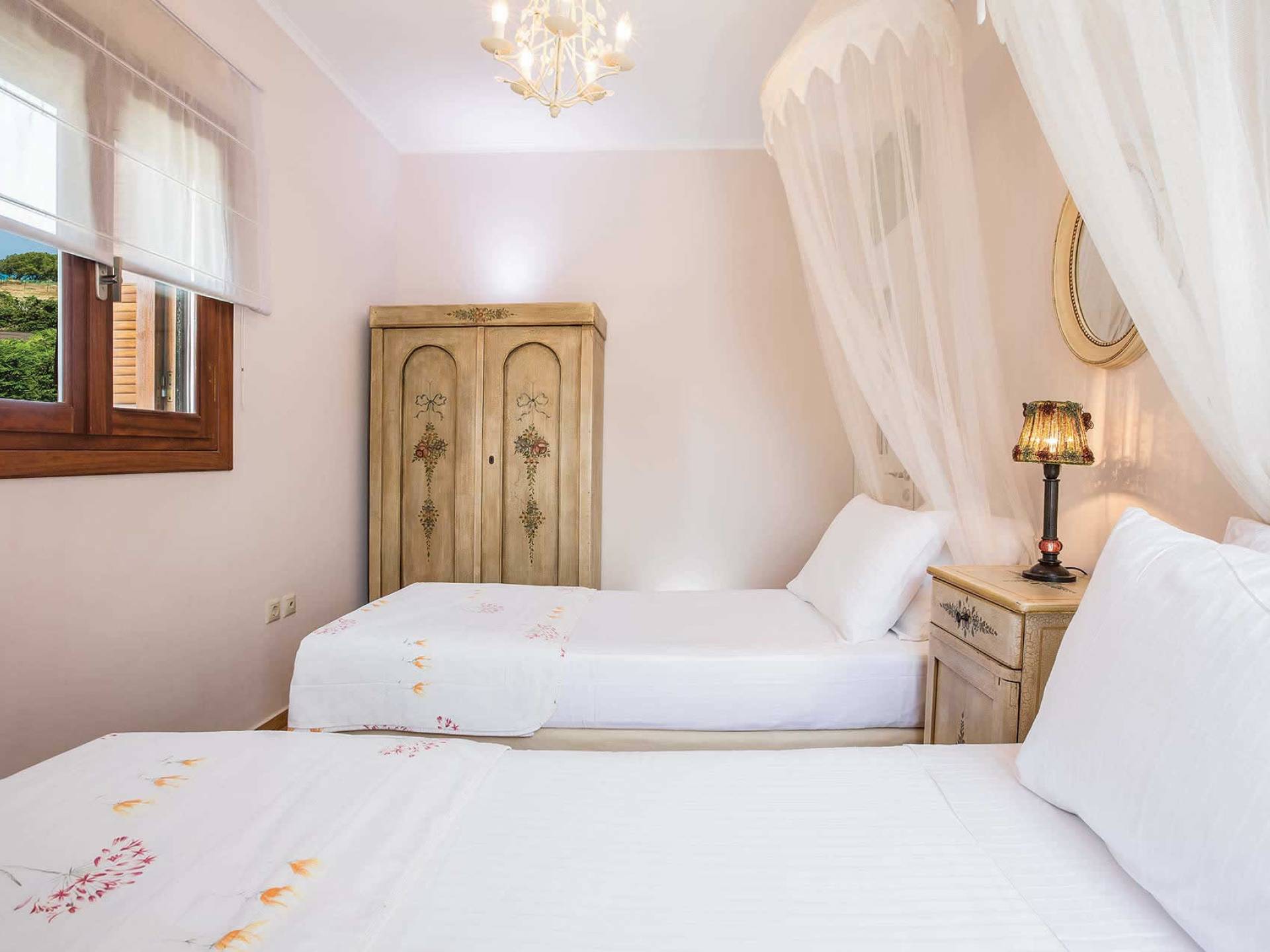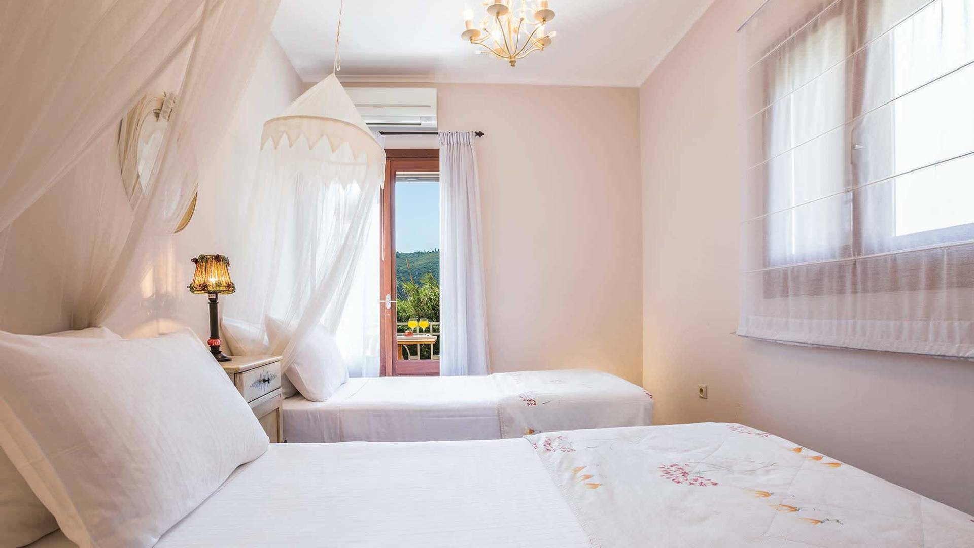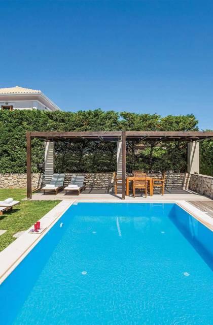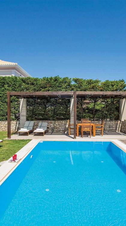 Вилла Ammos Ammos в Aeriko Villas Lefkada оформлена в индивидуальном стиле, чтобы придать ей собственный характер. Гостиная и кухня открытой планировки выходят в сад и во внутренний дворик с частным бассейном. У бассейна есть большая тенистая беседка с шезлонгами, стульями и обеденным столом. Роскошно обставленная гостиная оснащена спутниковым телевидением, DVD, CD и радио. Полностью оборудованная кухня также оснащена посудомоечной и стиральной машинами. Наверху есть две спальни, одна с двуспальной кроватью, а другая с двумя односпальными кроватями.