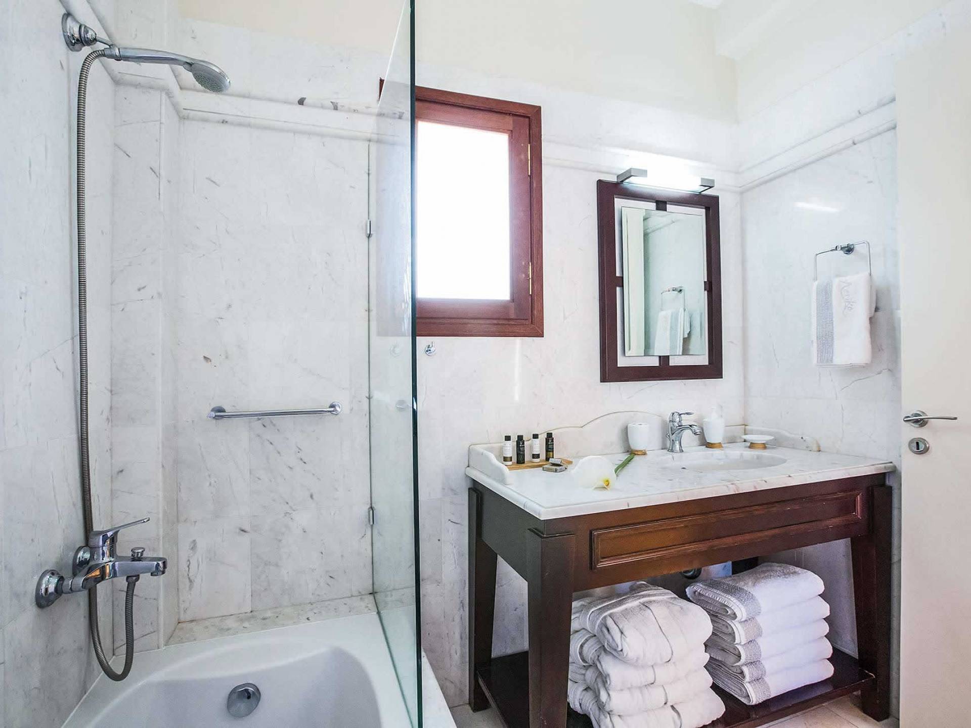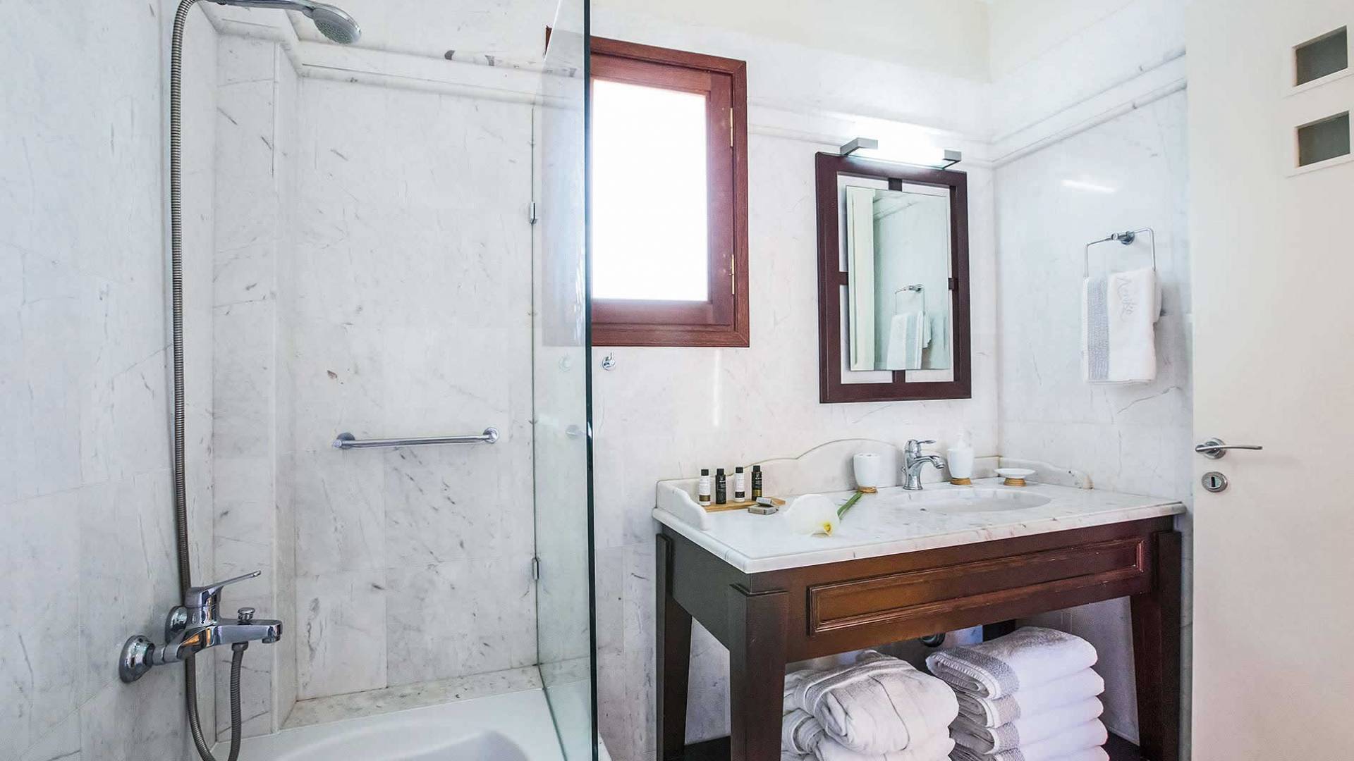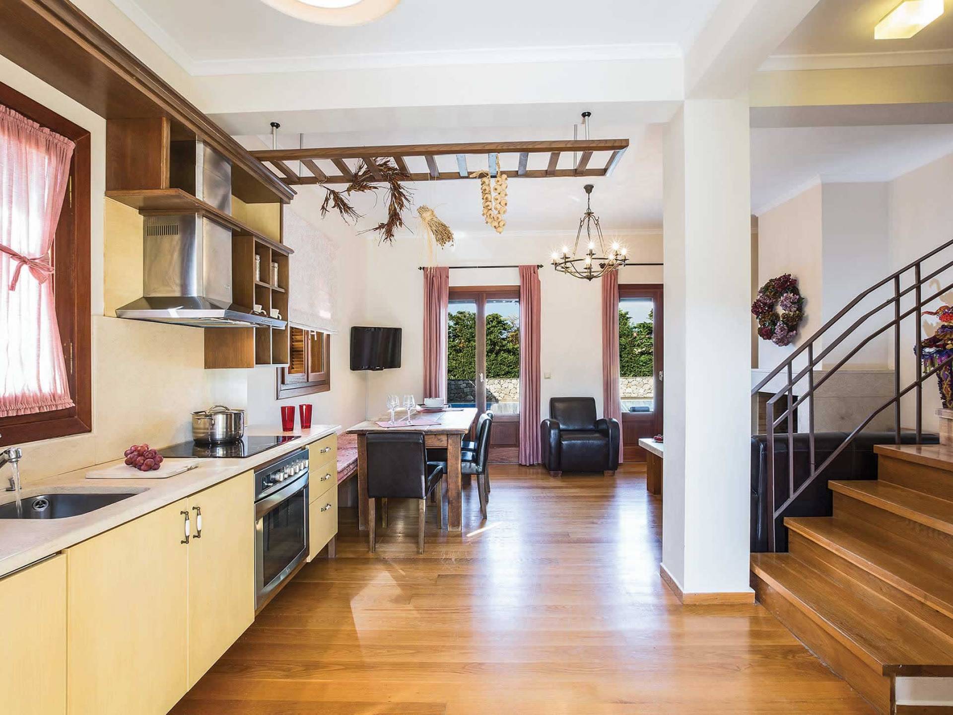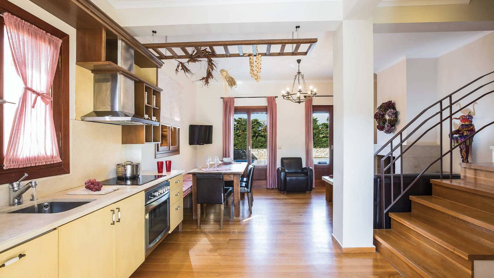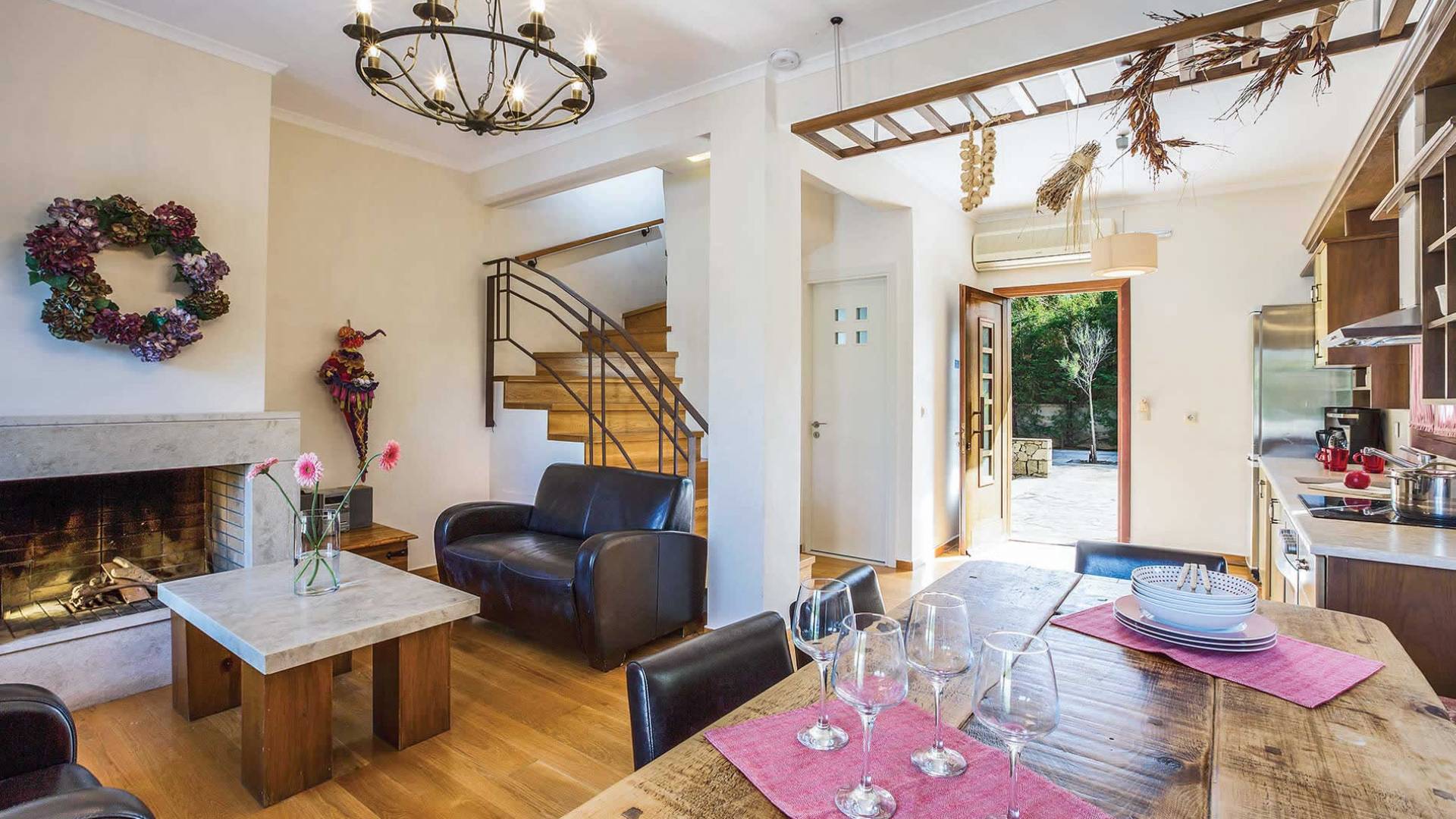 При необходимости в гостиную можно добавить дополнительную раскладную кровать для пятого человека. Все спальни большие по размеру, имеют балкон и предлагают захватывающий вид на открытое море. Есть две ванные комнаты, одна наверху, а другая внизу. Дубовые полы по всему дому и ванные комнаты, отделанные мраморной плиткой, добавляют нотку роскоши. Дома кондиционированы и отапливаются повсюду.