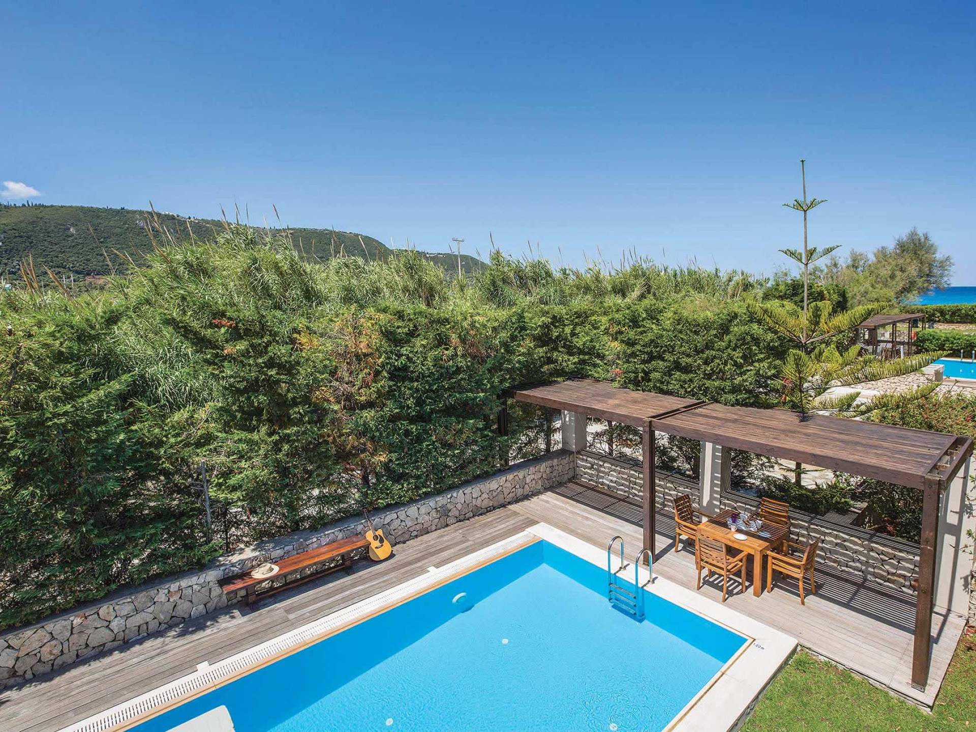 Вилла Nefeli Ammos at Aeriko Villas Lefkada была индивидуально оформлена, чтобы придать ей неповторимый характер. Гостиная и кухня открытой планировки выходят в сад и патио с частным бассейном. У бассейна есть большая тенистая беседка с шезлонгами, стульями и обеденным столом. В роскошно обставленной гостиной есть спутниковое телевидение, DVD, CD и радио. На полностью оборудованной кухне установлены посудомоечная и стиральная машины. На втором этаже две спальни, одна с двуспальной кроватью, а другая с двумя односпальными кроватями.