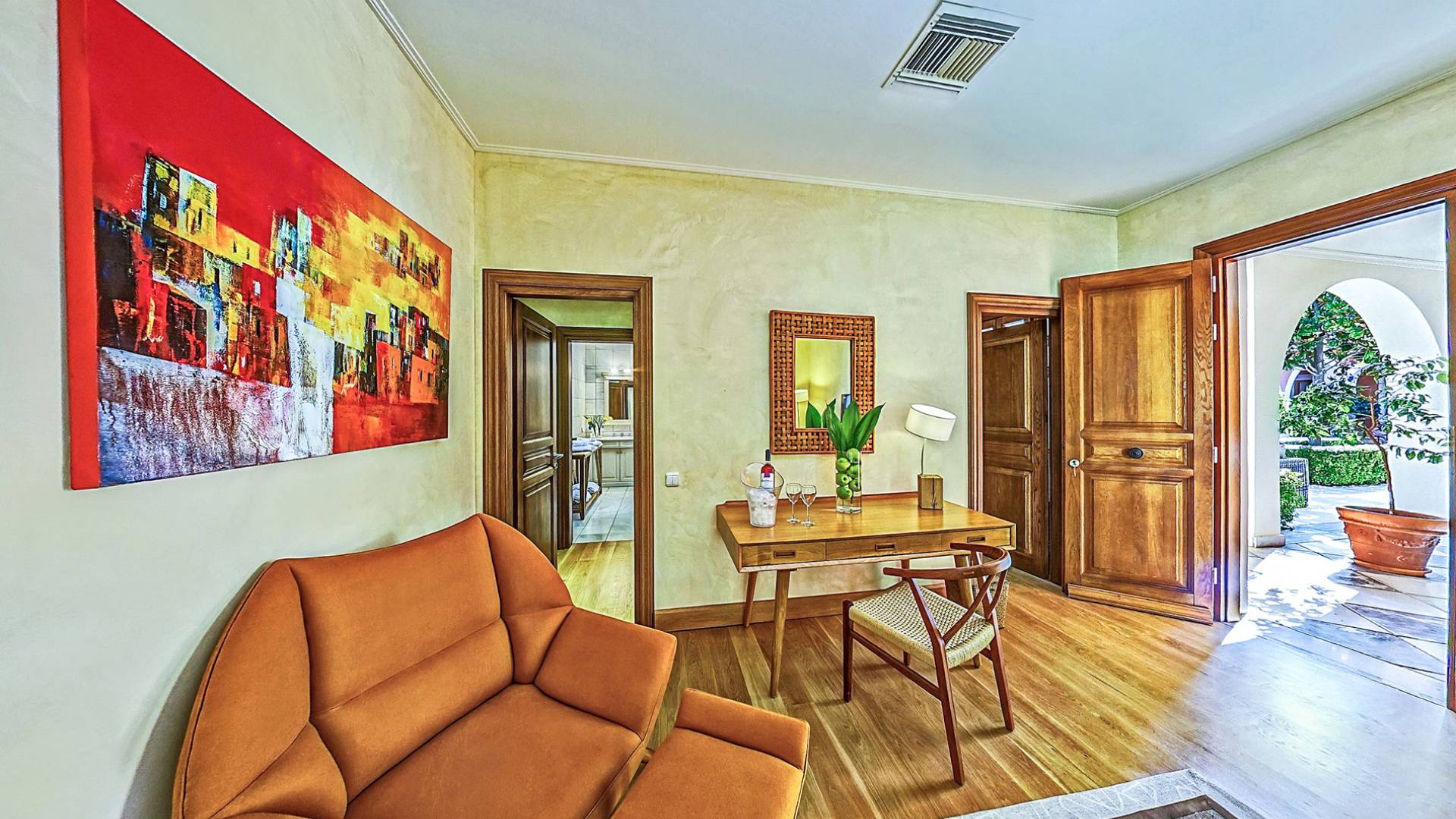 Вилла Венециано построена в уникальном венецианском архитектурном стиле с элементами византийского дизайна. Он состоит из 5 роскошных люксов, в которых могут разместиться до 12 человек. Все номера полностью меблированы и оформлены в исключительном стильном дизайне, подчеркивающем роскошь и функциональность. Места общего пользования, такие как столовая, кухня и гостиная, просторны и привлекательны с уникальными произведениями искусства и элементами освещения. Его красивый внутренний дворик напоминает монастырь и полон цветов, где посетители могут расслабиться или насладиться напитками. Большие окна и арка выходят на улицу, в сад с барбекю и на лестницу, ведущую к бассейну с красивым домиком у бассейна. Насладитесь отдыхом и восстановлением сил в великолепном павильоне с частным пейзажным бассейном и джакузи.
