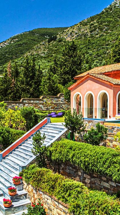 Villa Veneziano Lefkada - это роскошная вилла с 5 спальнями и частным бассейном. Вилла Veneziano была построена в 2009 году российским корабельным маклером Сергеем Каузовым в память о его жене Кристине Онассис. Расположенный на склоне холма и окруженный обширным зеленым садом площадью 2000 кв. м, он предлагает панорамный вид на бескрайнее Ионическое море, Меганисси и знаменитый остров Скорпиос, когда-то принадлежавший семье Онассис. Вилла расположена в Перигиали, в 15 минутах к югу от столицы Лефкас и в 3 минутах от популярной деревни и пристани для яхт Нидри.