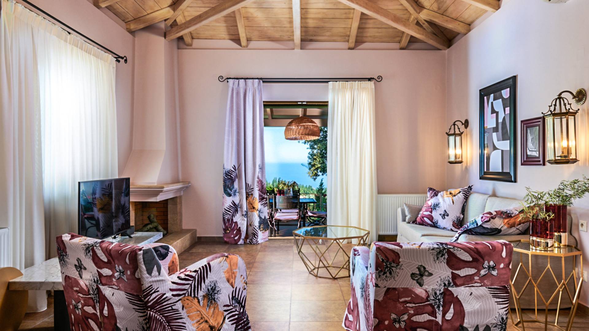 На первом этаже вы найдете просторную гостеприимную гостиную, полностью оборудованную кухню, оформленную со вкусом и мастерством, а также удобную спальню с 2 кроватями, ванной комнатой и душем. На верхнем этаже вас ждет главная спальня с ванной комнатой, джакузи и балконом, откуда вы можете каждое утро любоваться захватывающим видом на Ионические острова.