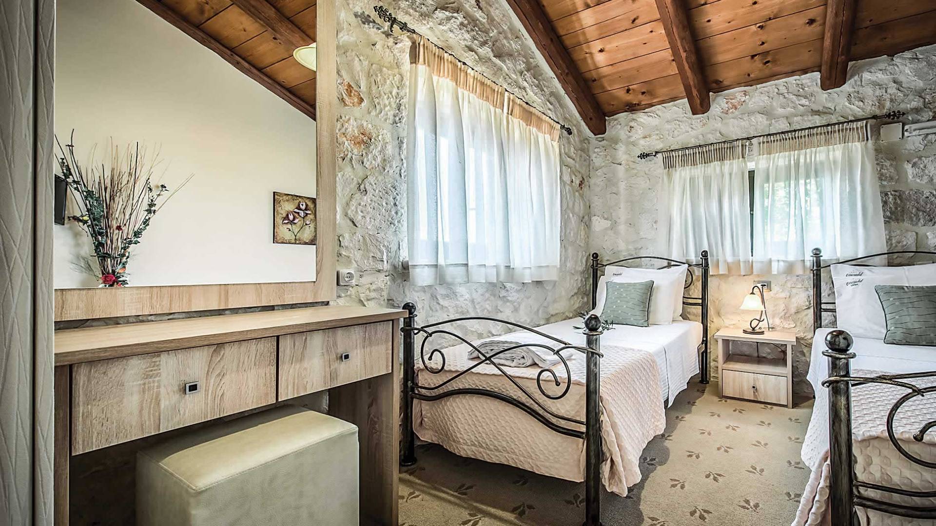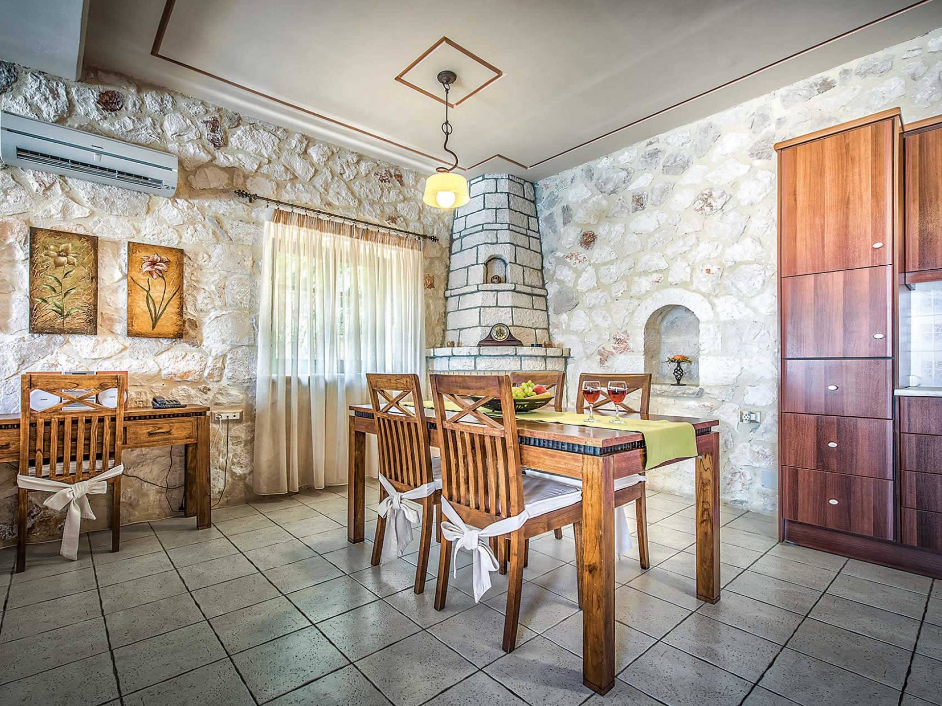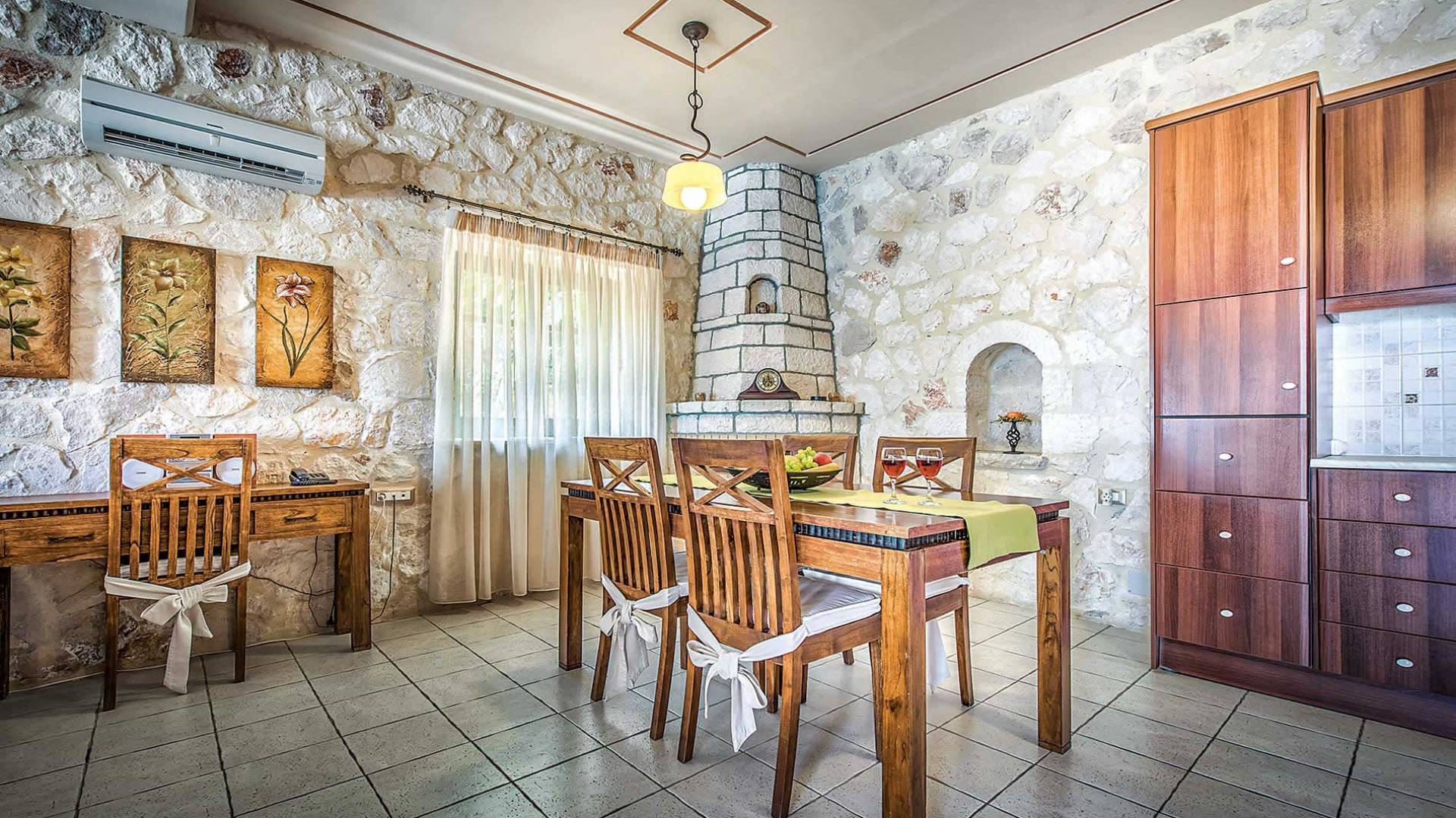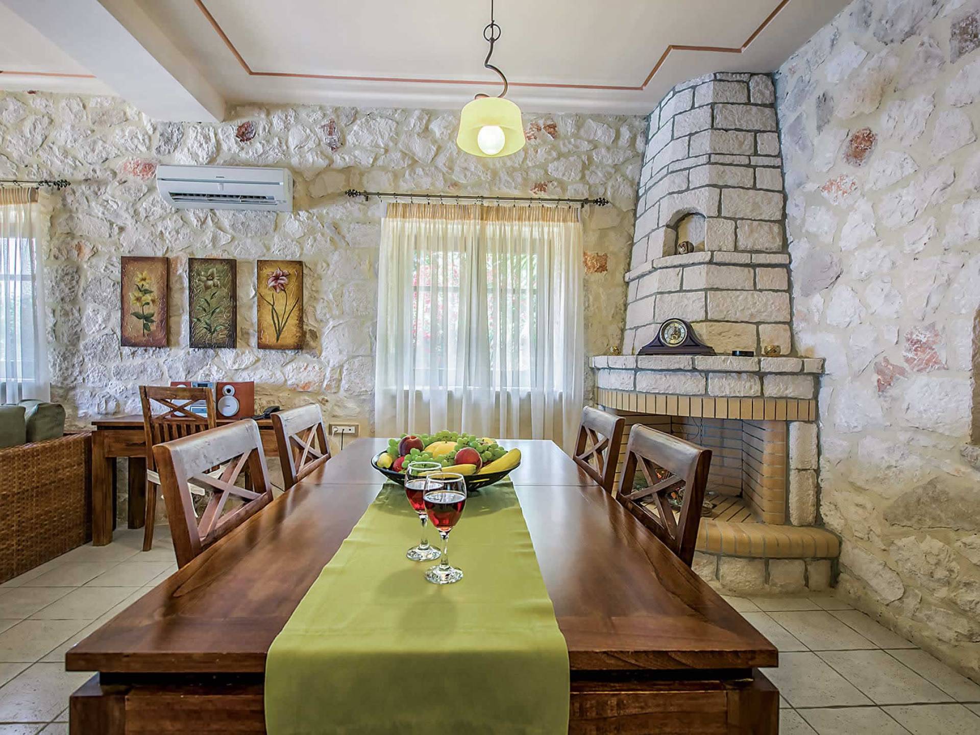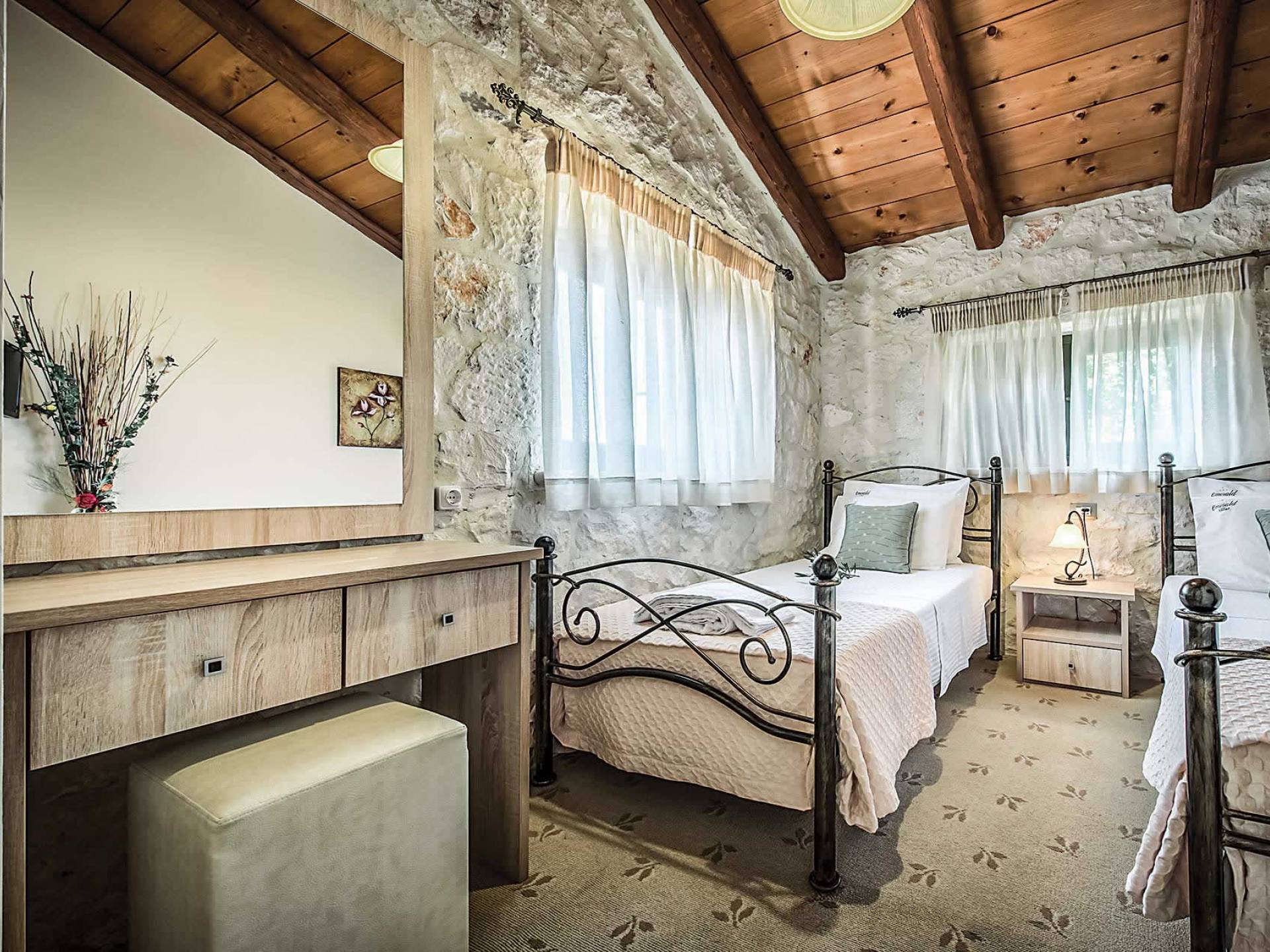 Деревянная лестница ведет в две спальни и ванную комнату наверху. В ванной комнате есть джакузи, фен и туалетные принадлежности. Снаружи вилла спроектирована так, чтобы обеспечить вам максимальную конфиденциальность и досуг во время отпуска. Огороженная территория площадью 185 кв.м с частным бассейном, шезлонгами и зонтиками, зоной отдыха, барбекю, обеденной зоной и великолепным видом на Ионическое море.