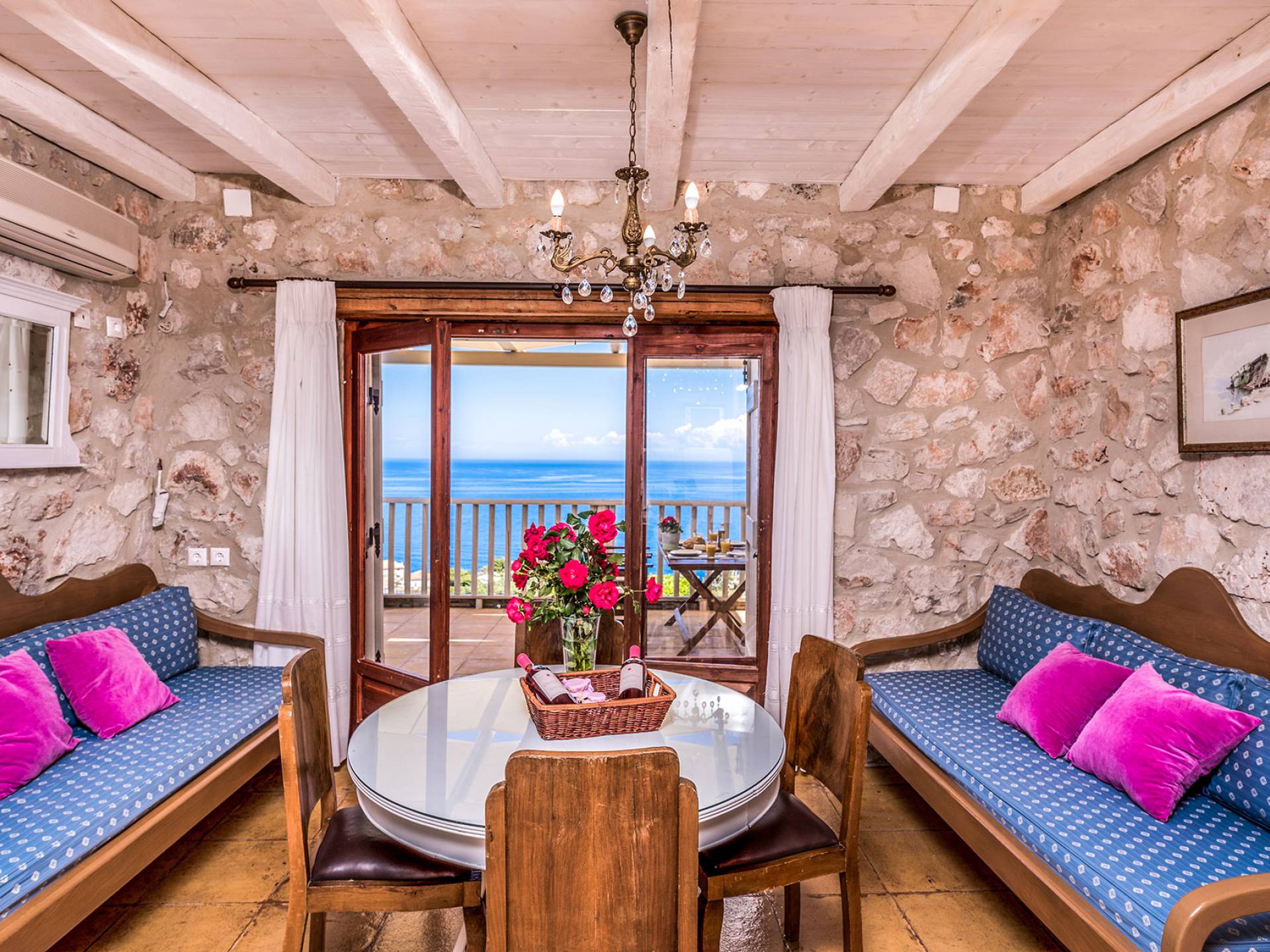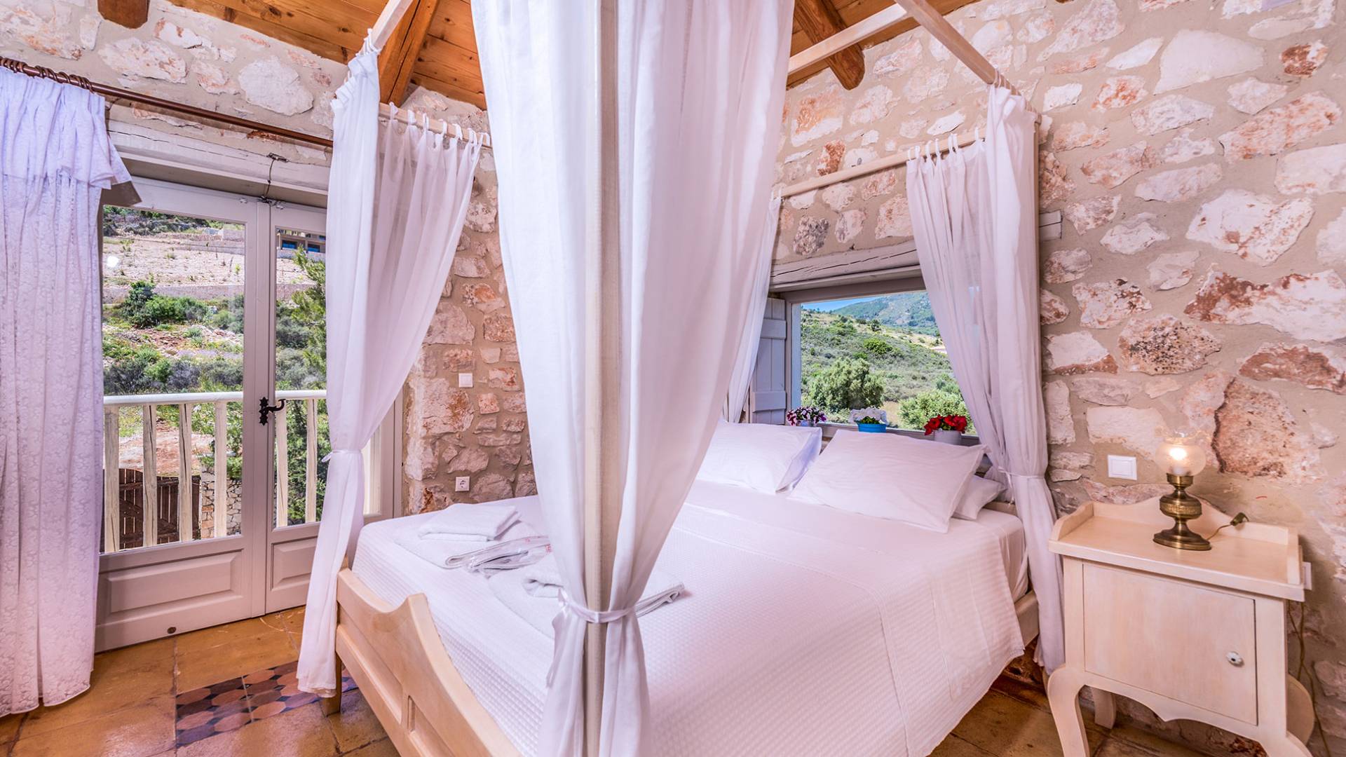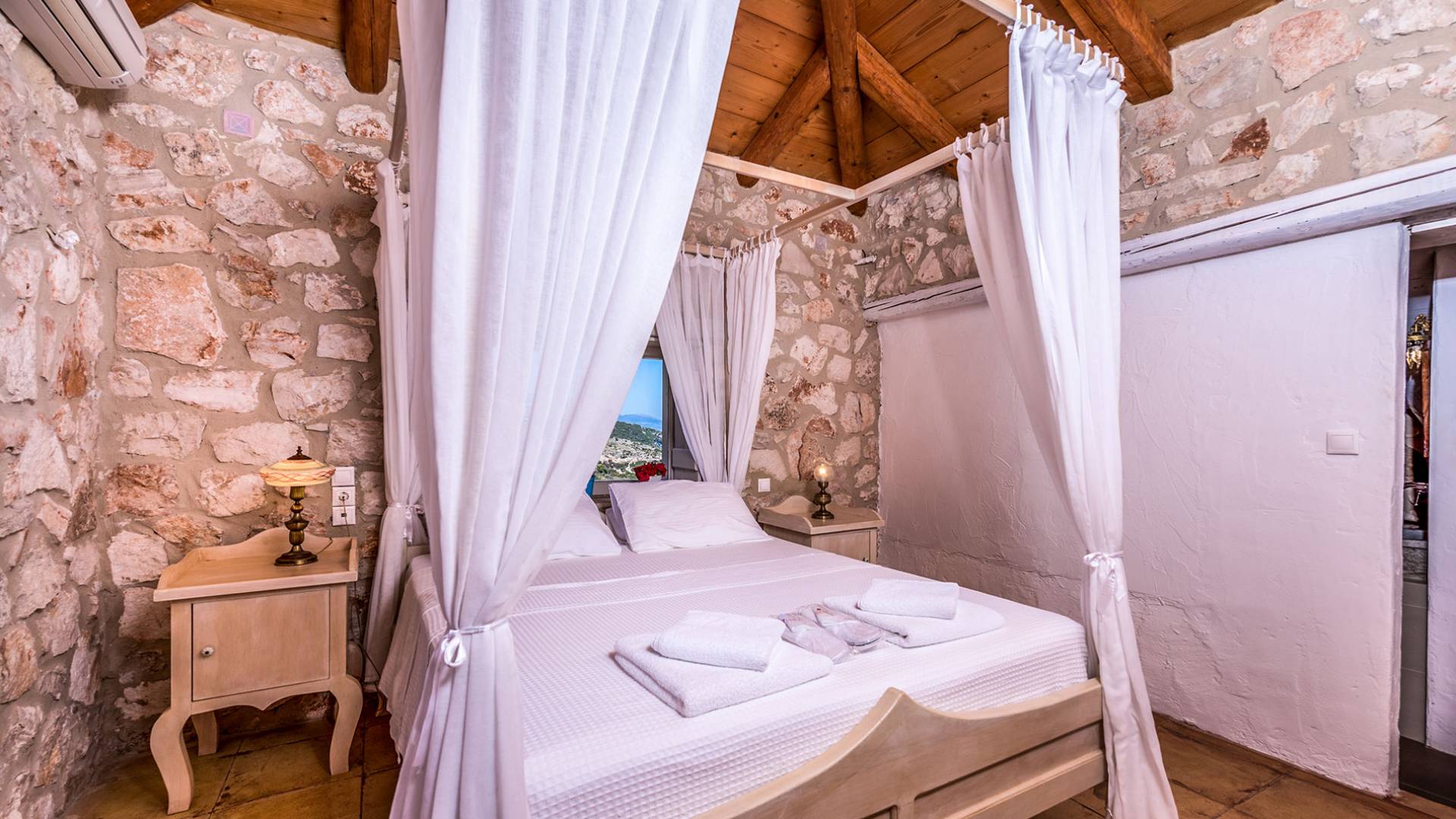 Вход на виллу находится на первом этаже и ведет в просторную гостиную / обеденную зону открытой планировки с полностью оборудованной кухней и ванной комнатой с ванной. Большая веранда с прекрасным видом обставлена деревянным столом и фиксированными диванами. Деревянная лестница ведет на второй этаж, где находится романтическая спальня с двуспальной кроватью с балдахином и собственным балконом.