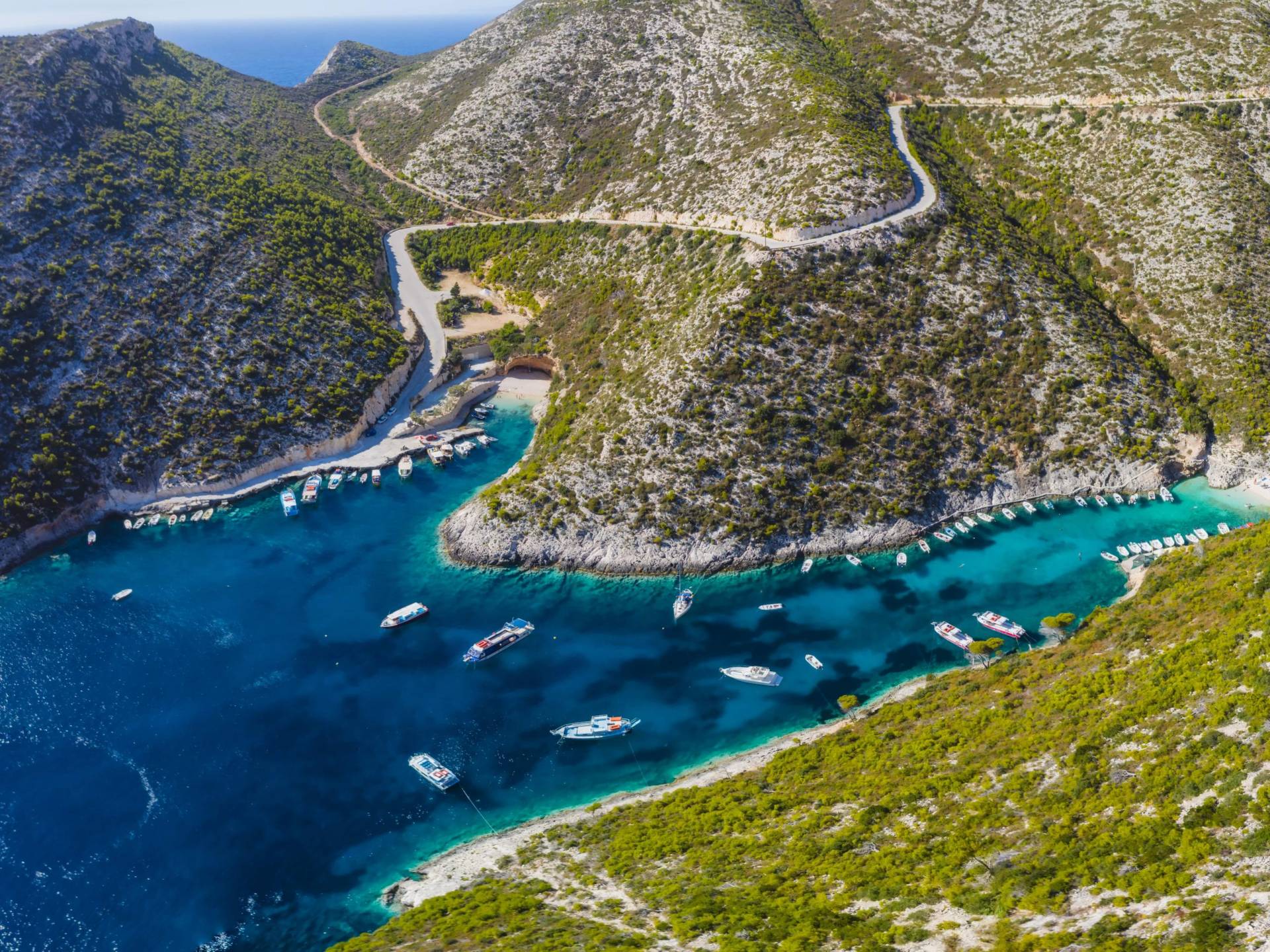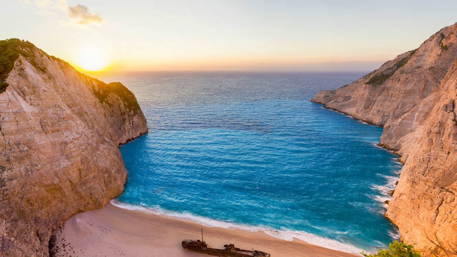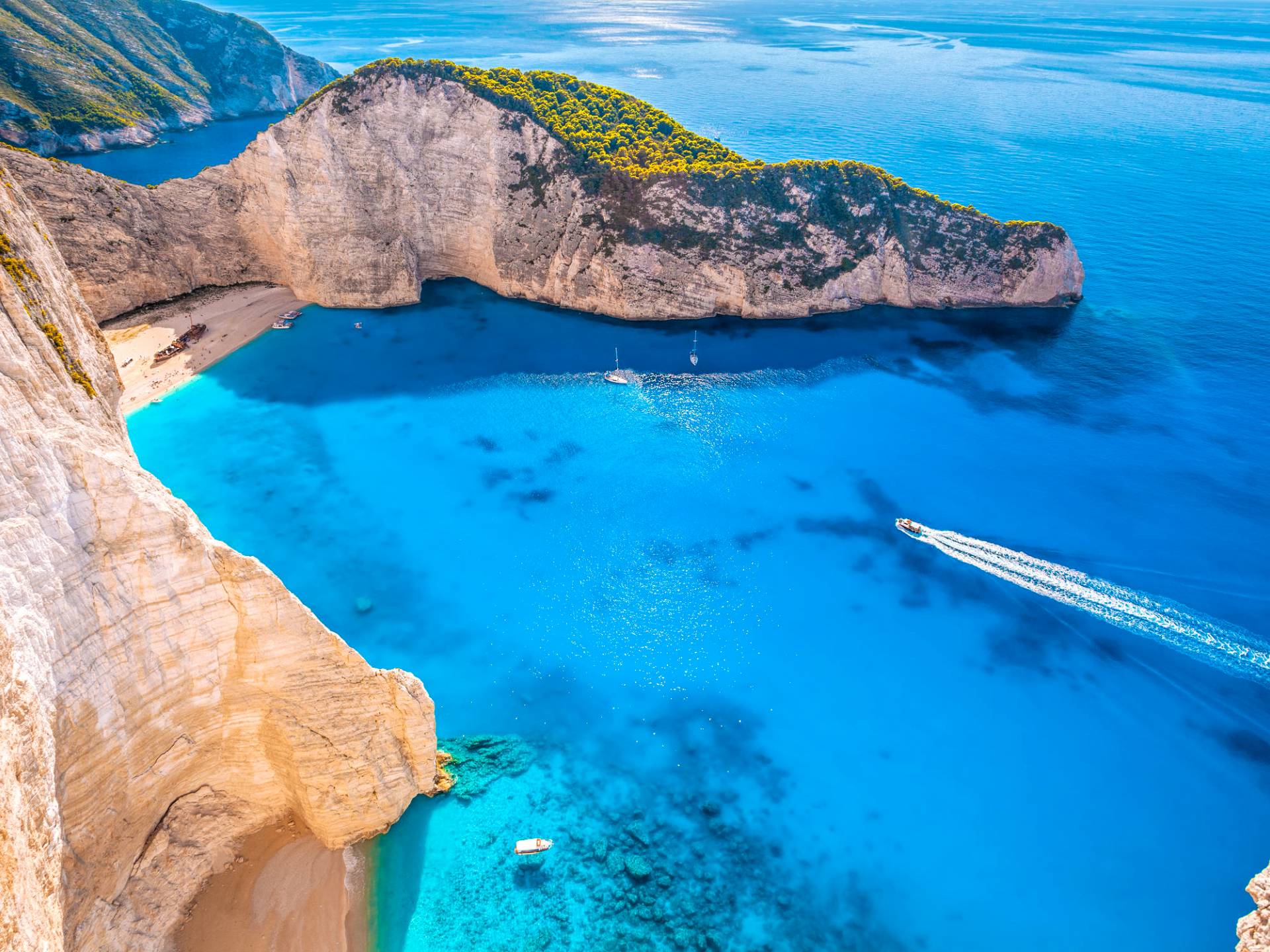 - Navagio Beach (Shipwreck Beach) – One of Greece’s most iconic beaches, famous for its turquoise waters and dramatic cliffs. Accessible by boat or from the breathtaking clifftop viewpoint nearby.