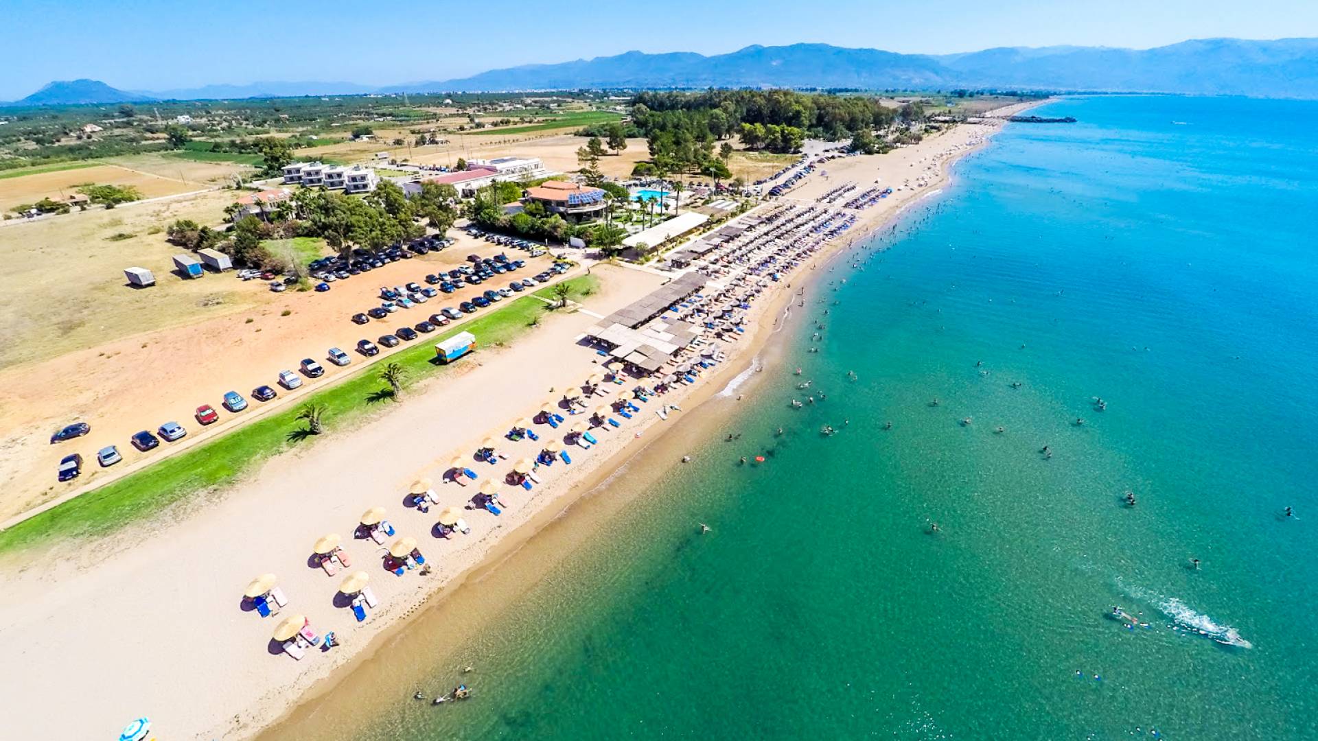 - Agios Nikolaos Beach – The closest beach and port area, with sunbeds, tavernas, and water sports.