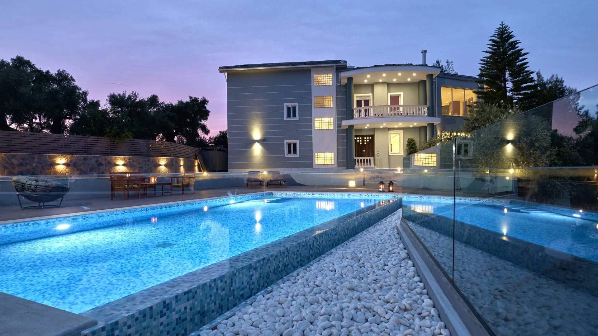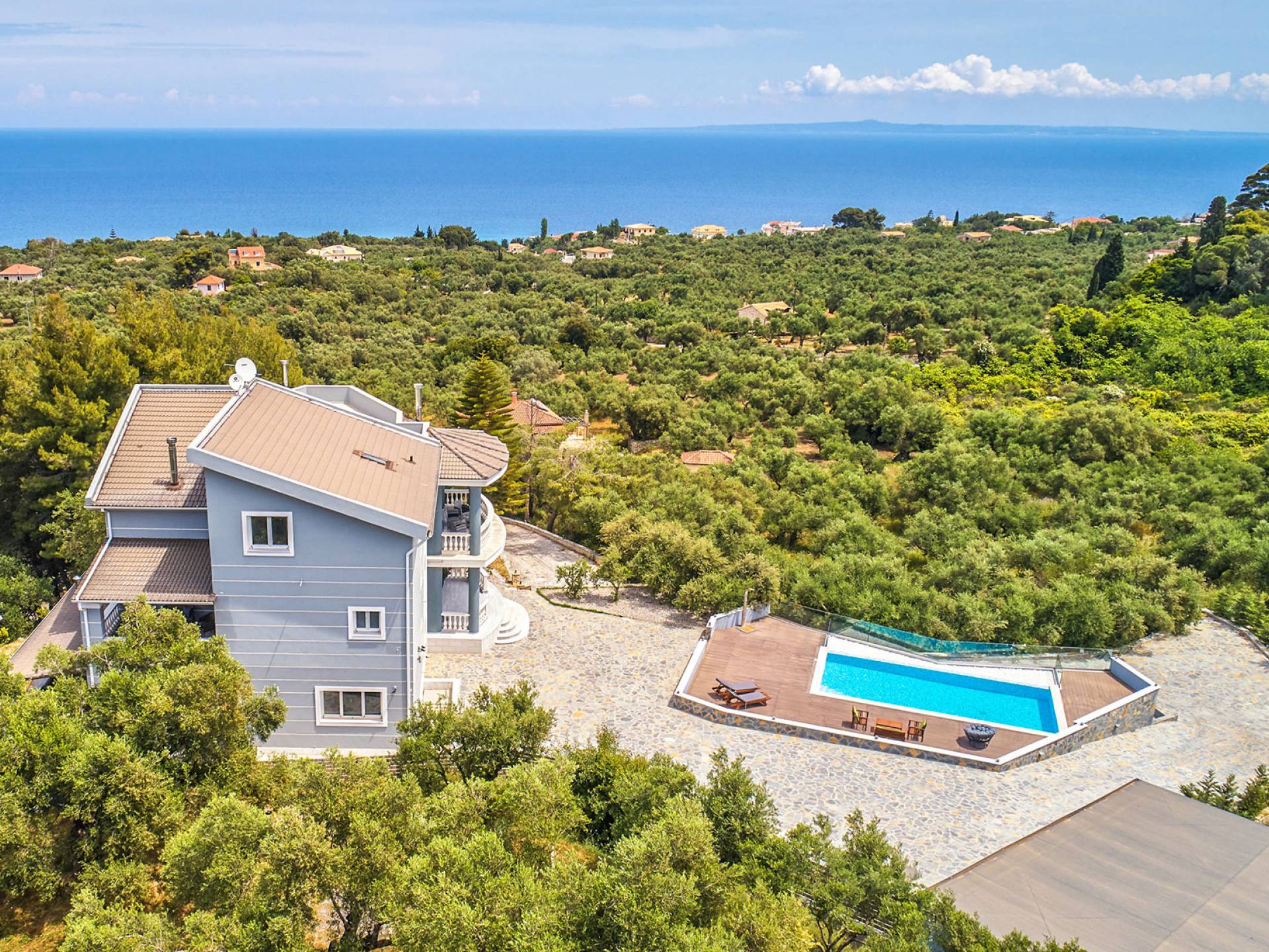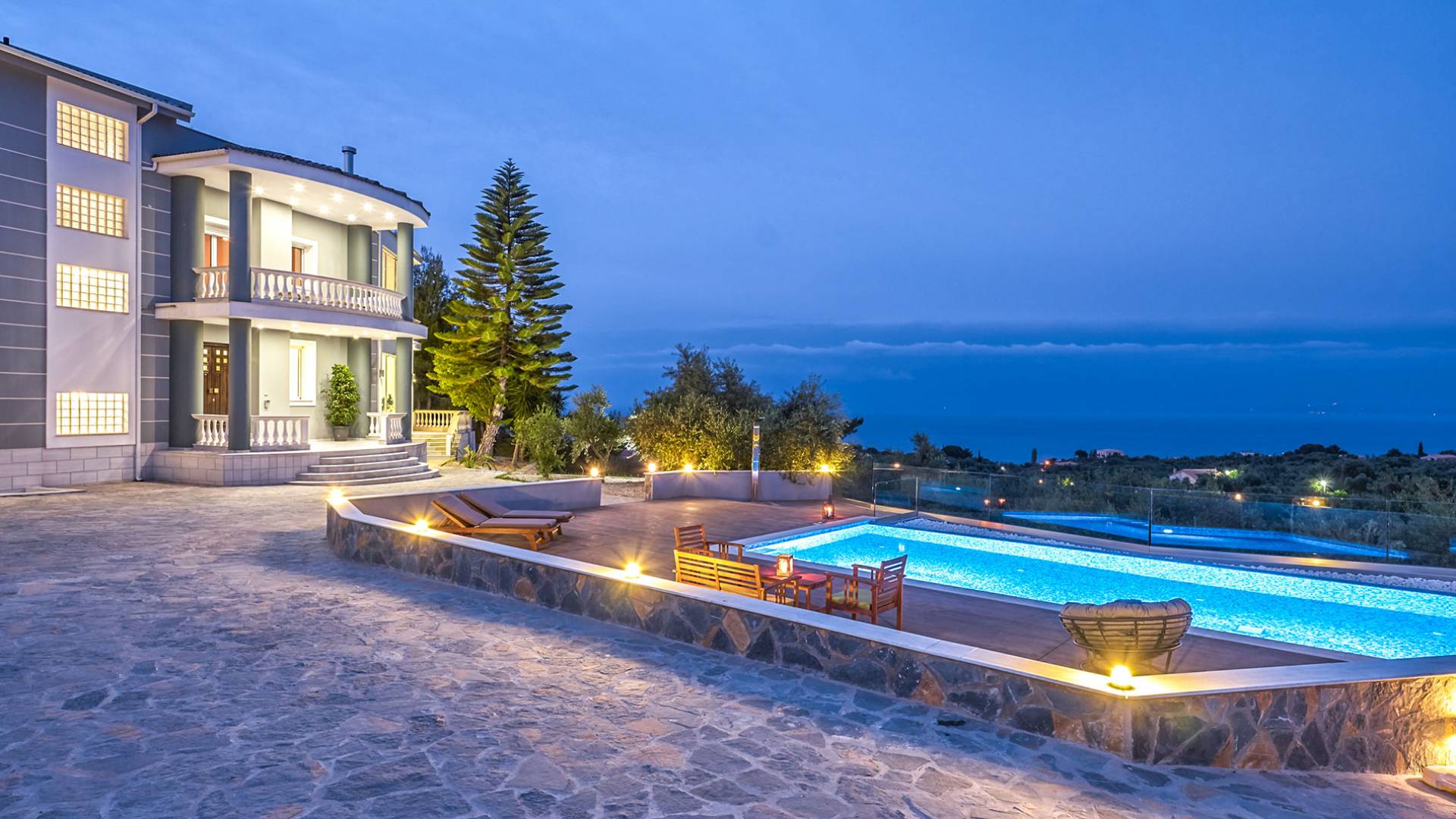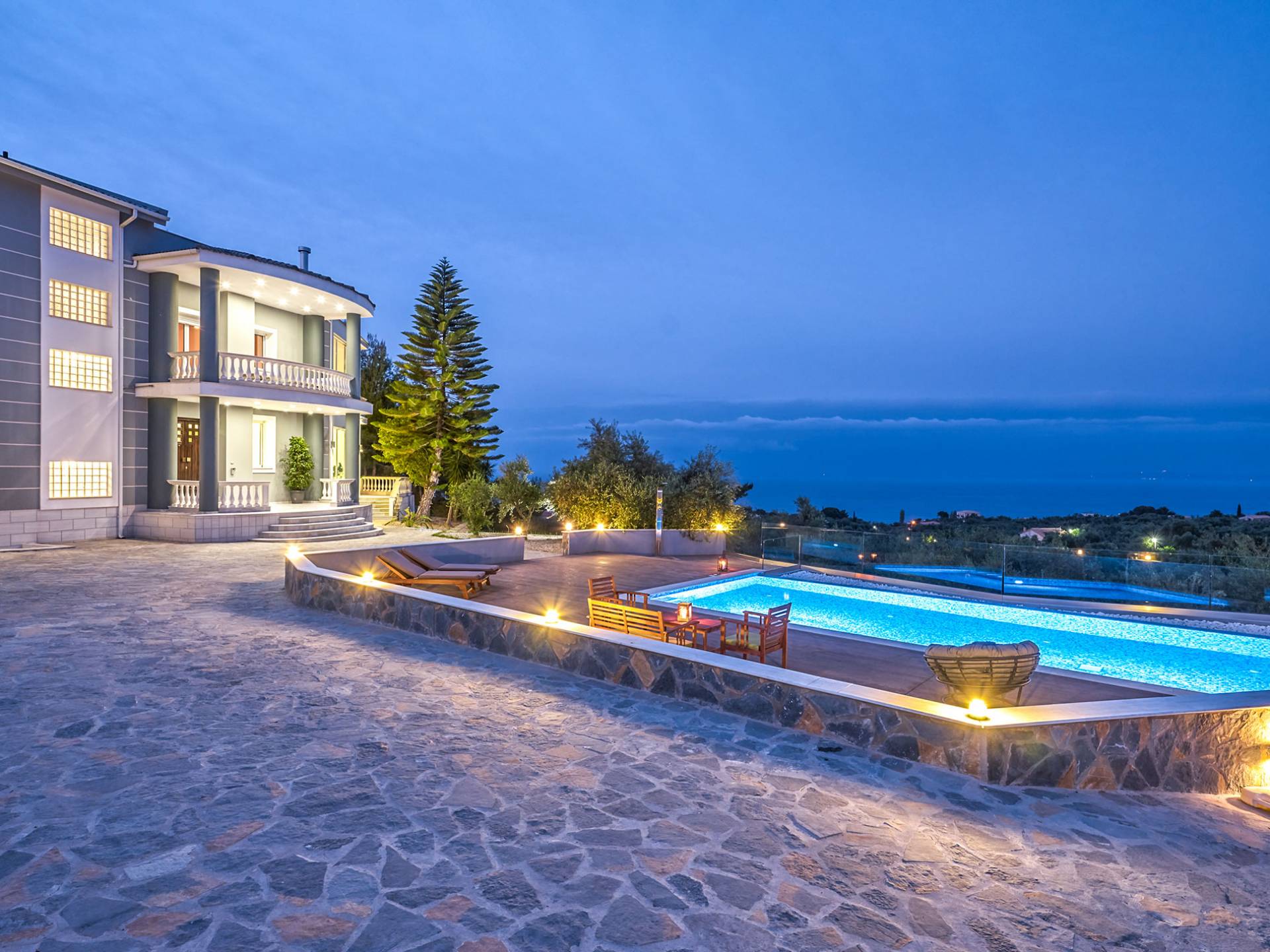 Mont Bleu Villa Zakynthos - это величественная резиденция, которая выводит понятие роскоши на новый впечатляющий уровень. Это вполне может быть одна из самых просторных и грандиозных вилл для отдыха на всех Ионических островах. Вилла Mont Bleu Zakynthos, состоящая из четырех великолепных просторных уровней (подвал, цокольный этаж и два этажа над ним), предлагает большой бассейн и потрясающий вид на окрестности, будь то море, горы или тщательно ухоженные и ухоженный сад.