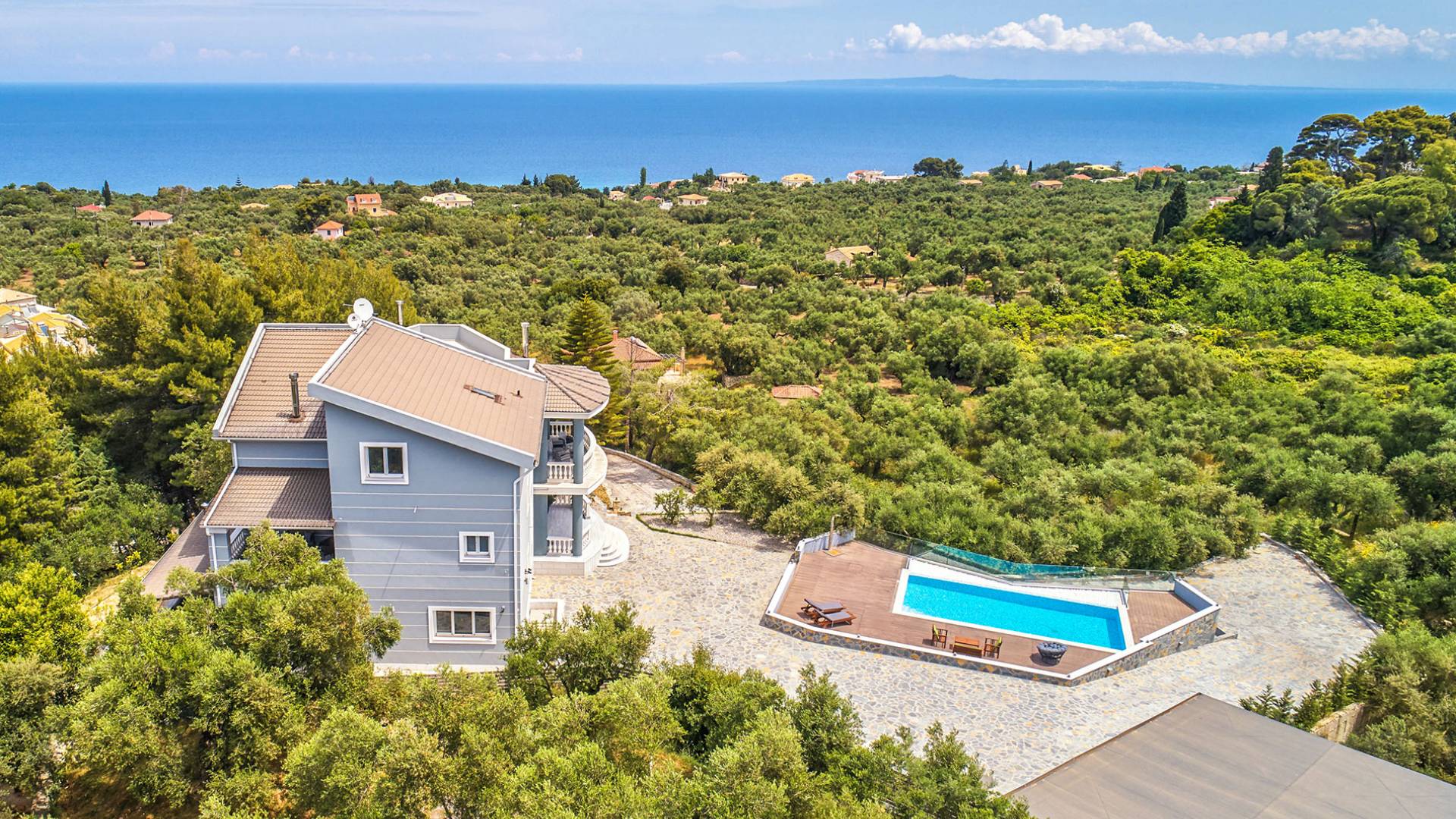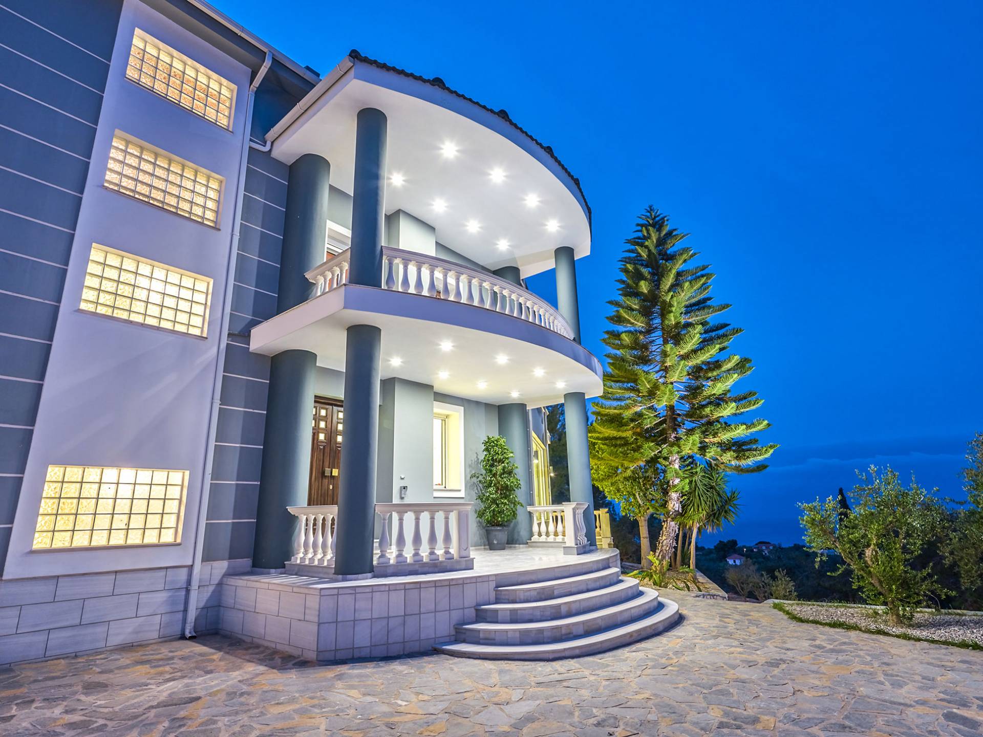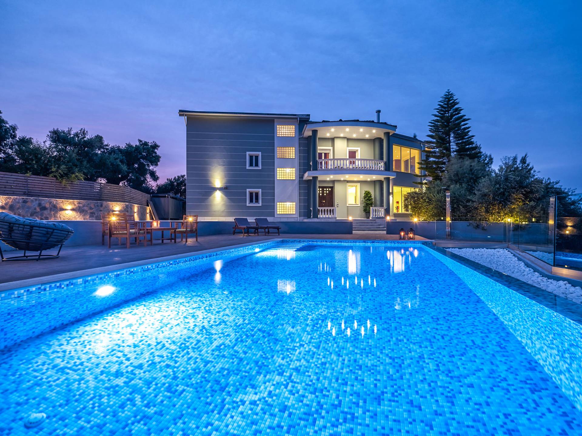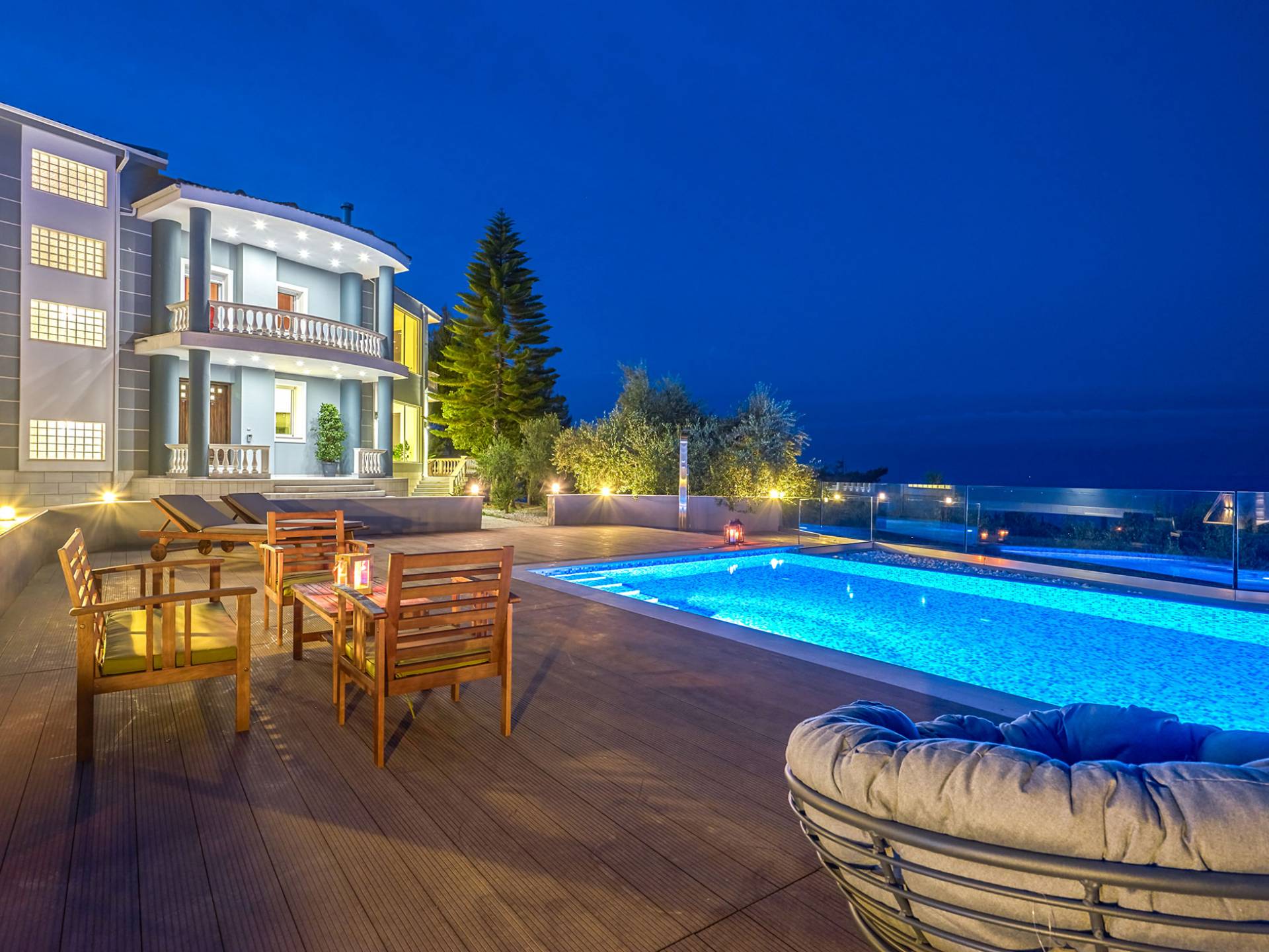 Mont Bleu Villa Zakynthos - это величественная резиденция, которая выводит понятие роскоши на новый впечатляющий уровень. Это вполне может быть одна из самых просторных и грандиозных вилл для отдыха на всех Ионических островах. Вилла Mont Bleu Zakynthos, состоящая из четырех великолепных просторных уровней (подвал, цокольный этаж и два этажа над ним), предлагает большой бассейн и потрясающий вид на окрестности, будь то море, горы или тщательно ухоженные и ухоженный сад.
