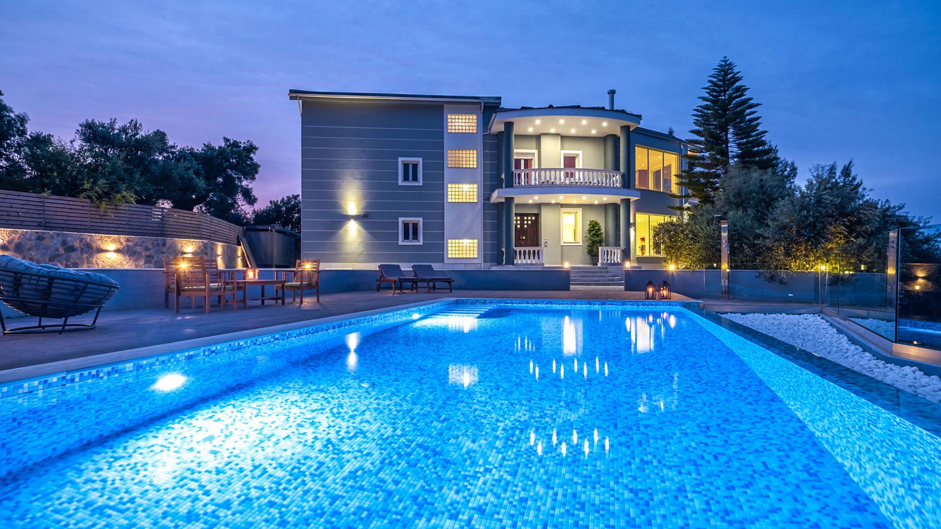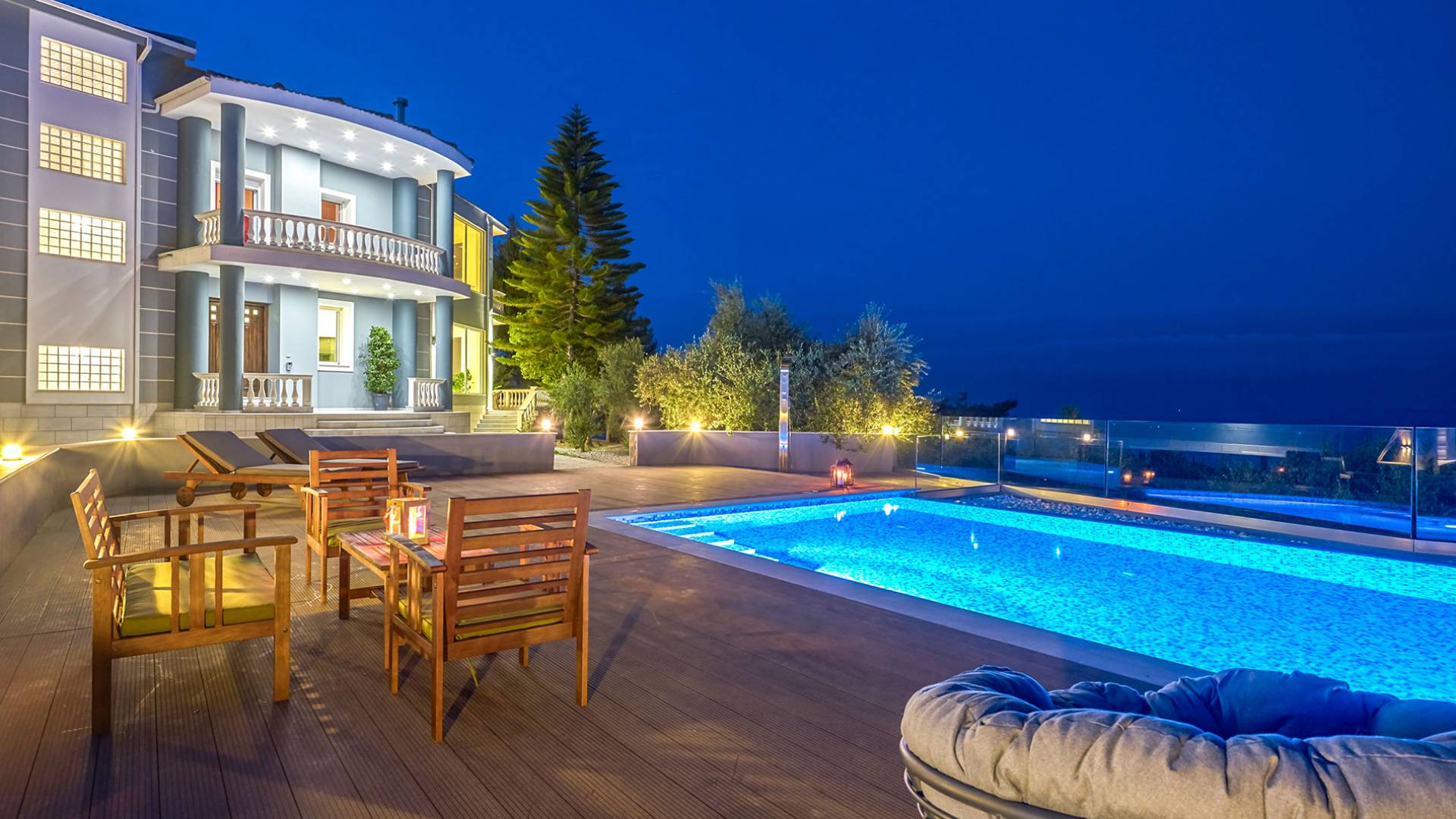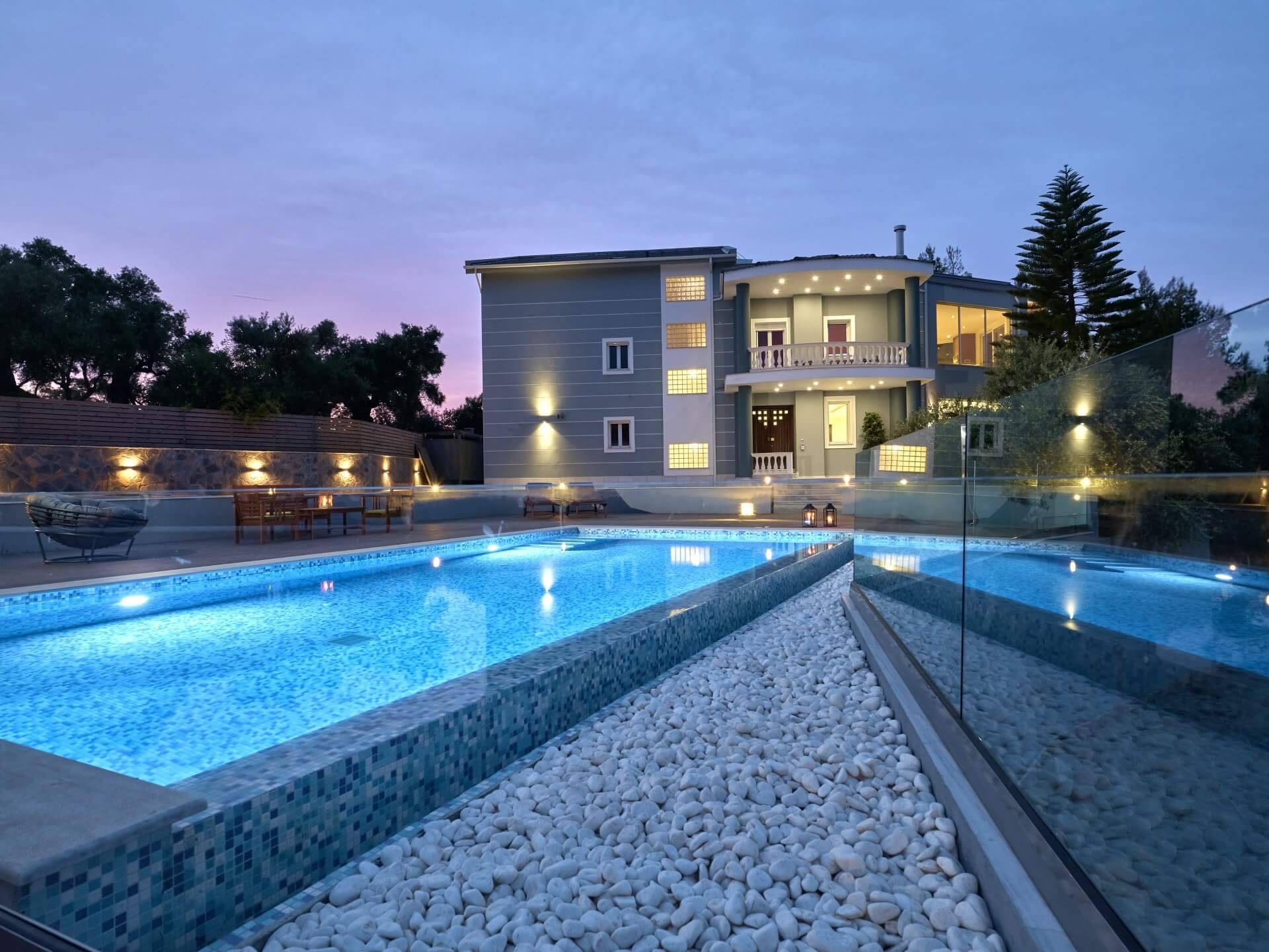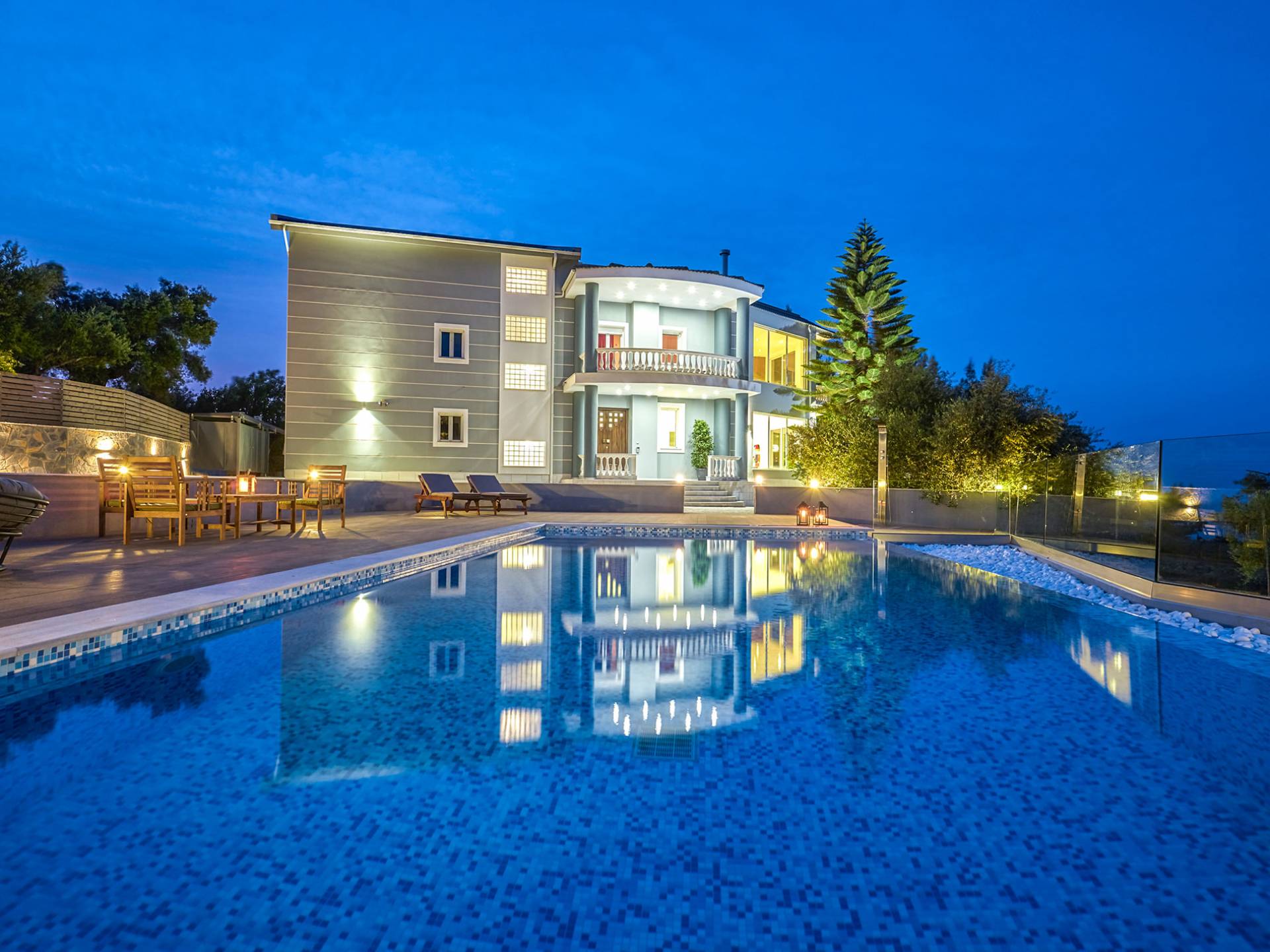 Mont Bleu Villa Zakynthos - это величественная резиденция, которая выводит понятие роскоши на новый впечатляющий уровень. Это вполне может быть одна из самых просторных и грандиозных вилл для отдыха на всех Ионических островах. Вилла Mont Bleu Zakynthos, состоящая из четырех великолепных просторных уровней (подвал, цокольный этаж и два этажа над ним), предлагает большой бассейн и потрясающий вид на окрестности, будь то море, горы или тщательно ухоженные и ухоженный сад.