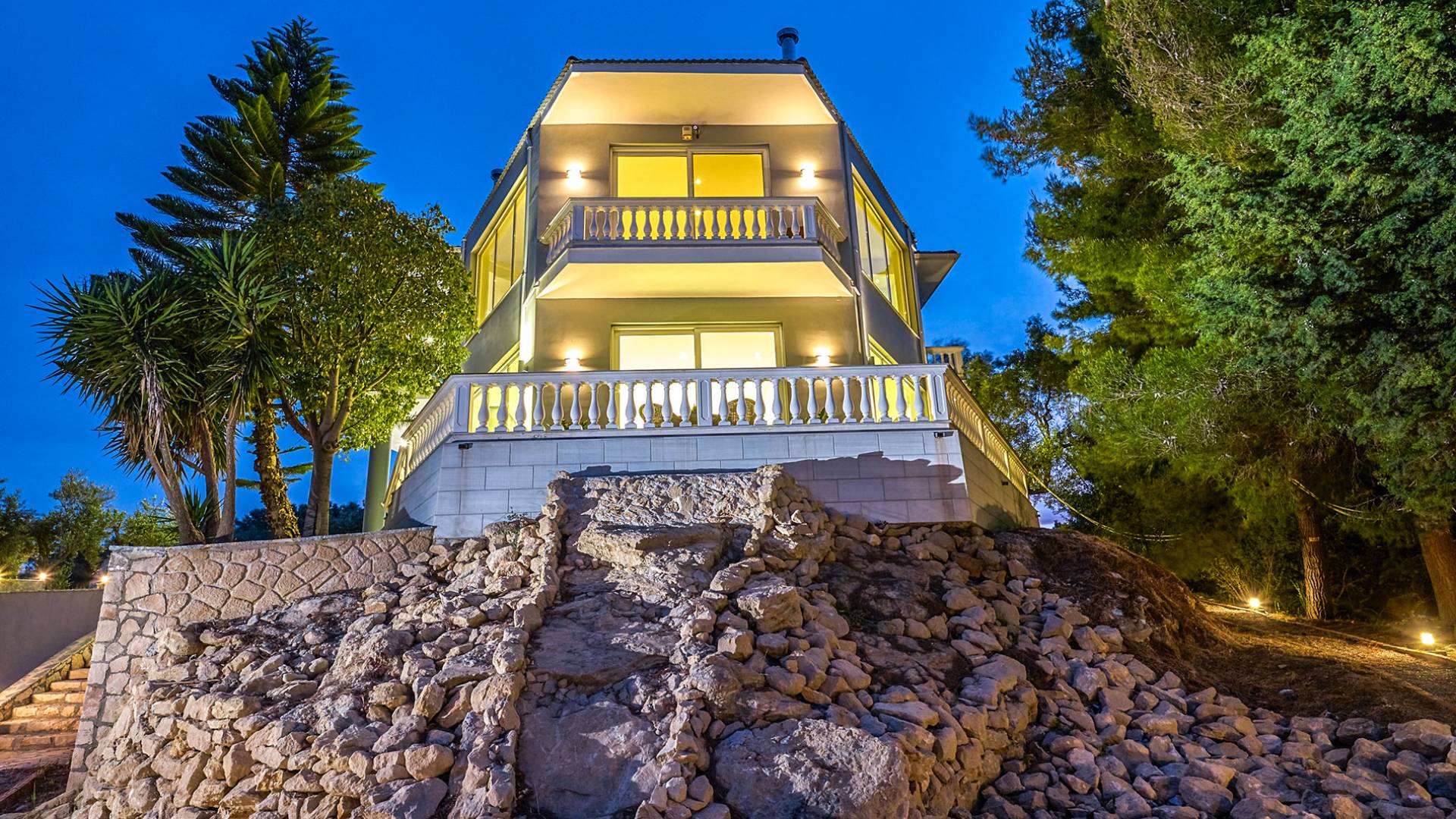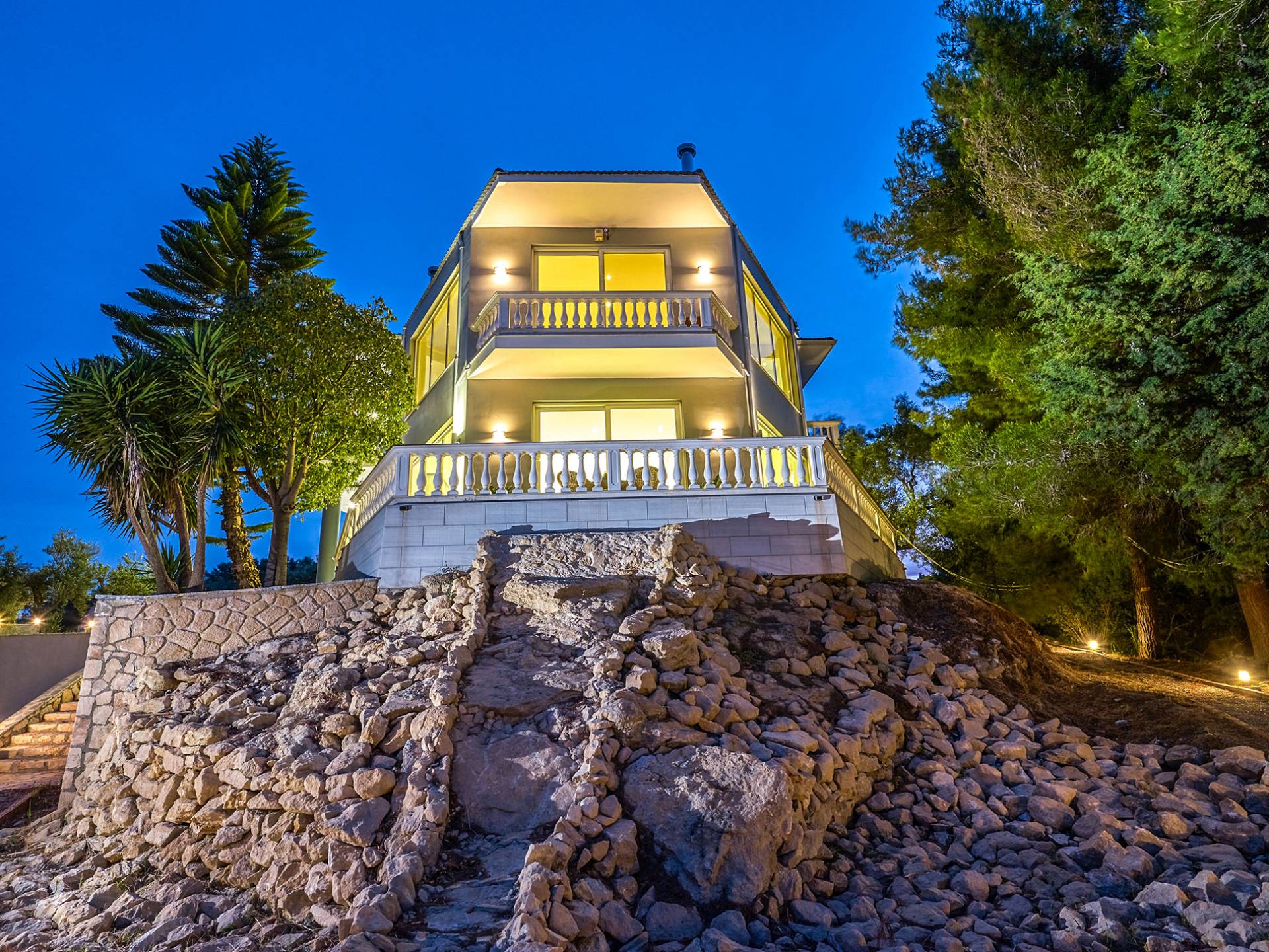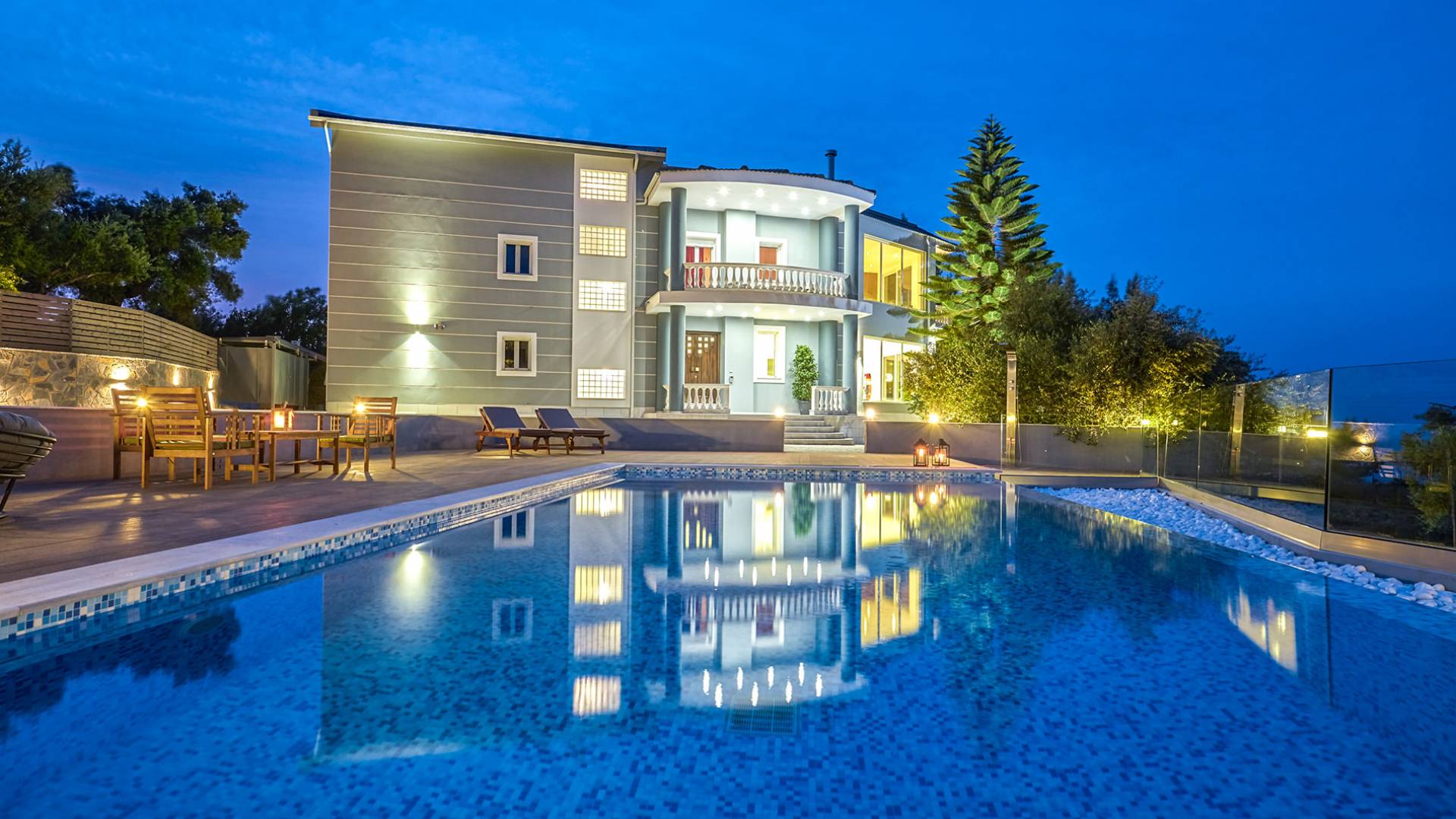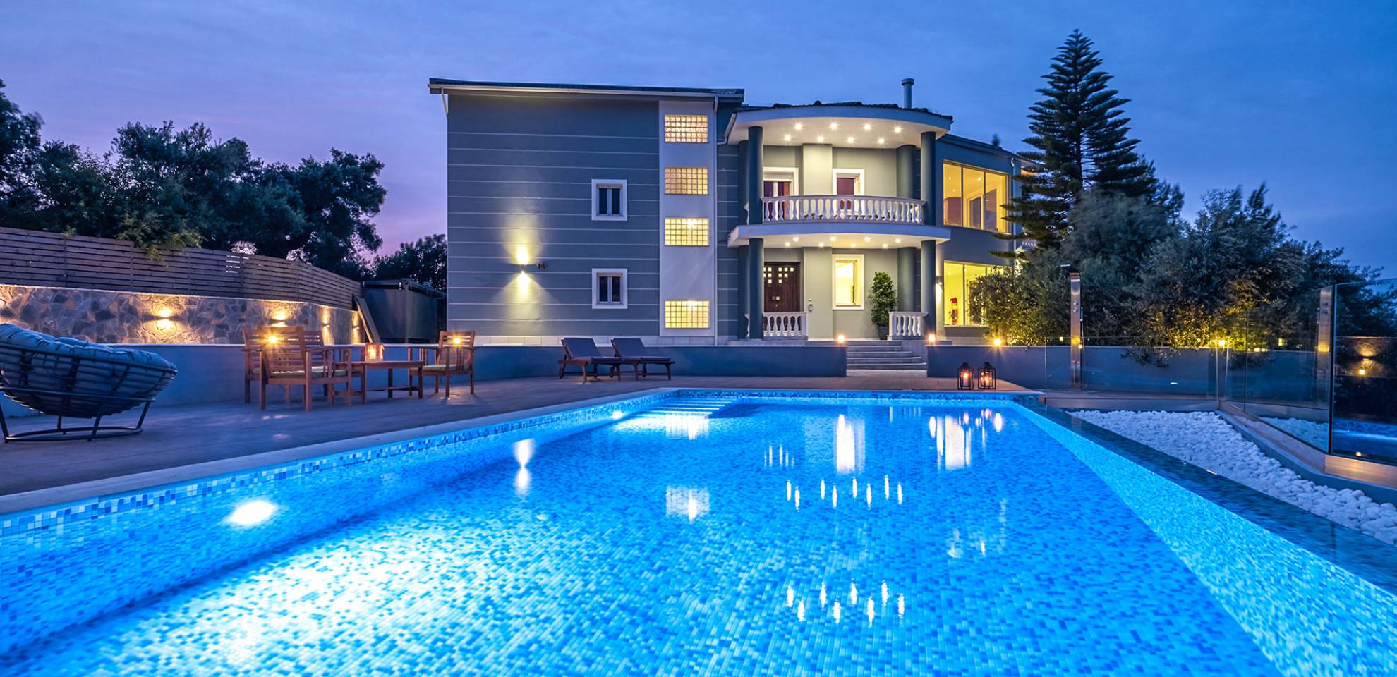 Mont Bleu Villa Zakynthos - это величественная резиденция, которая выводит понятие роскоши на новый впечатляющий уровень. Это вполне может быть одна из самых просторных и грандиозных вилл для отдыха на всех Ионических островах. Вилла Mont Bleu Zakynthos, состоящая из четырех великолепных просторных уровней (подвал, цокольный этаж и два этажа над ним), предлагает большой бассейн и потрясающий вид на окрестности, будь то море, горы или тщательно ухоженные и ухоженный сад.