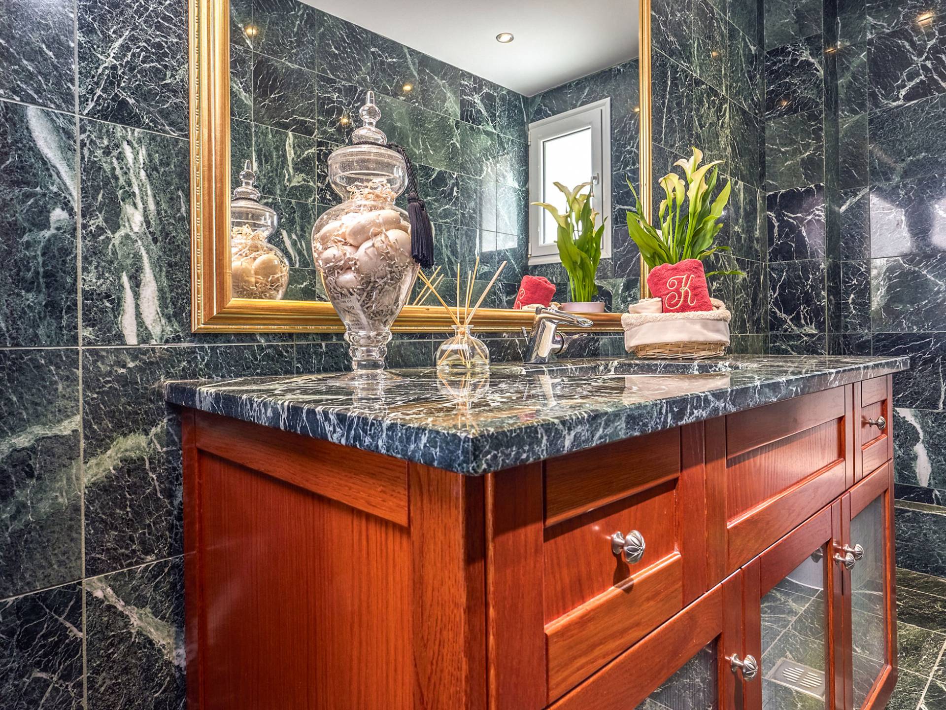 Несколько ступенек ведут в подвал, где посетитель найдет игровую комнату, в которой есть аэрохоккей, бильярд, настольный футбол, дартс и частный домашний кинотеатр с экраном 100 дюймов и 6 местами для кинотеатра. Там же есть тренажеры для тех, кто хочет отдохнуть, но не хочет терять физическую форму; есть эллиптический тренажер, беговая дорожка, велотренажер и тренажер для пресса. Также имеется ванная комната с сауной и душем для всего тела.