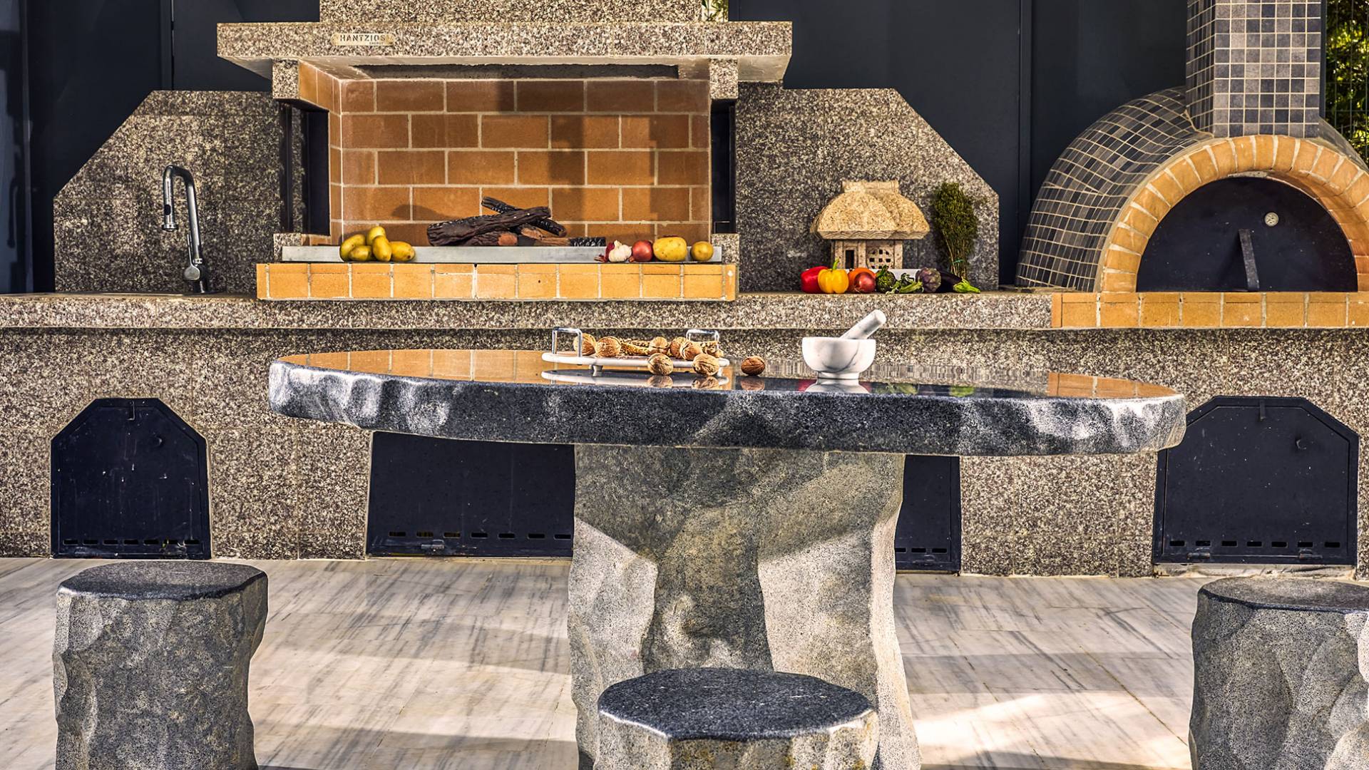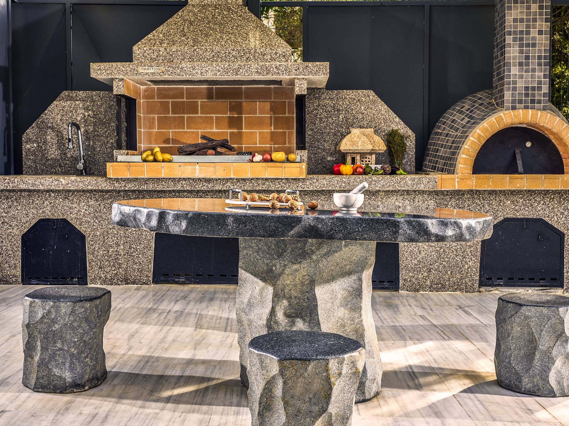 На открытой площадке гости найдут впечатляющий бассейн с шезлонгами, зонтиками, полотенцами и душем на открытом воздухе с возможностью горячей воды. Есть два уникальных по стилю барбекю, в одном используется уголь, а в другом - природный газ.