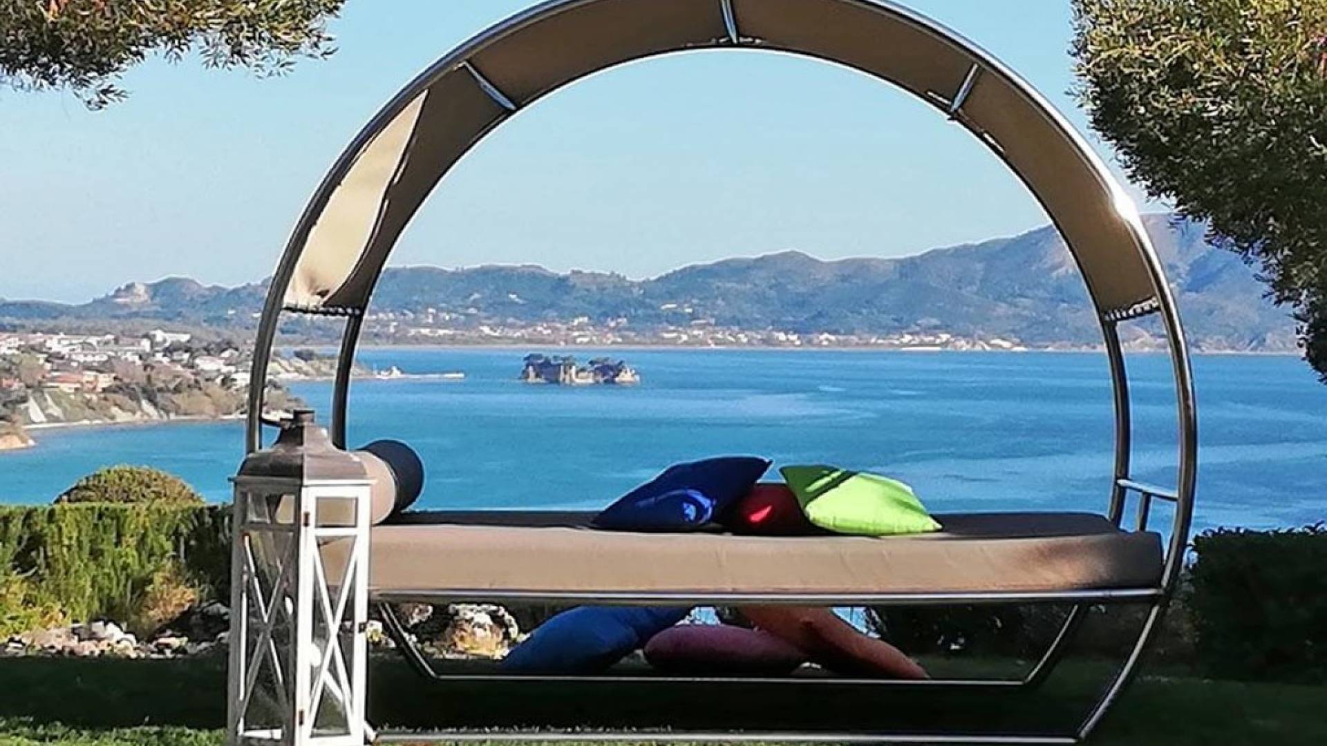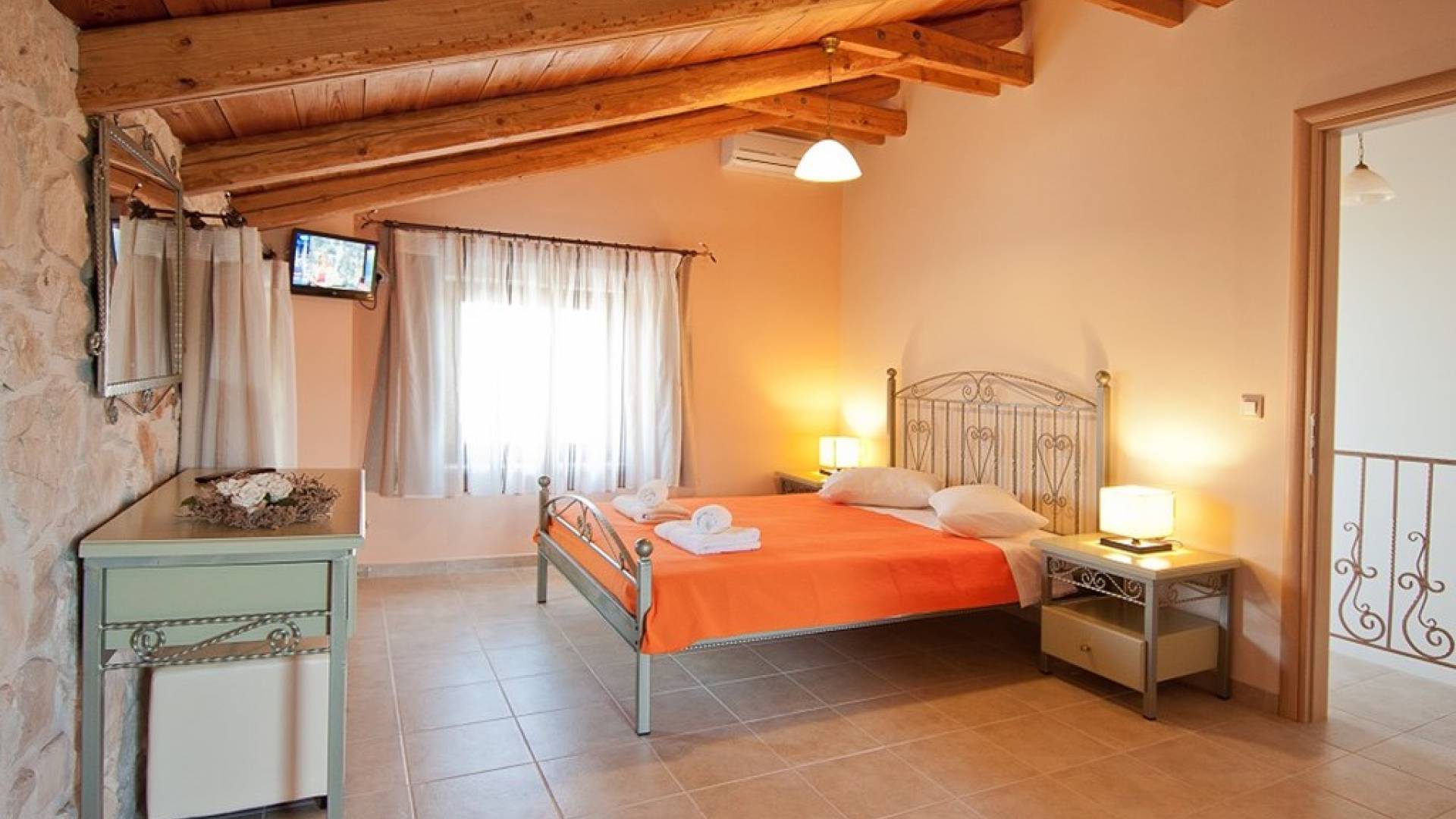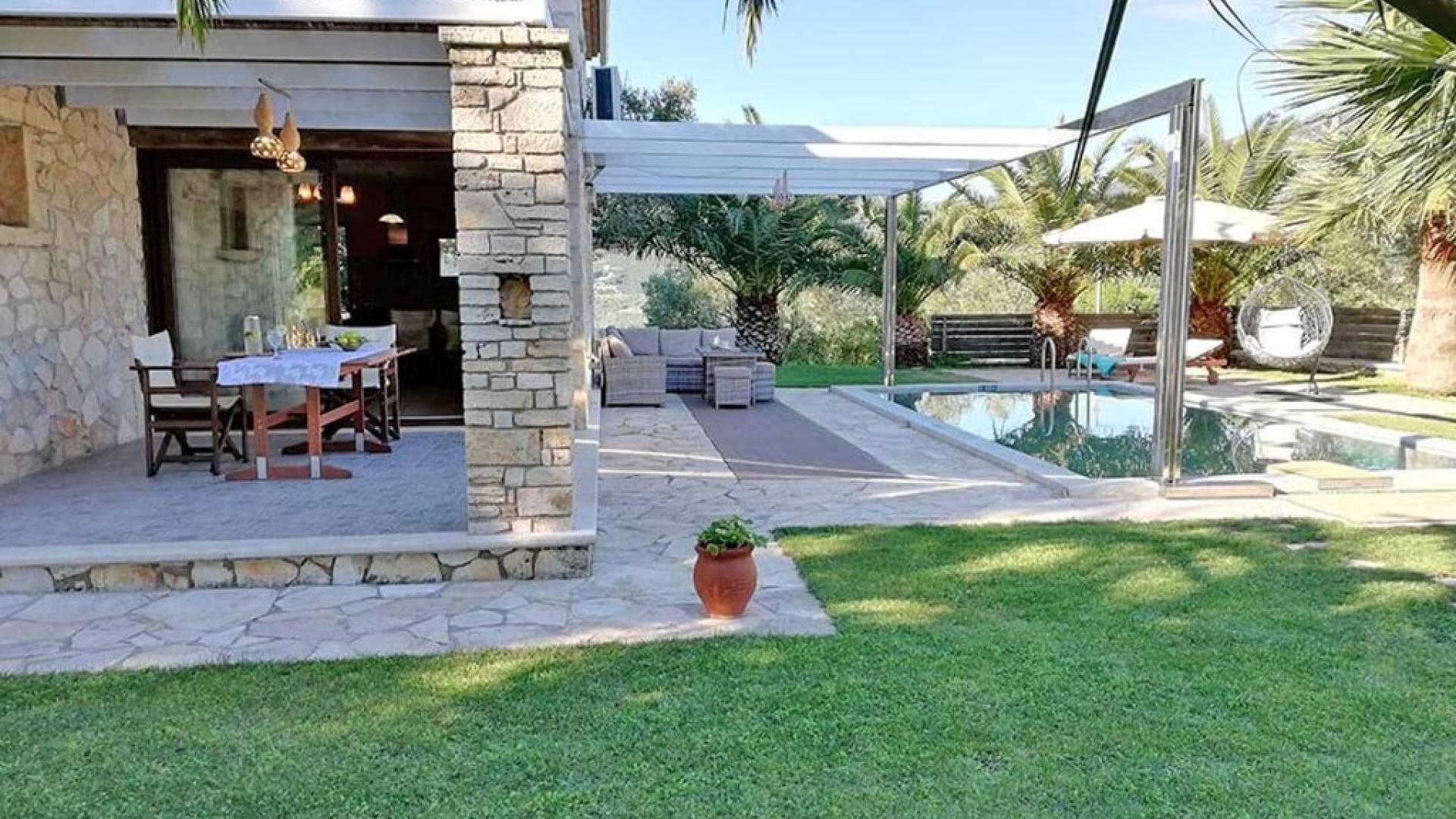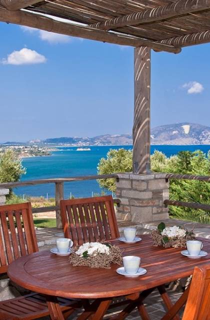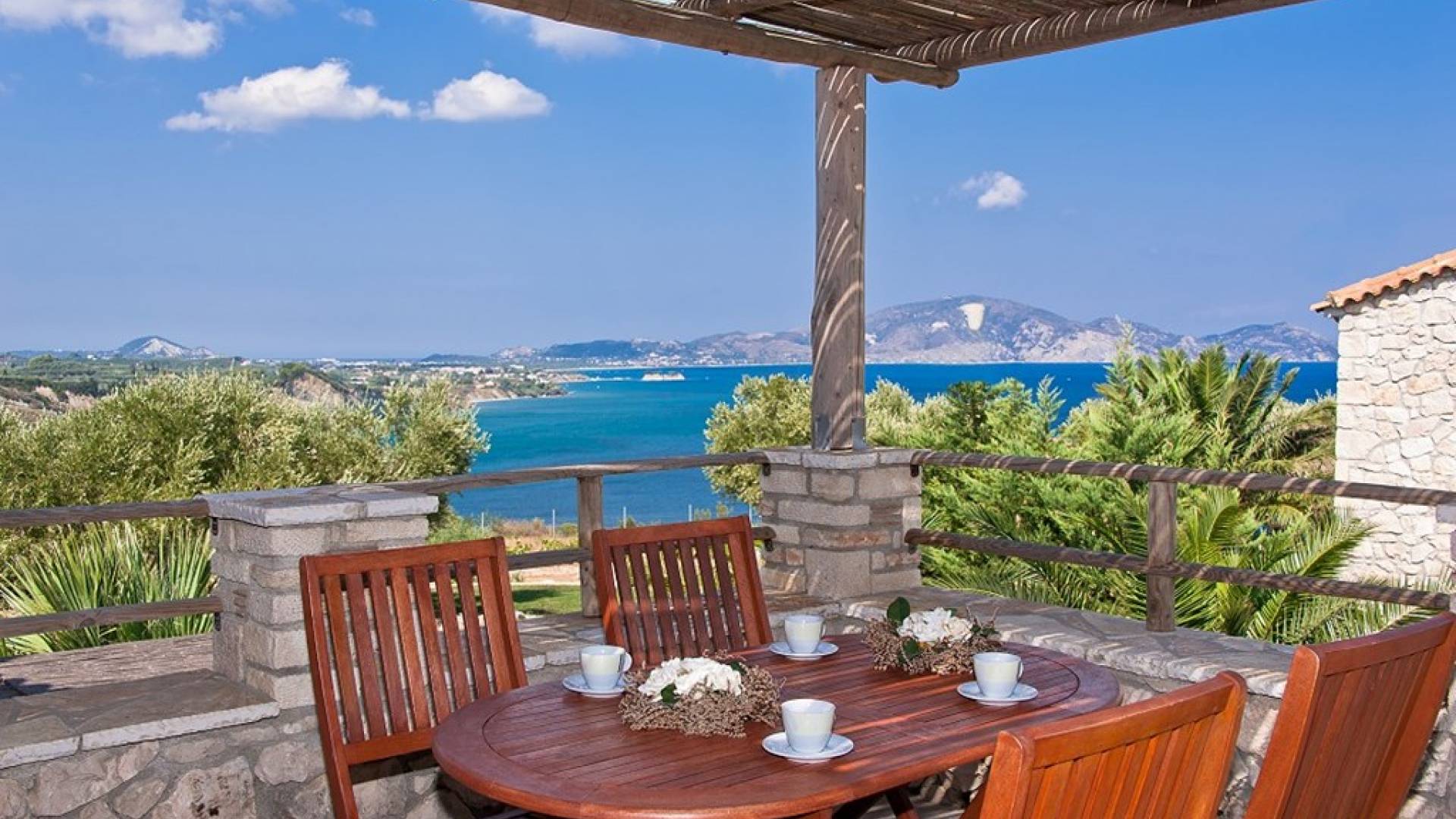 Oniro Villa имеет собственный бассейн, уникальный панорамный вид на весь залив Лаганас и находится в уединенном месте. Он имеет общую площадь 120 м² и может вместить до восьми человек. На первом этаже две спальни и две ванные комнаты. В одной спальне есть двуспальная кровать и ванная комната, а в другой - две односпальные кровати. На первом этаже расположены две спальни с двуспальными кроватями, гостиная с камином, кухня, две ванные комнаты и сейф. Снаружи есть сад и частный бассейн с креслами для отдыха и зонтиком.