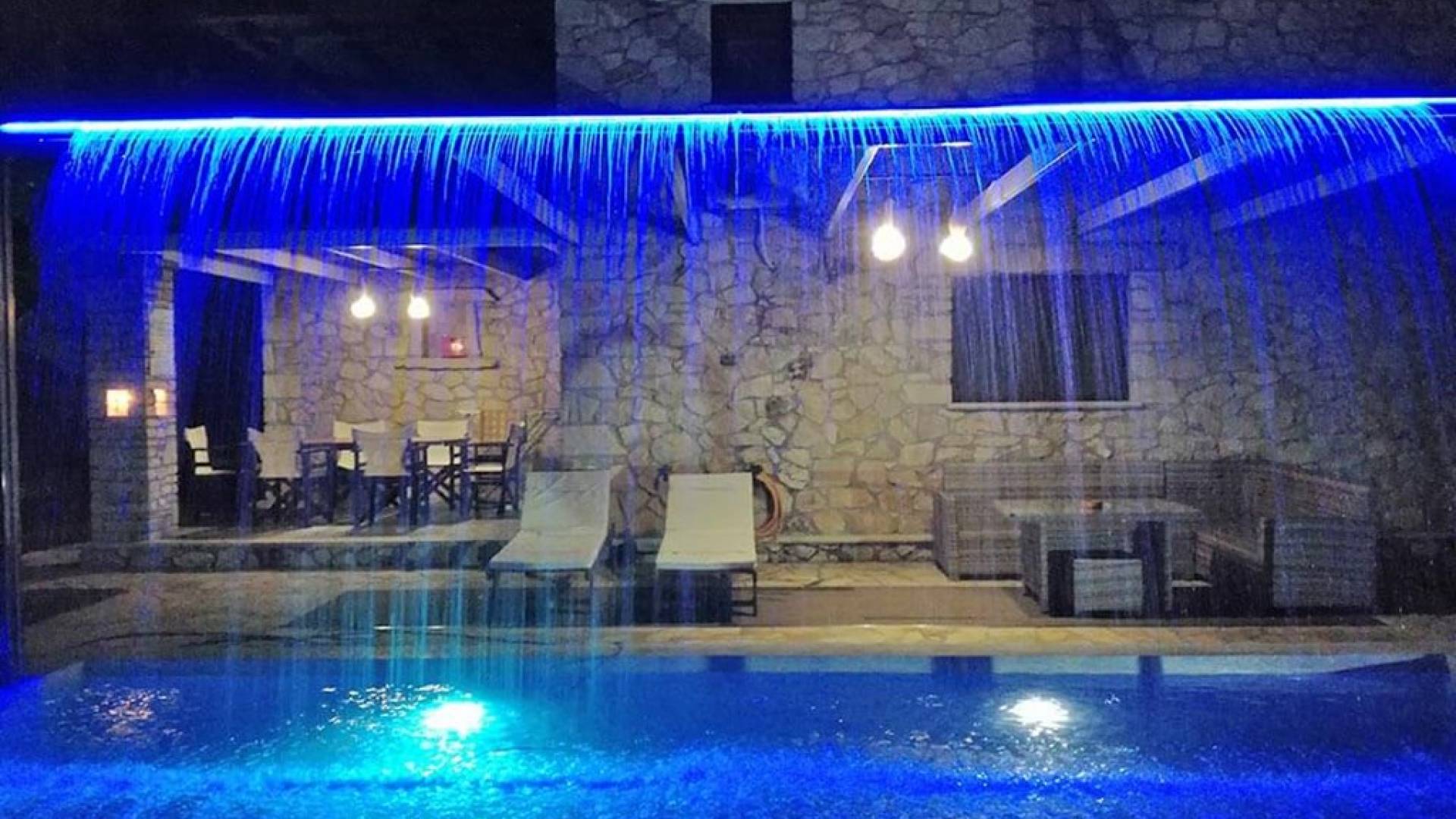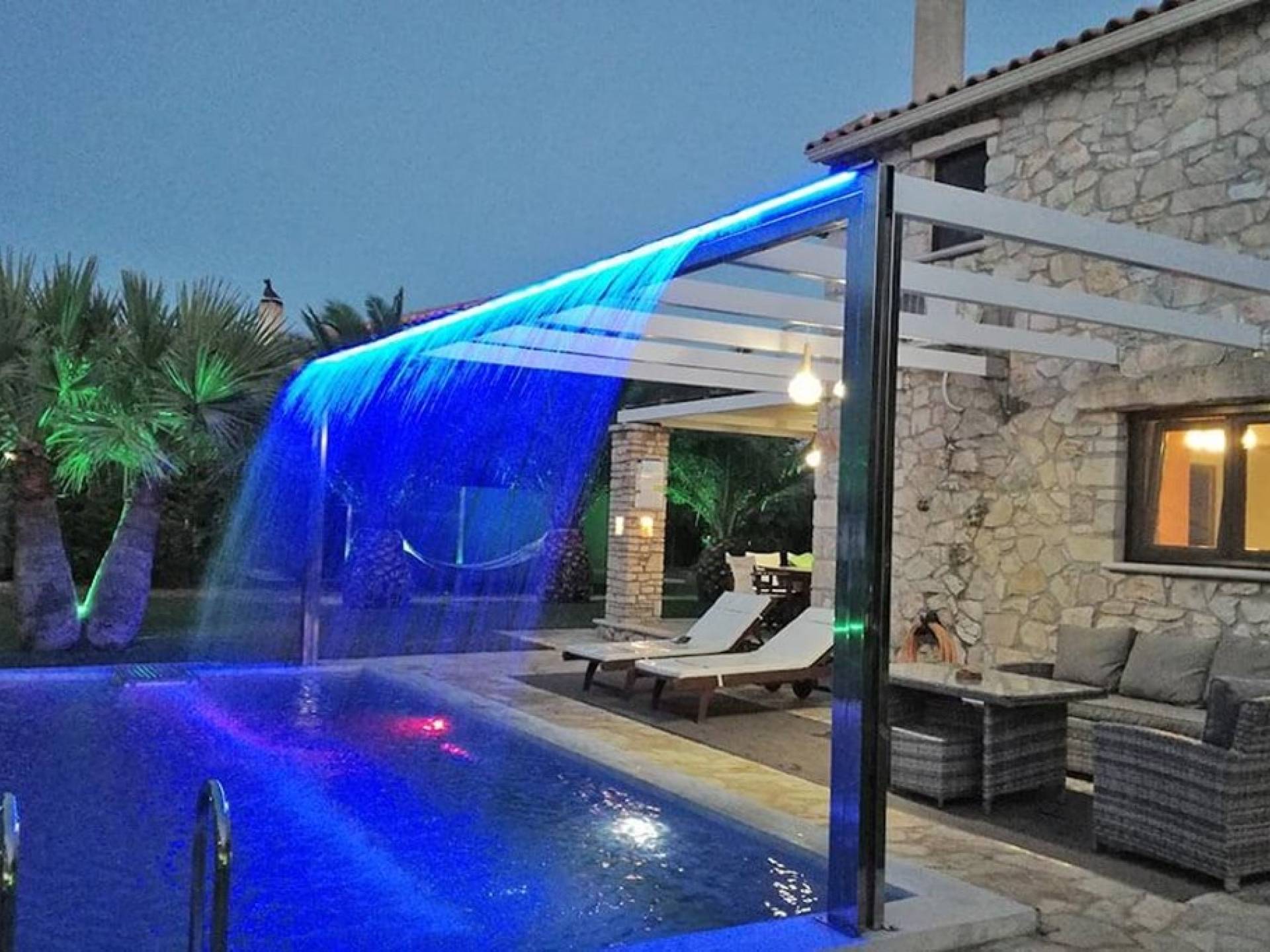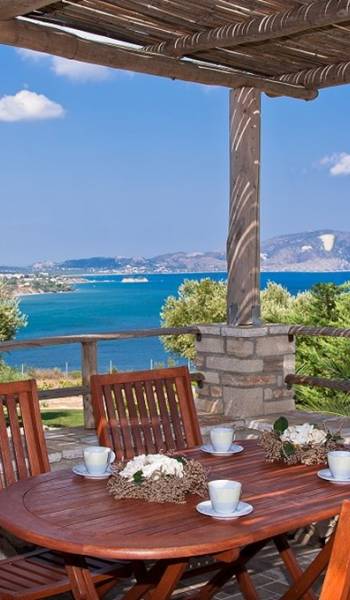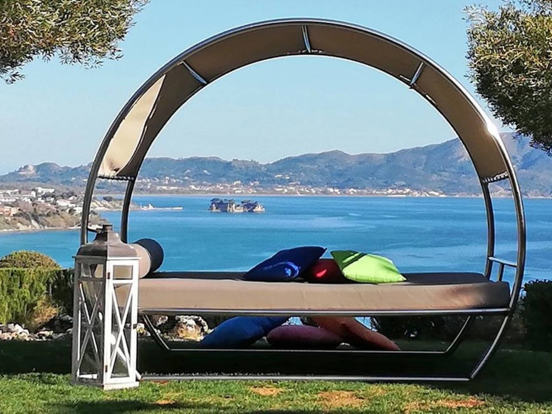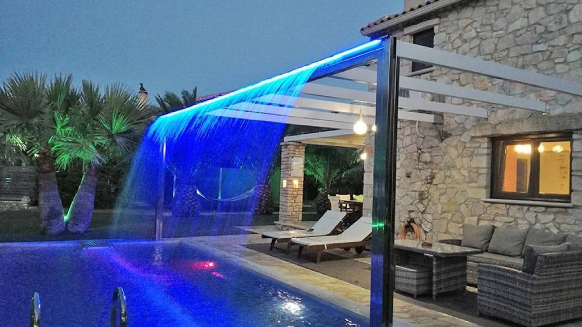 Oniro Villa имеет собственный бассейн, уникальный панорамный вид на весь залив Лаганас и находится в уединенном месте. Он имеет общую площадь 120 м² и может вместить до восьми человек. На первом этаже две спальни и две ванные комнаты. В одной спальне есть двуспальная кровать и ванная комната, а в другой - две односпальные кровати. На первом этаже расположены две спальни с двуспальными кроватями, гостиная с камином, кухня, две ванные комнаты и сейф. Снаружи есть сад и частный бассейн с креслами для отдыха и зонтиком.