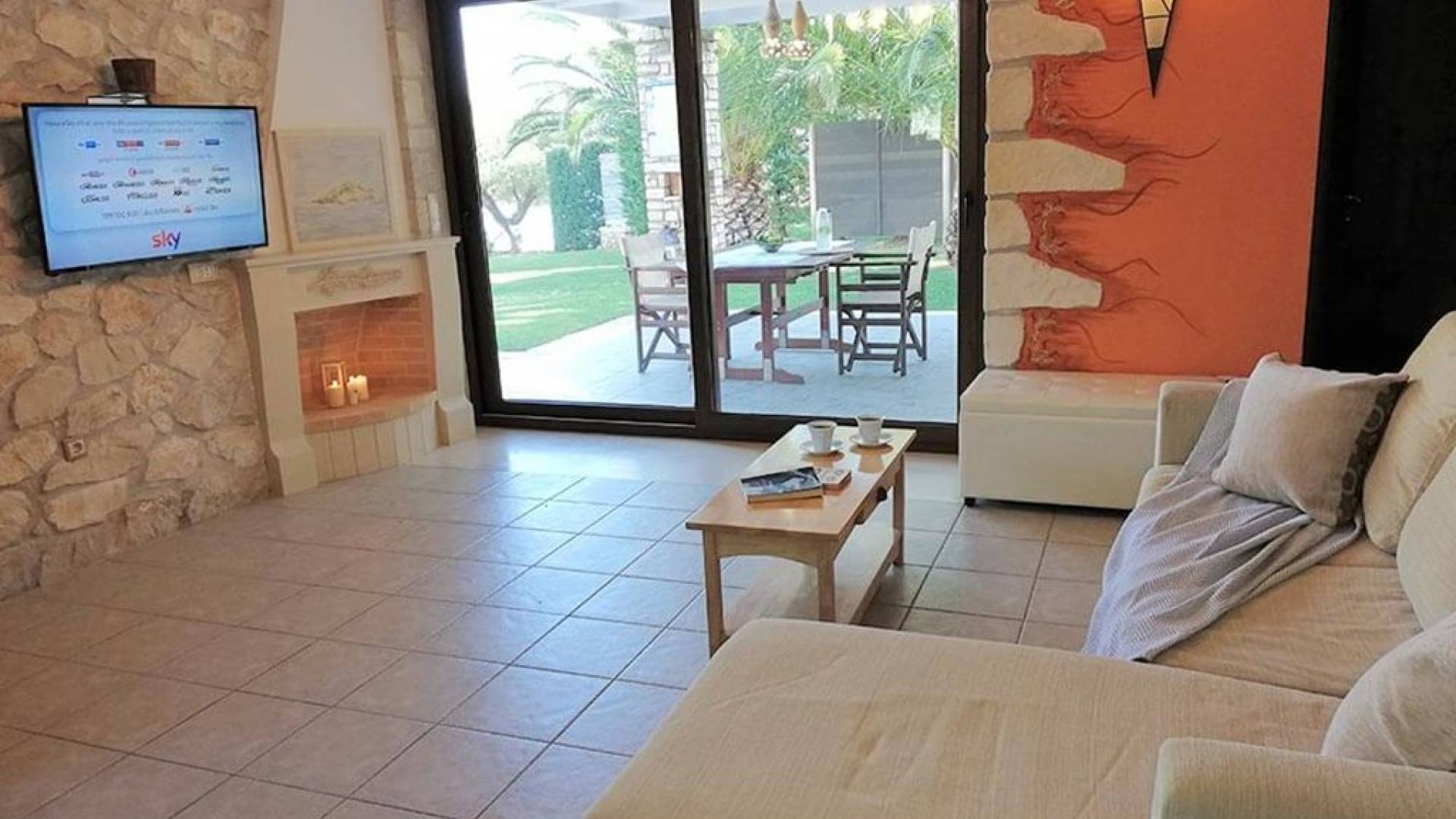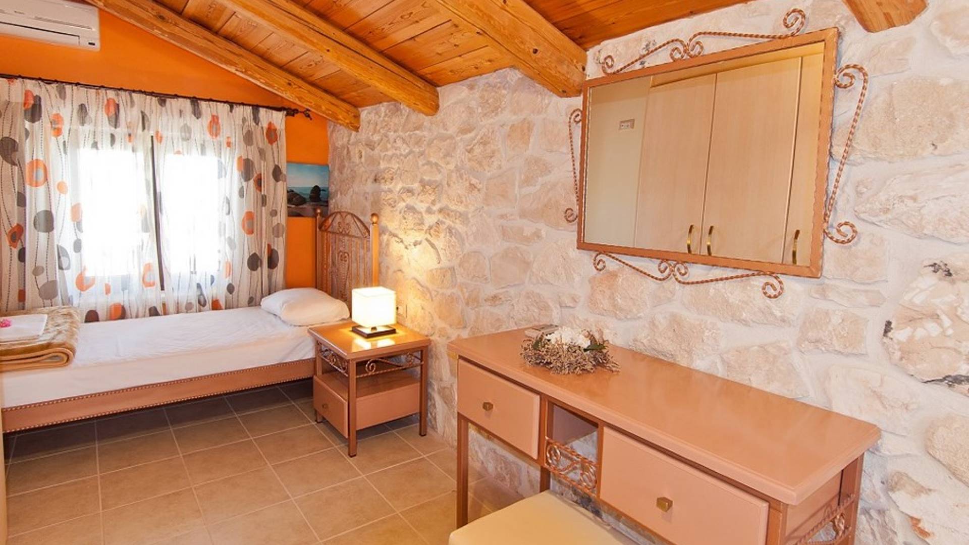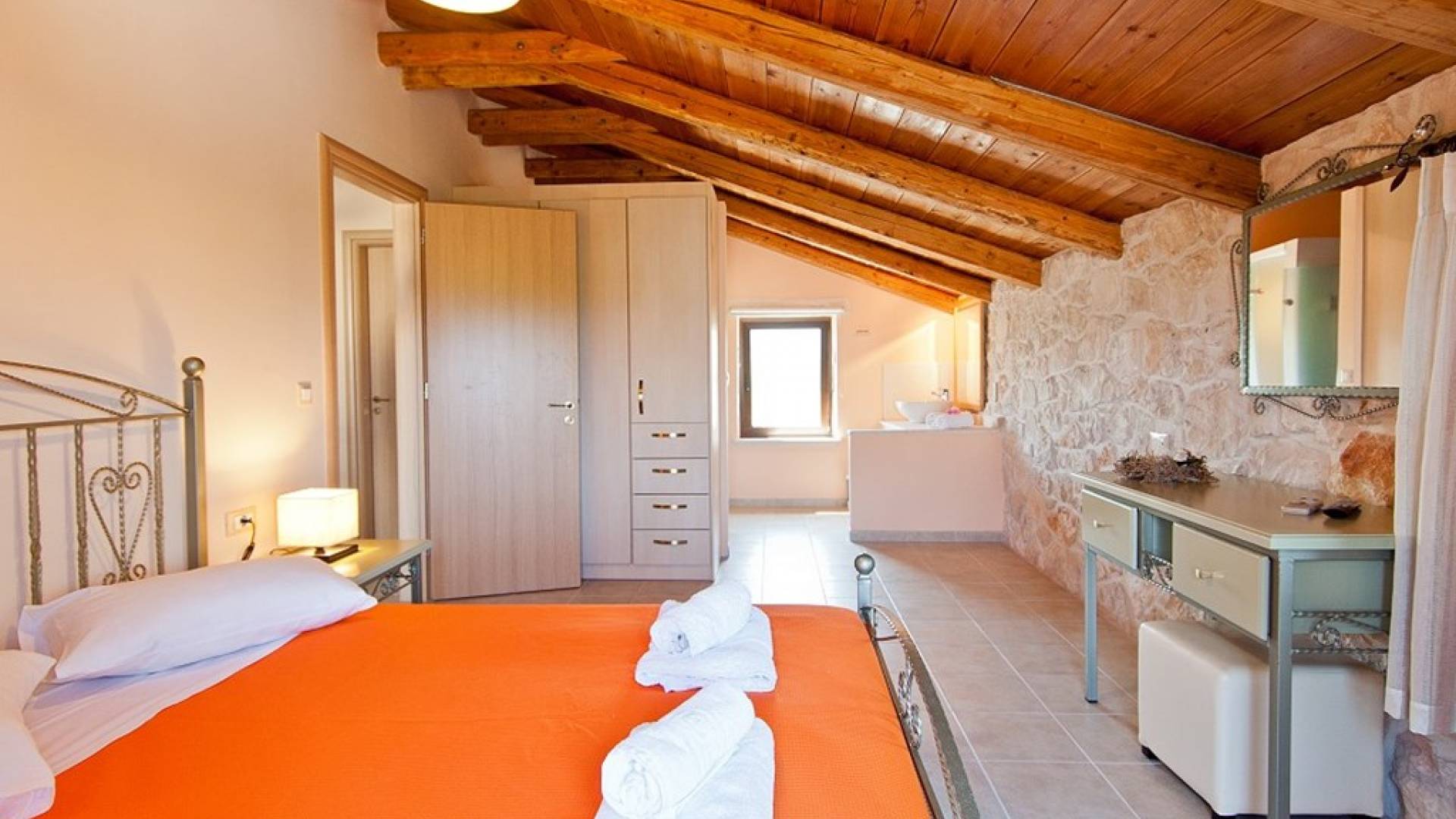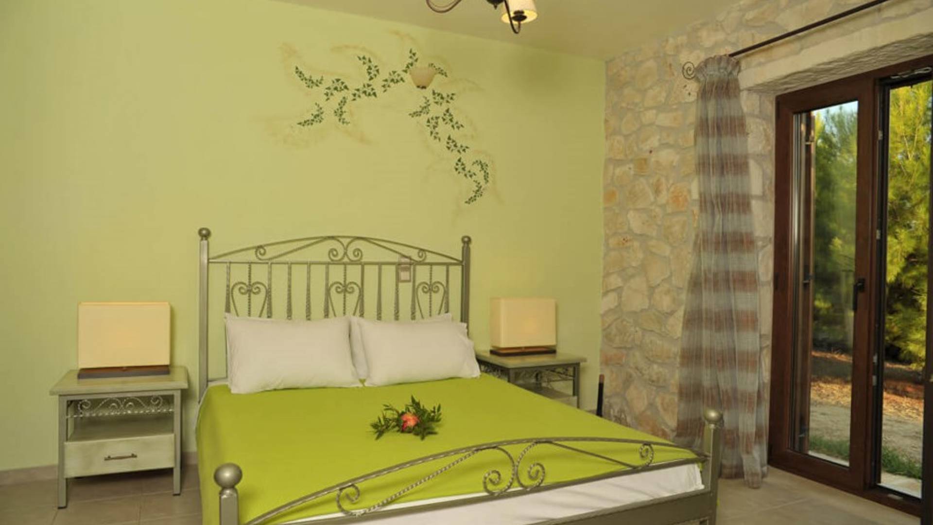 Oniro Villa имеет собственный бассейн, уникальный панорамный вид на весь залив Лаганас и находится в уединенном месте. Он имеет общую площадь 120 м² и может вместить до восьми человек. На первом этаже две спальни и две ванные комнаты. В одной спальне есть двуспальная кровать и ванная комната, а в другой - две односпальные кровати. На первом этаже расположены две спальни с двуспальными кроватями, гостиная с камином, кухня, две ванные комнаты и сейф. Снаружи есть сад и частный бассейн с креслами для отдыха и зонтиком.