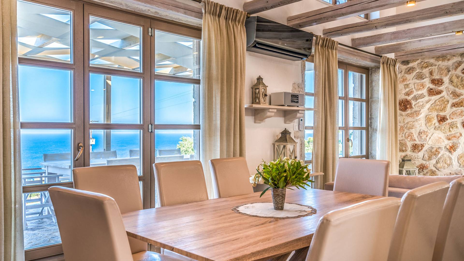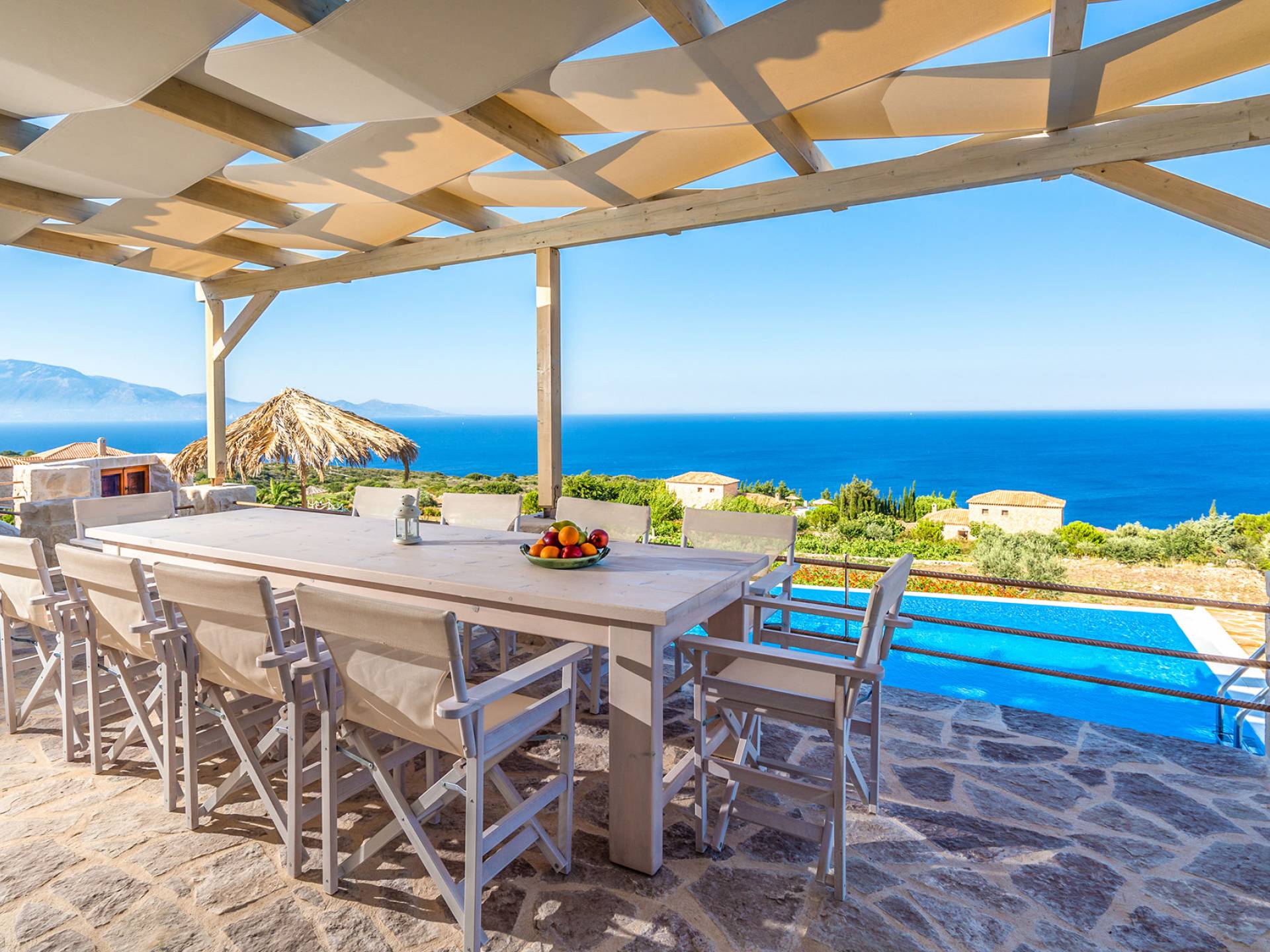 Кроме того, на нижнем уровне виллы находится крытый тренажерный зал с эллиптическим тренажером, беговой дорожкой для бега, гирями, утяжелителями и ковриками для йоги, уличным полноразмерным столом для пинг-понга. Питание: Harmonia Villa Zante предлагает трапезу как в помещении, так и на открытом воздухе. Гостиная-столовая с полностью застекленным видом на бассейн. Обеденный стол на открытом воздухе под крытой верандой с захватывающим видом на Кефалонию и прекрасные окрестности. Барбекю на свежем воздухе.