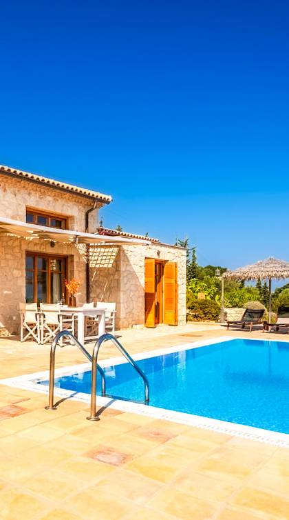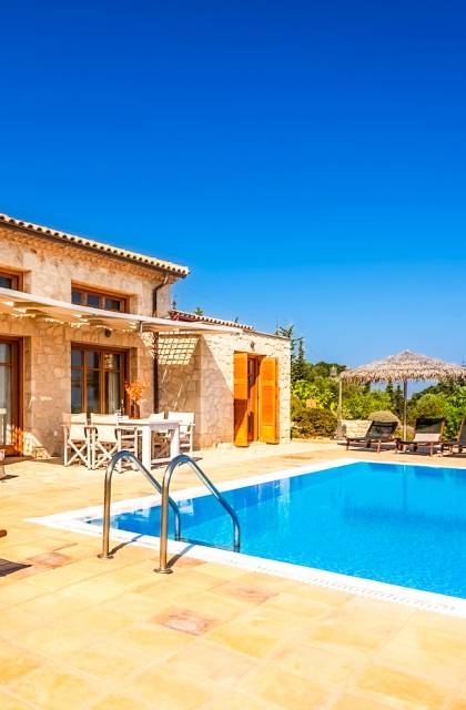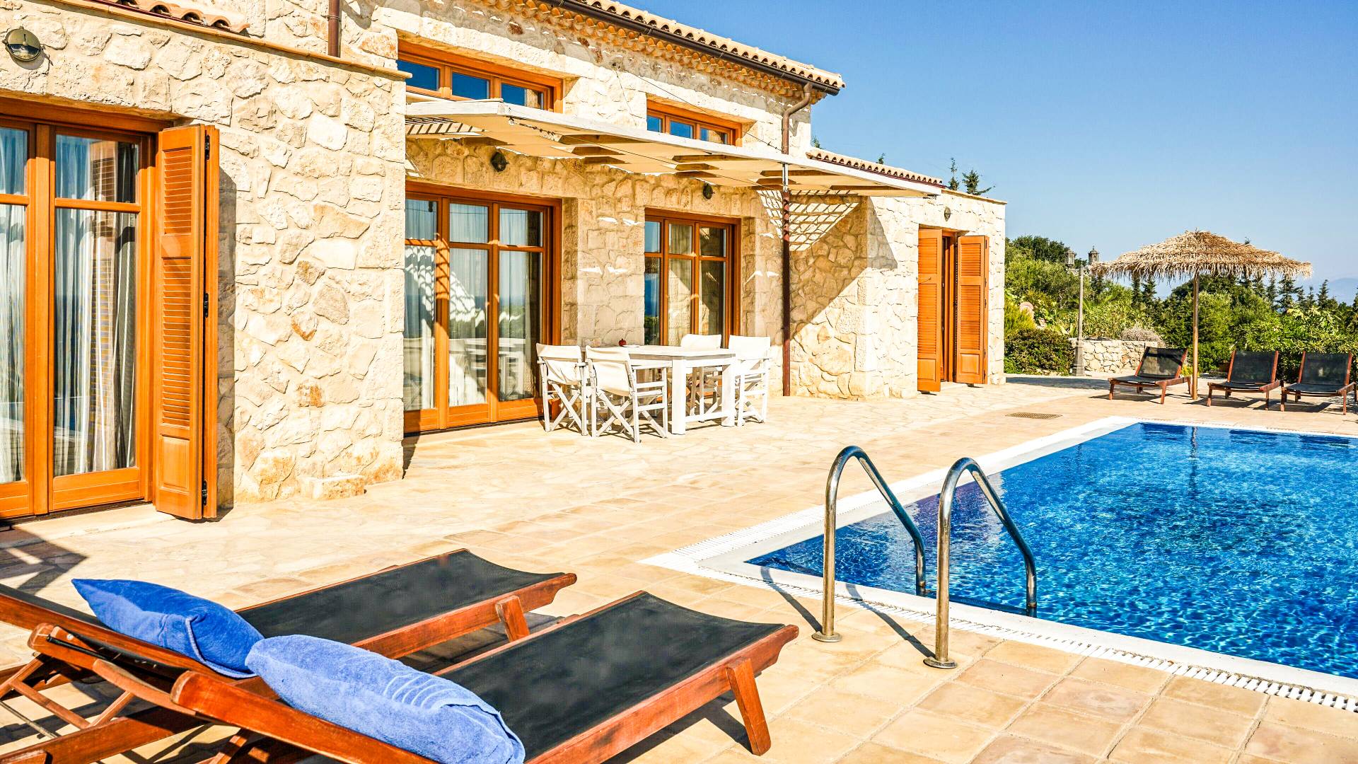 The villa is located in the north part of Zakynthos, just above the famous Blue Caves and a short drive from the charming seaside village and port of Agios Nikolaos Volimes.