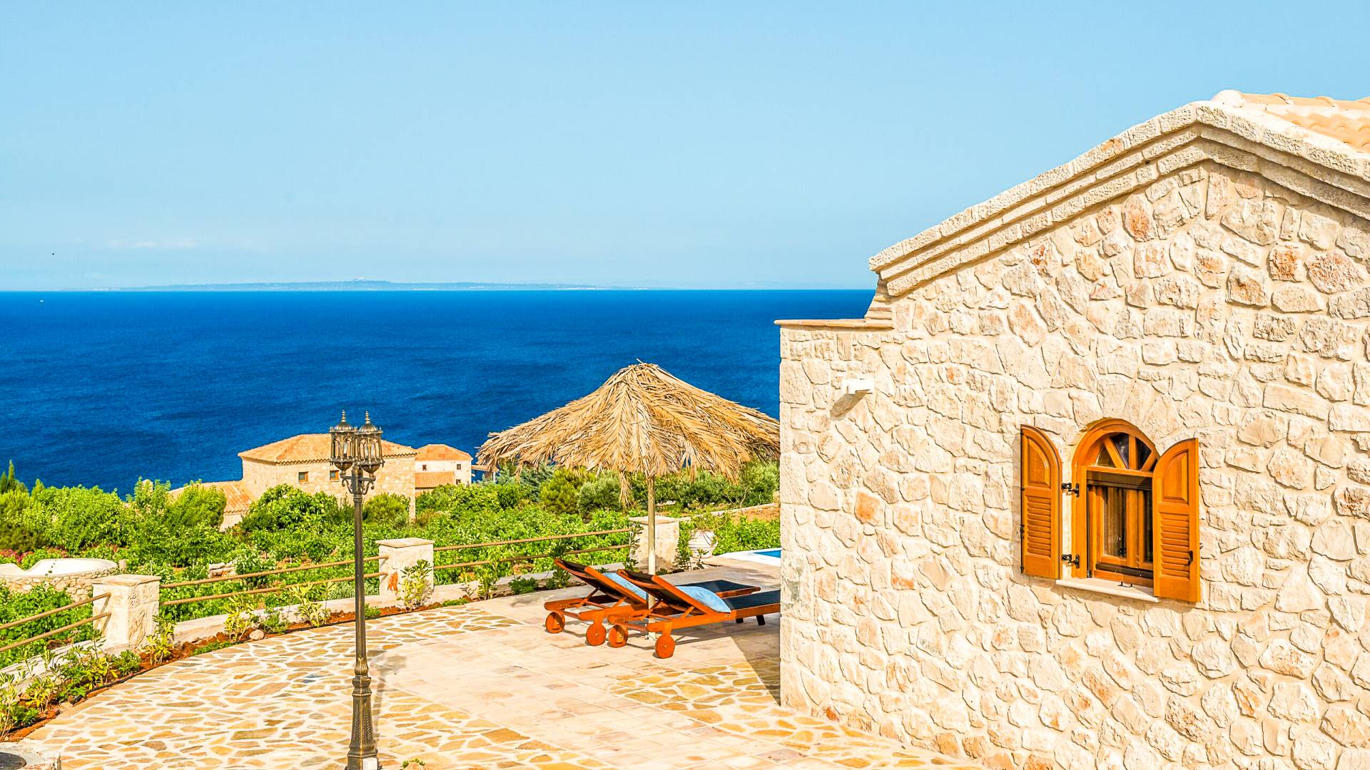 Descend the stone pathway to discover your own secluded waterfront escape. The villa’s private sea access leads to a natural rocky terrace, set right at the edge of crystal-clear waters. Swim straight into the Ionian, explore Blue Caces, unwind under the sun, or simply listen to the gentle waves in complete privacy.