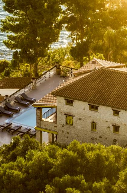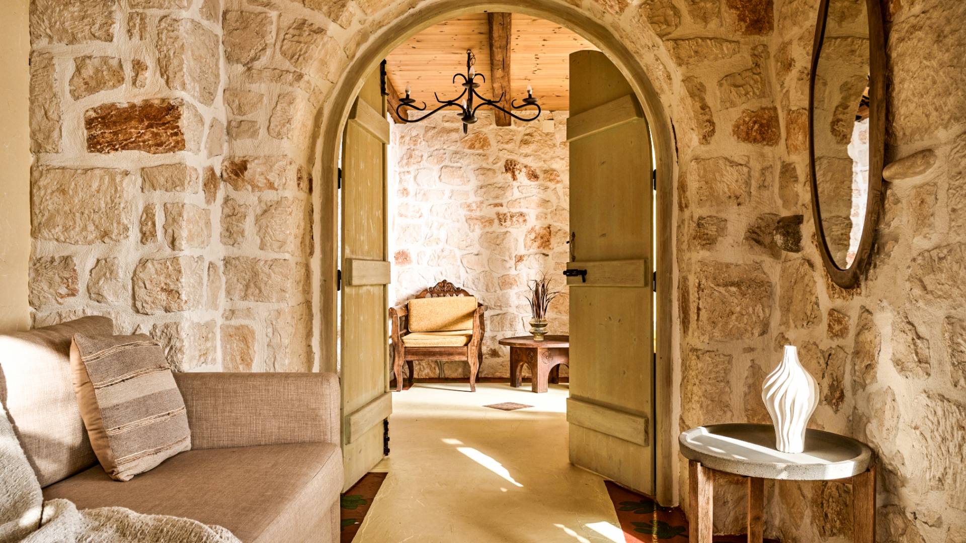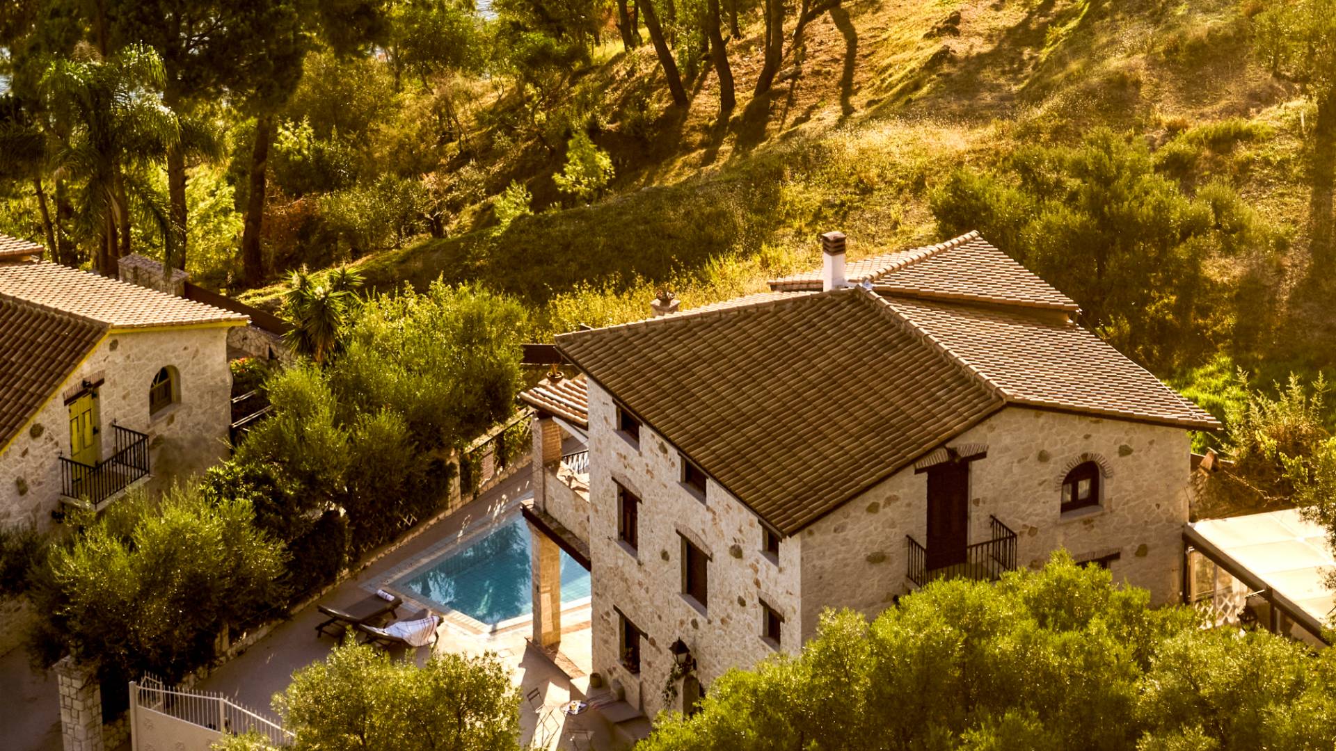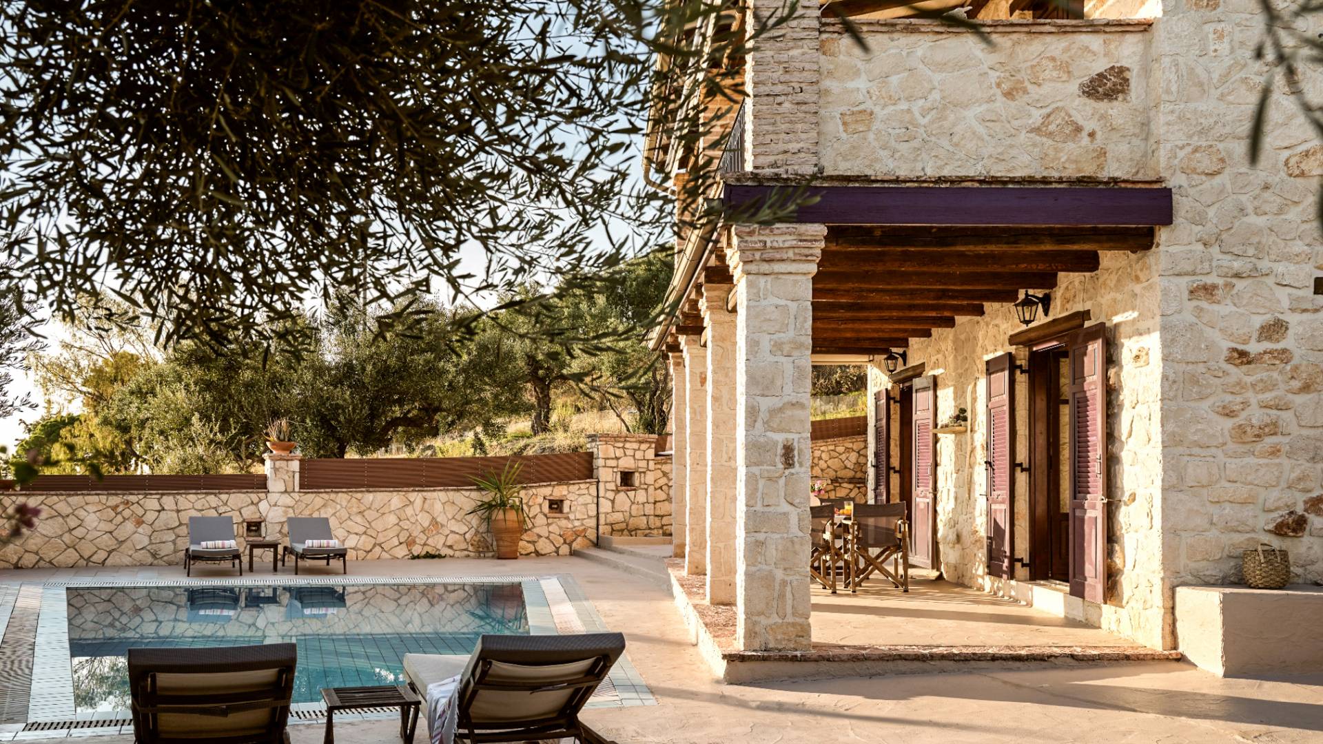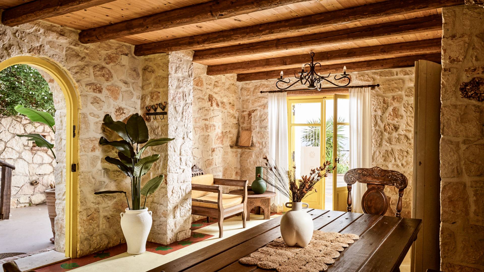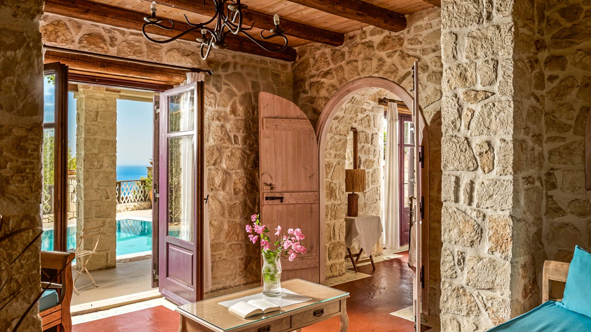 Эта каменная вилла сочетает в себе традиционное греческое очарование с современным комфортом: