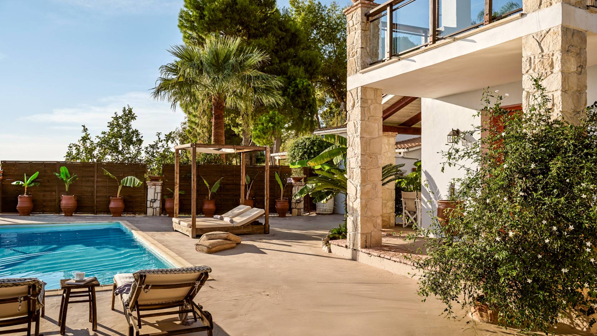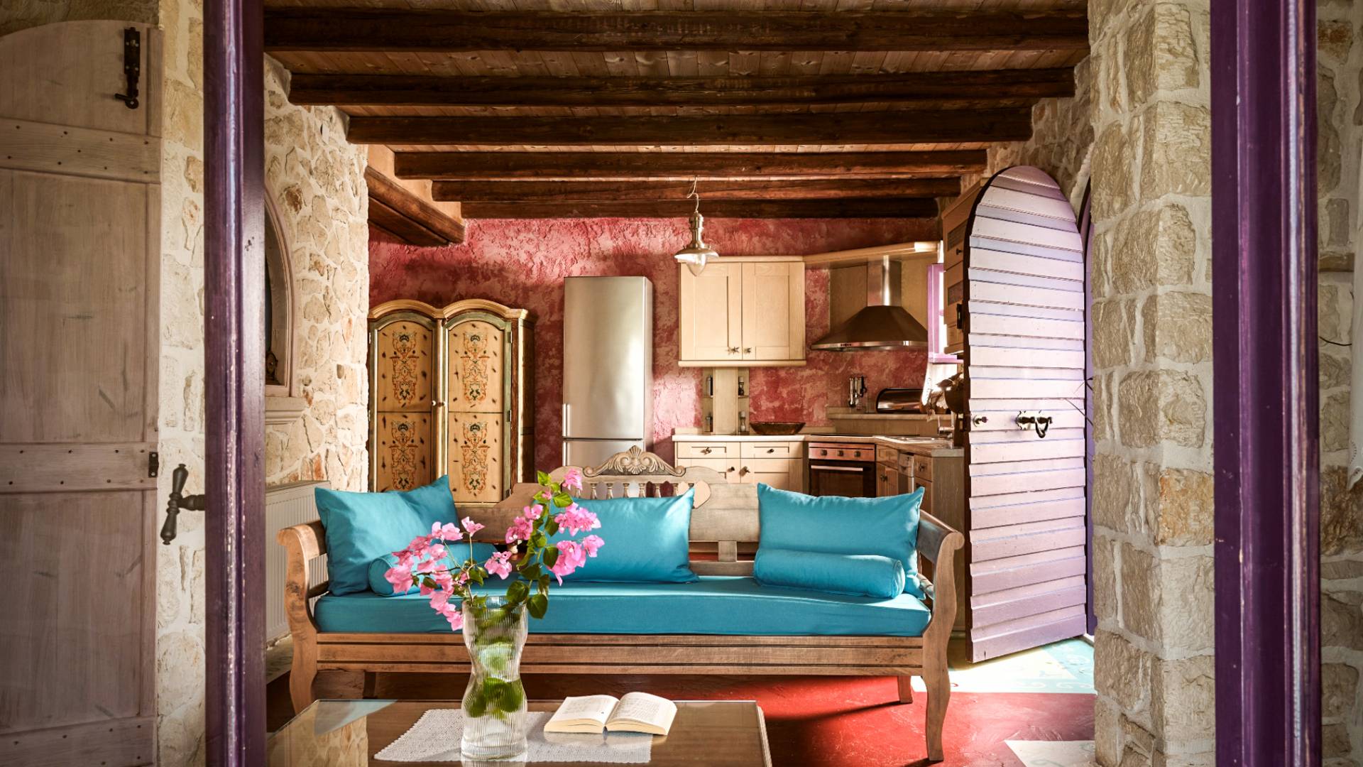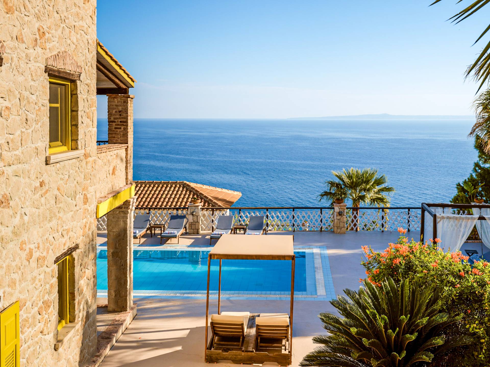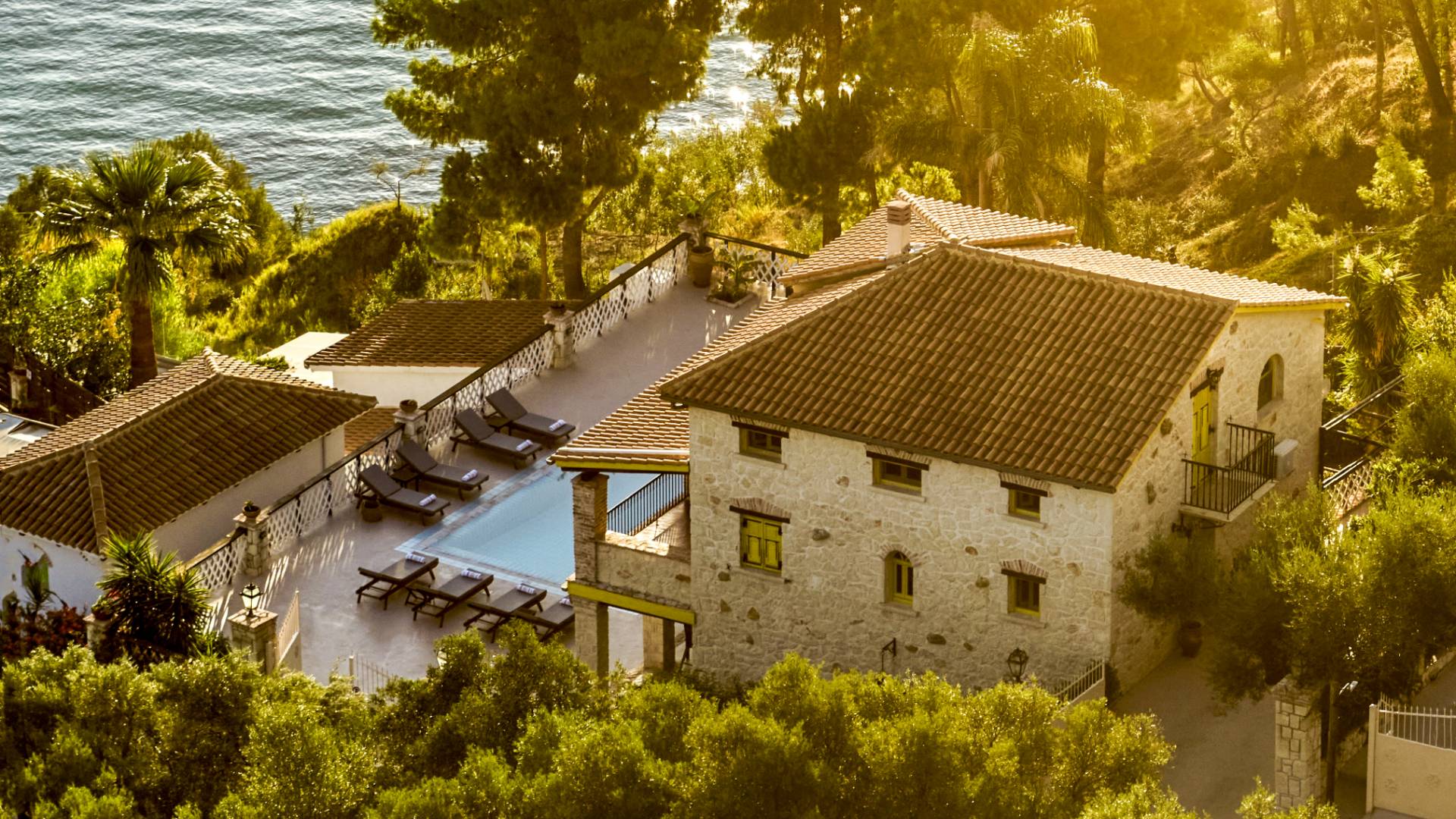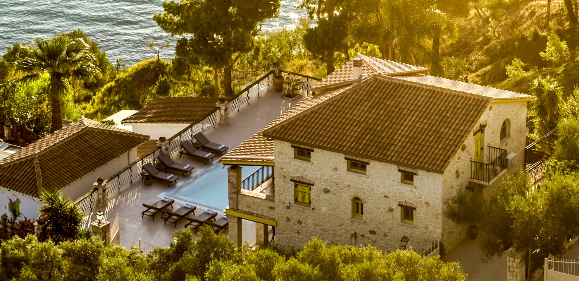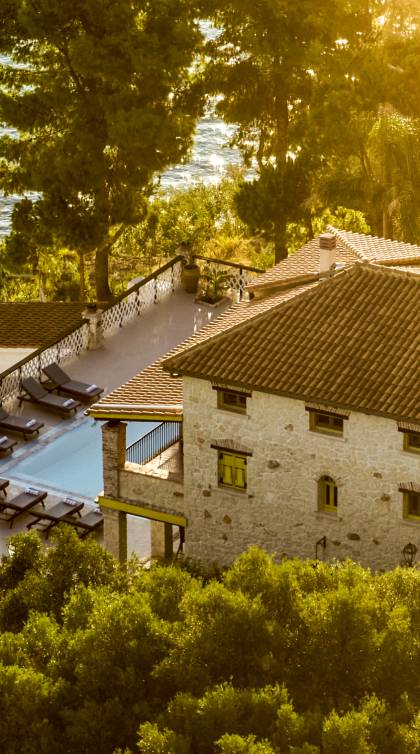 Эта каменная вилла сочетает в себе традиционное греческое очарование с современным комфортом: