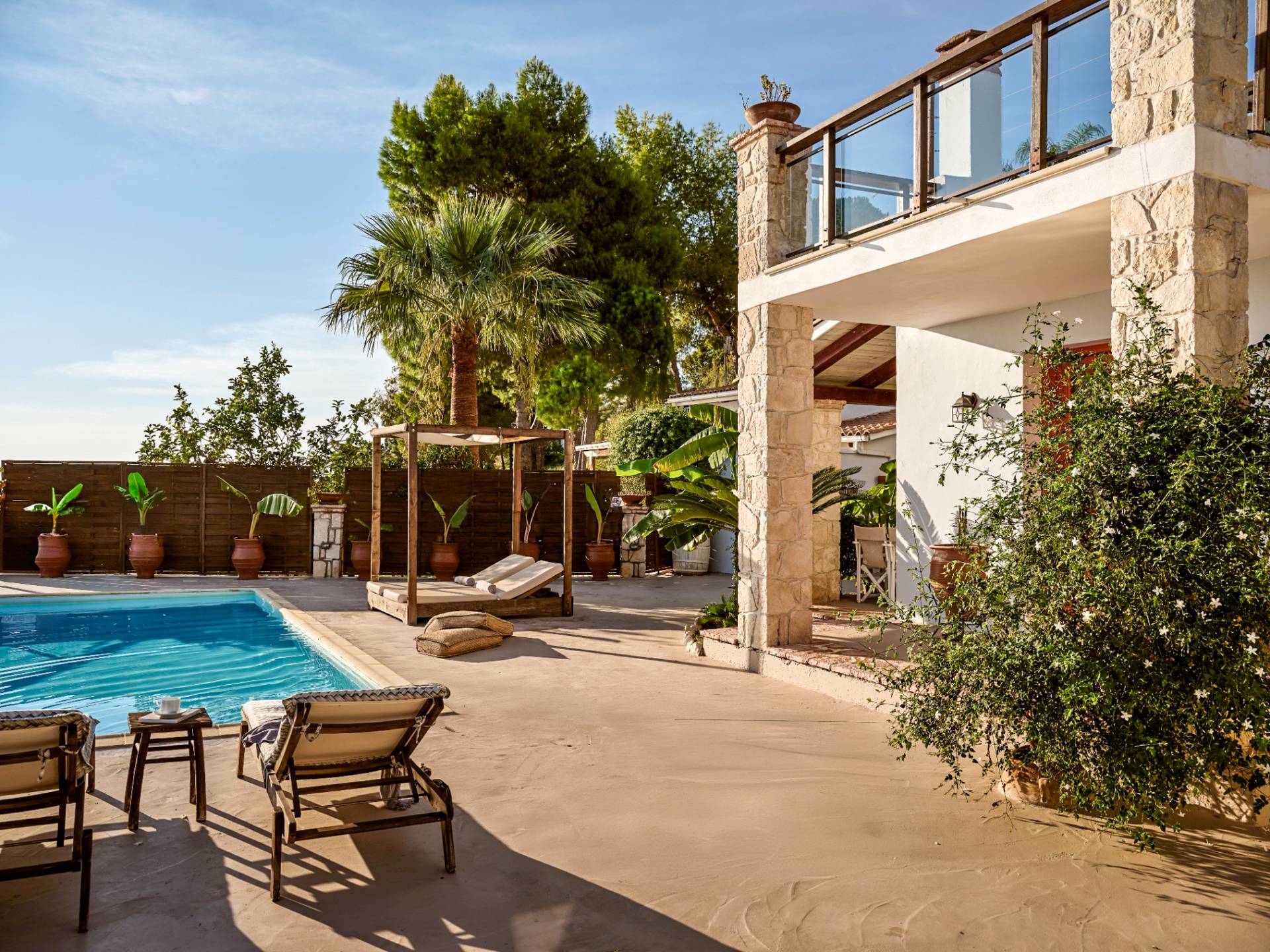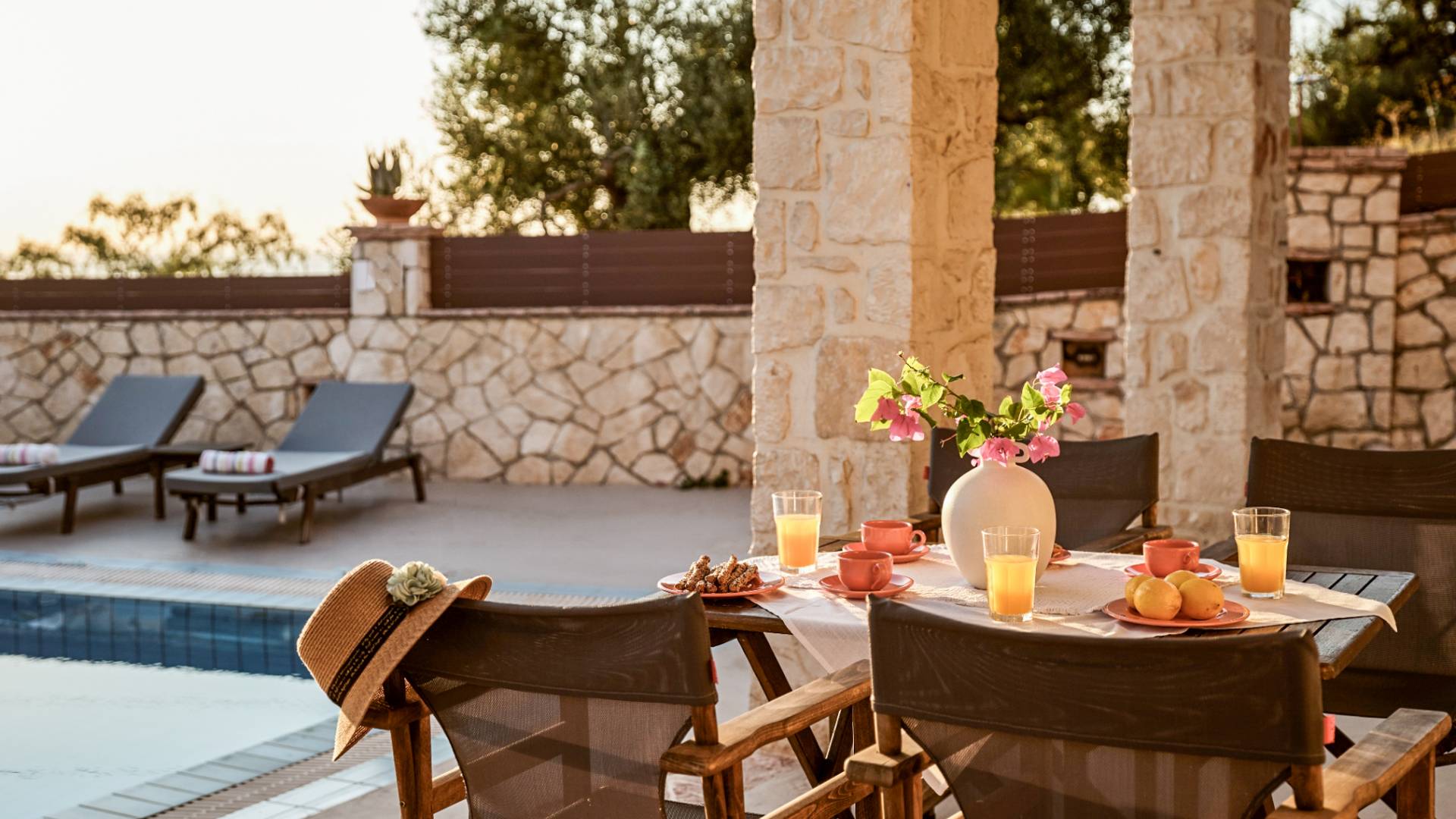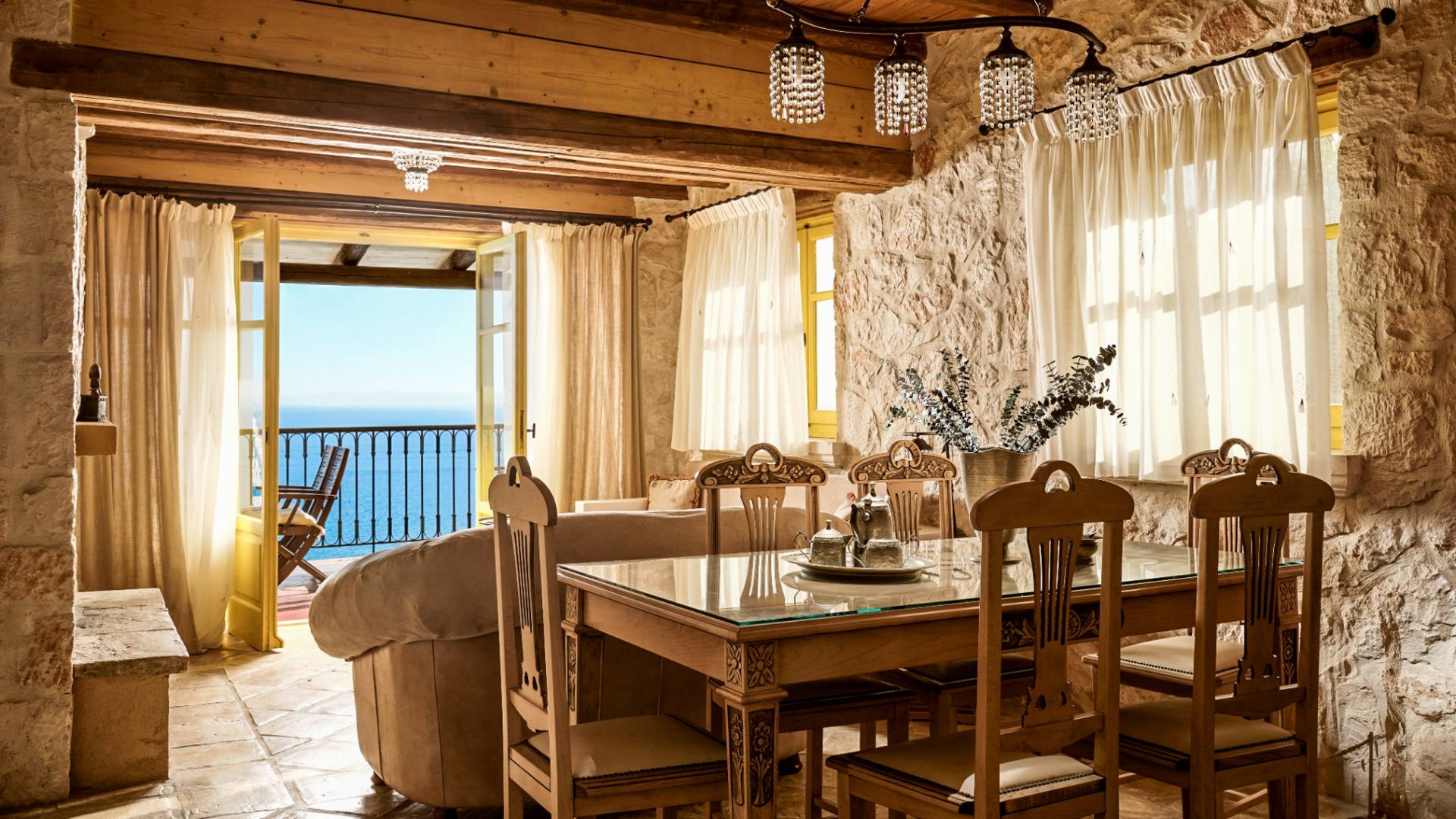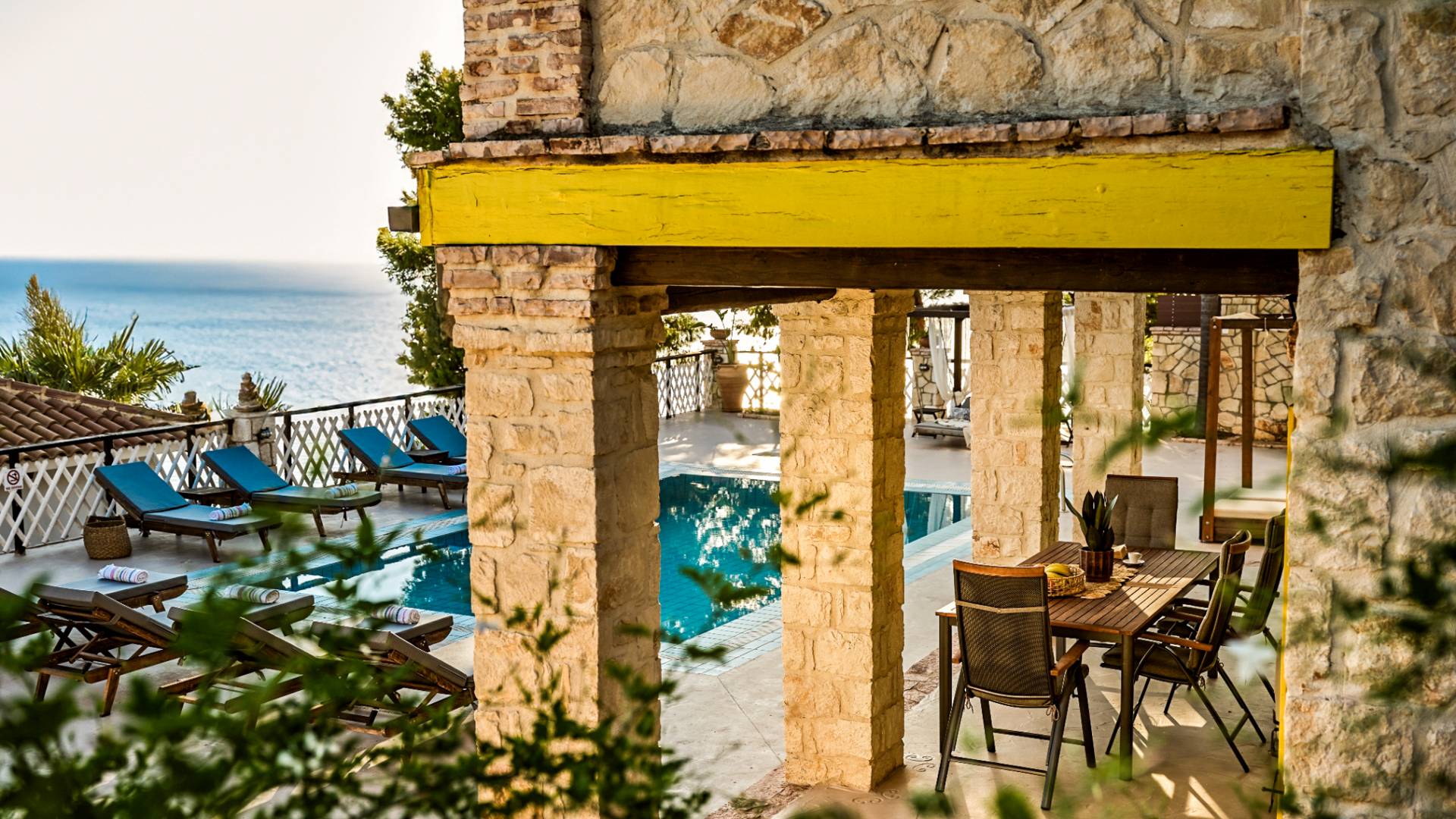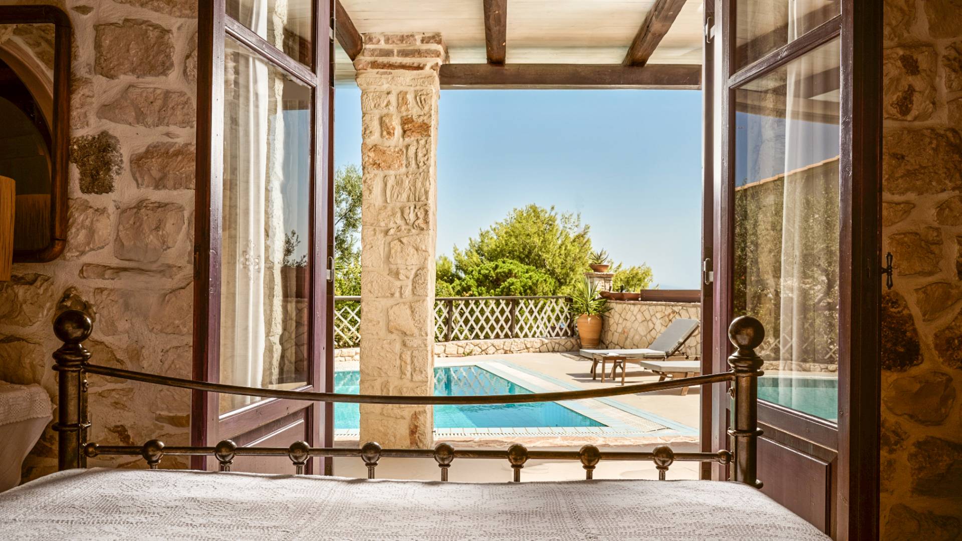 Эта каменная вилла сочетает в себе традиционное греческое очарование с современным комфортом: