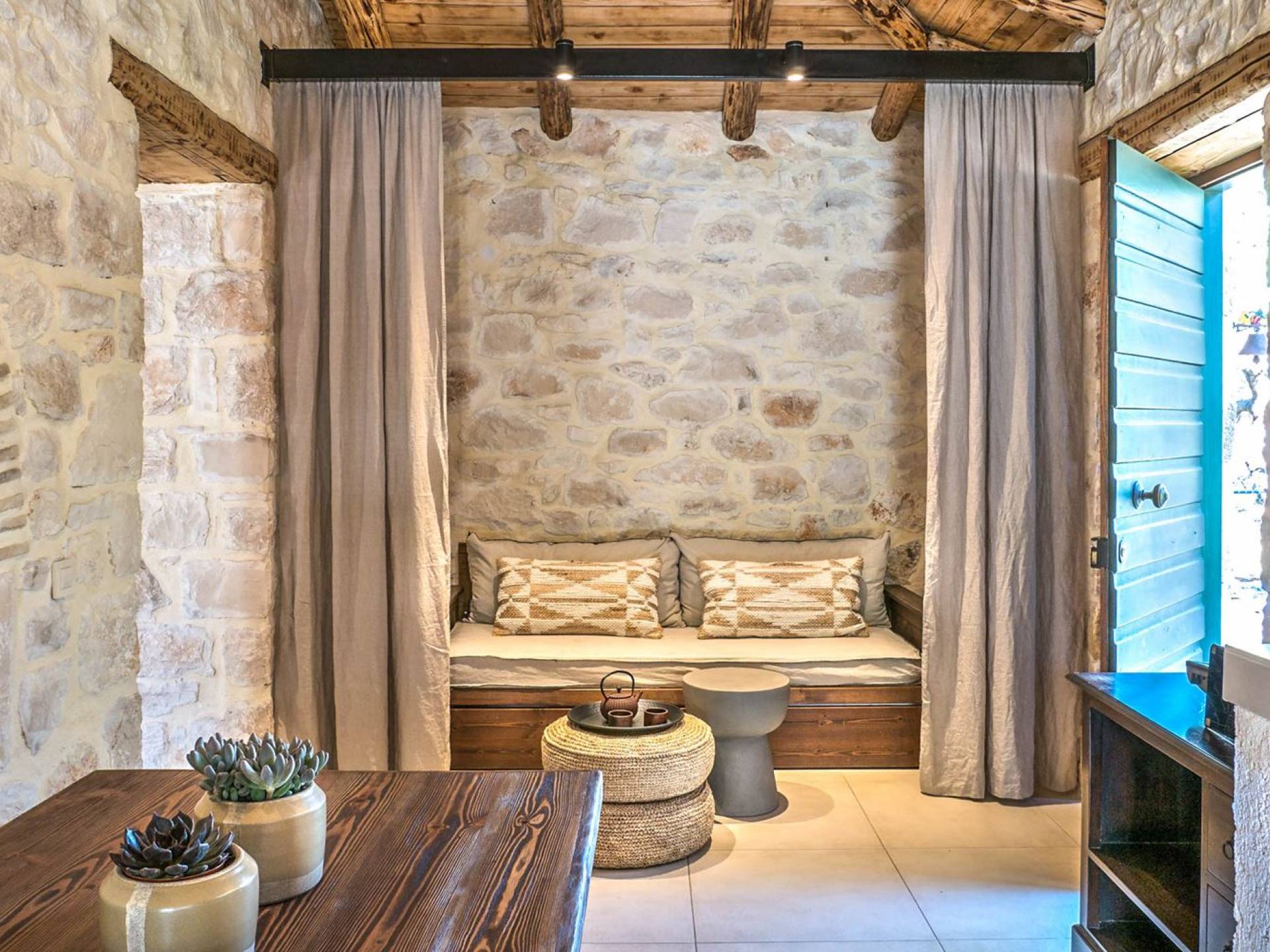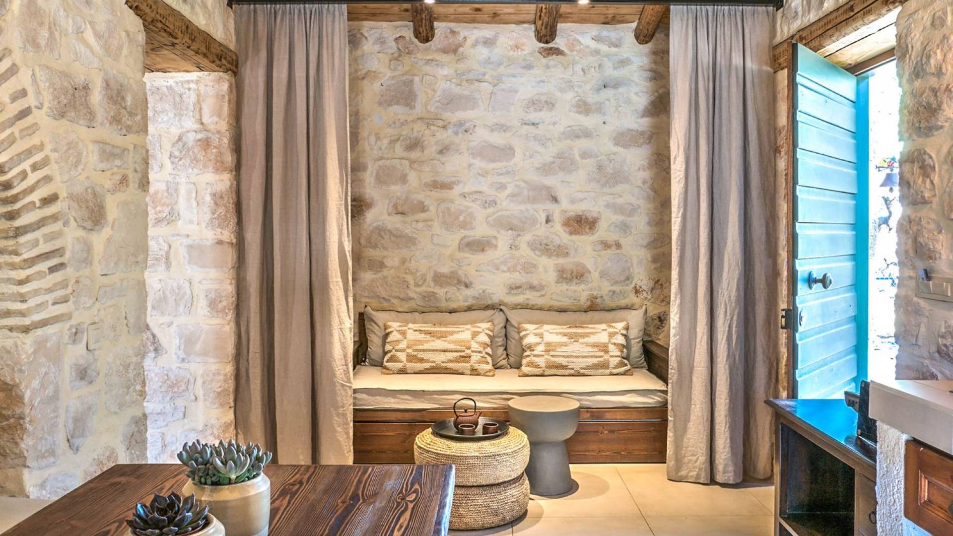 Очаровательно оформленный в натуральных тонах, с деревянной мебелью ручной работы, красивыми каменными стенами и деревянными потолочными балками, в каждом доме есть мягкое, но впечатляющее сочетание традиционного и современного минимализма с множеством удобств и удобств. Каждая студия, квартира или вилла имеет свое неповторимое очарование этого ландшафта, производящего оливковое масло. Все дома индивидуальные дома (квартирные или 2-х уровневые).