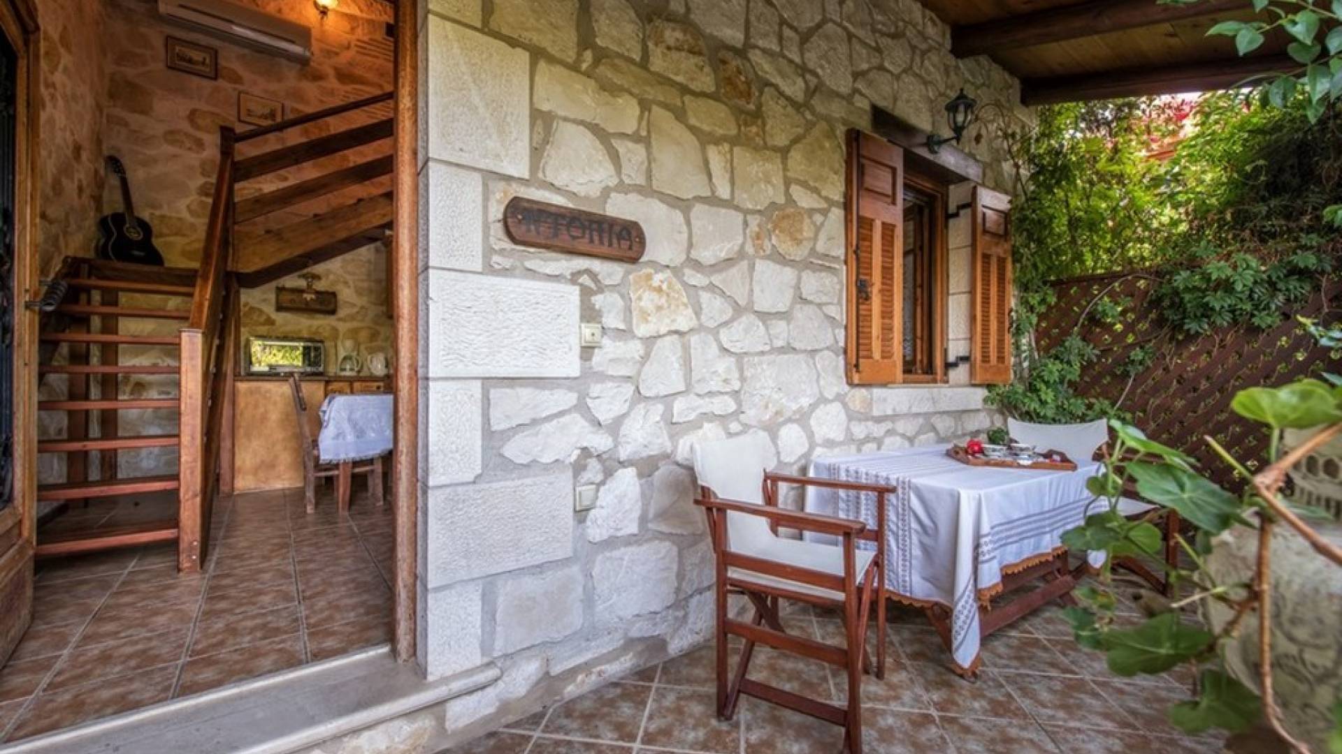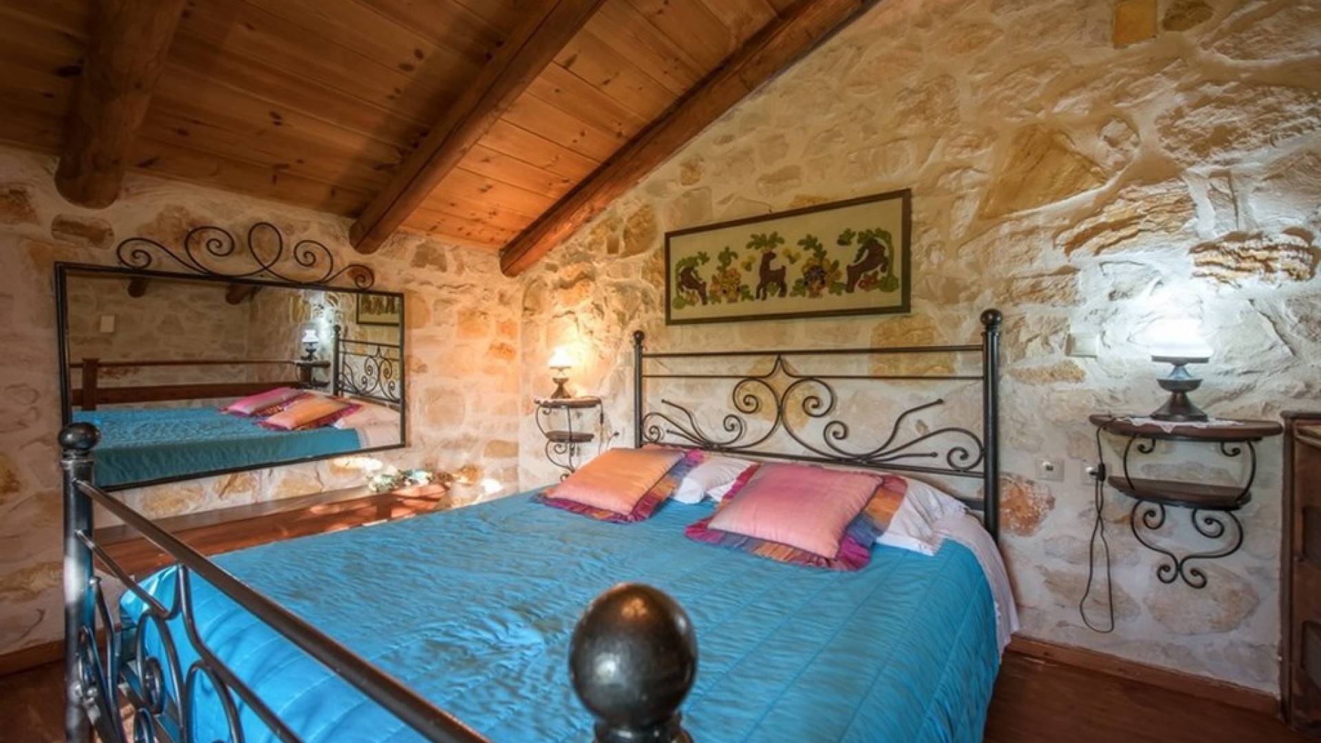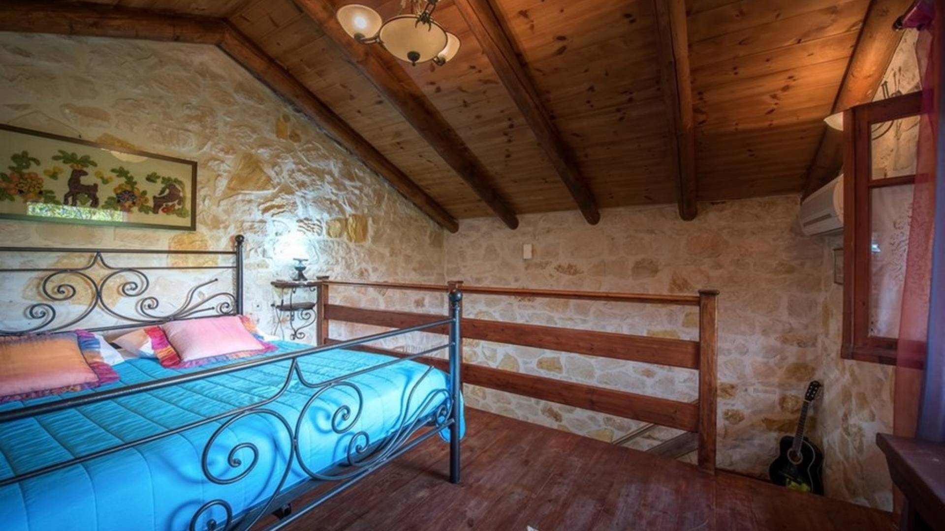 Этот дом был назван в честь старого оливкового дерева, которое растет в саду виллы. Вилла Dopia представляет собой небольшую двухэтажную виллу площадью 85 кв.м. с одной спальней, подходящей для 2-3 человек. Ktima Kourou Tragaki Zante Zakynthos Первый этаж состоит из уютной гостиной с деревянной мебелью, телевизором, DVD и музыкальным центром; полностью оборудованная мини-кухня с небольшой духовкой, кофеваркой, чайником, тостером, блендером, обеденным столом, стульями и всей посудой, а также собственная ванная комната с душем. Деревянная лестница ведет в спальню на первом этаже, оформленную в пастельных тонах, из которой открывается вид на апартаменты внизу. В ней есть двуспальная кровать из кованого железа и соответствующая мебель.
