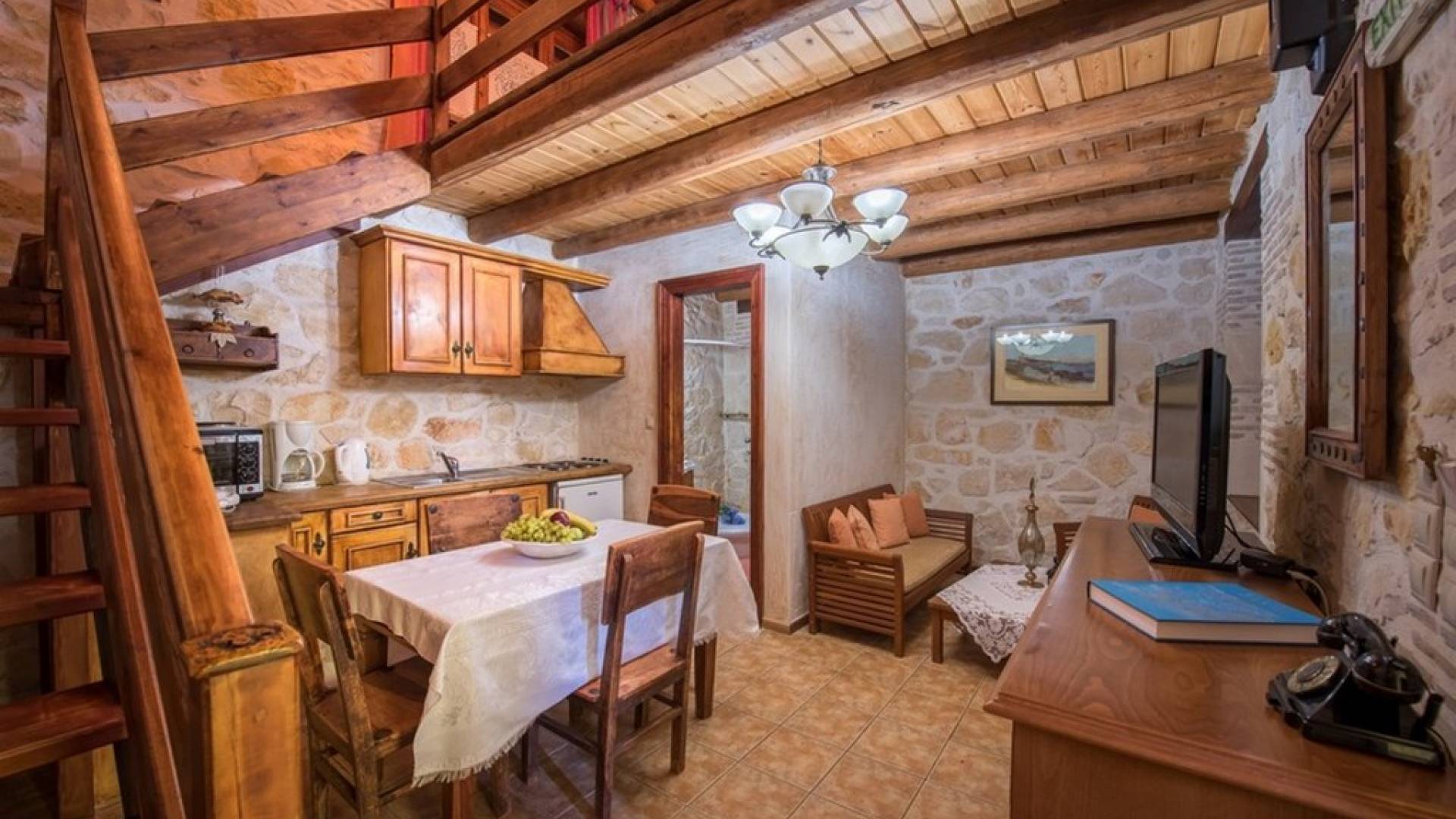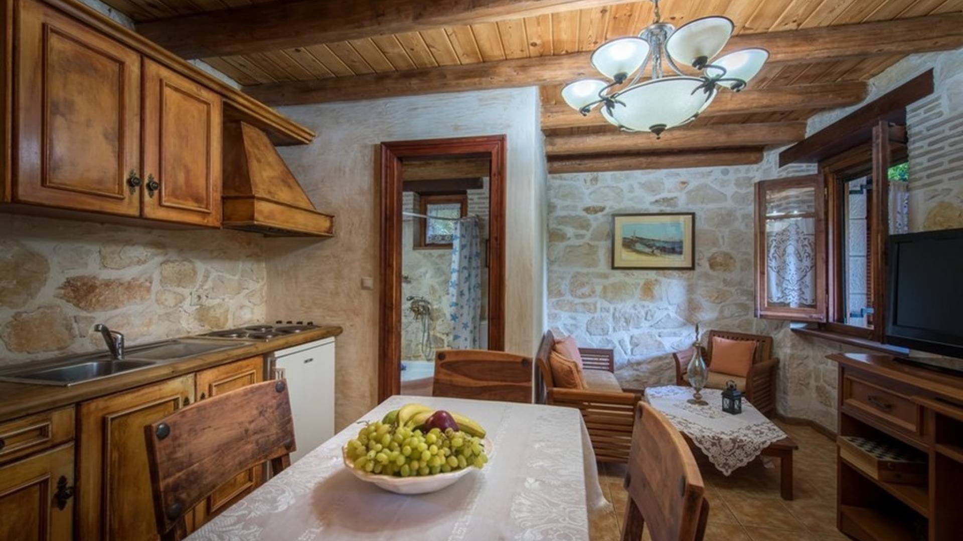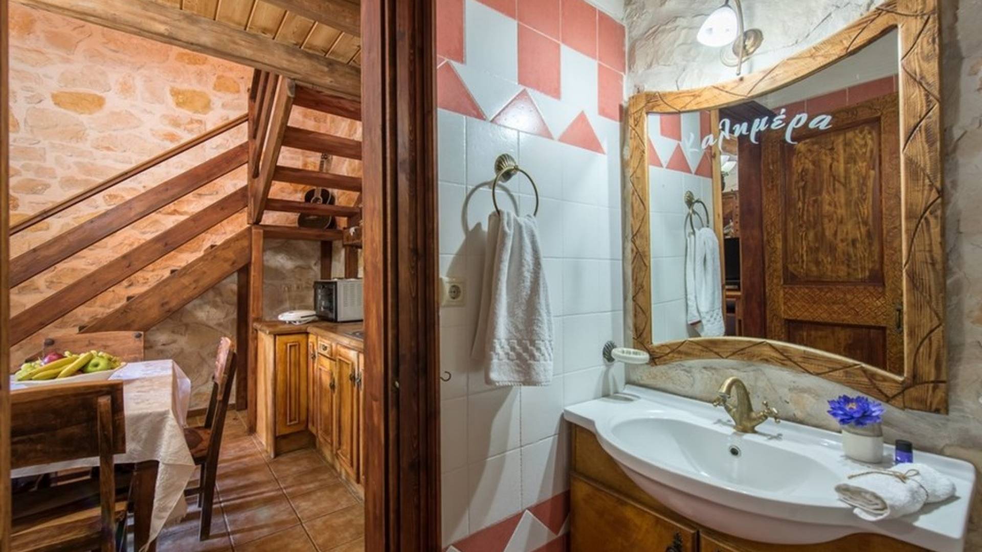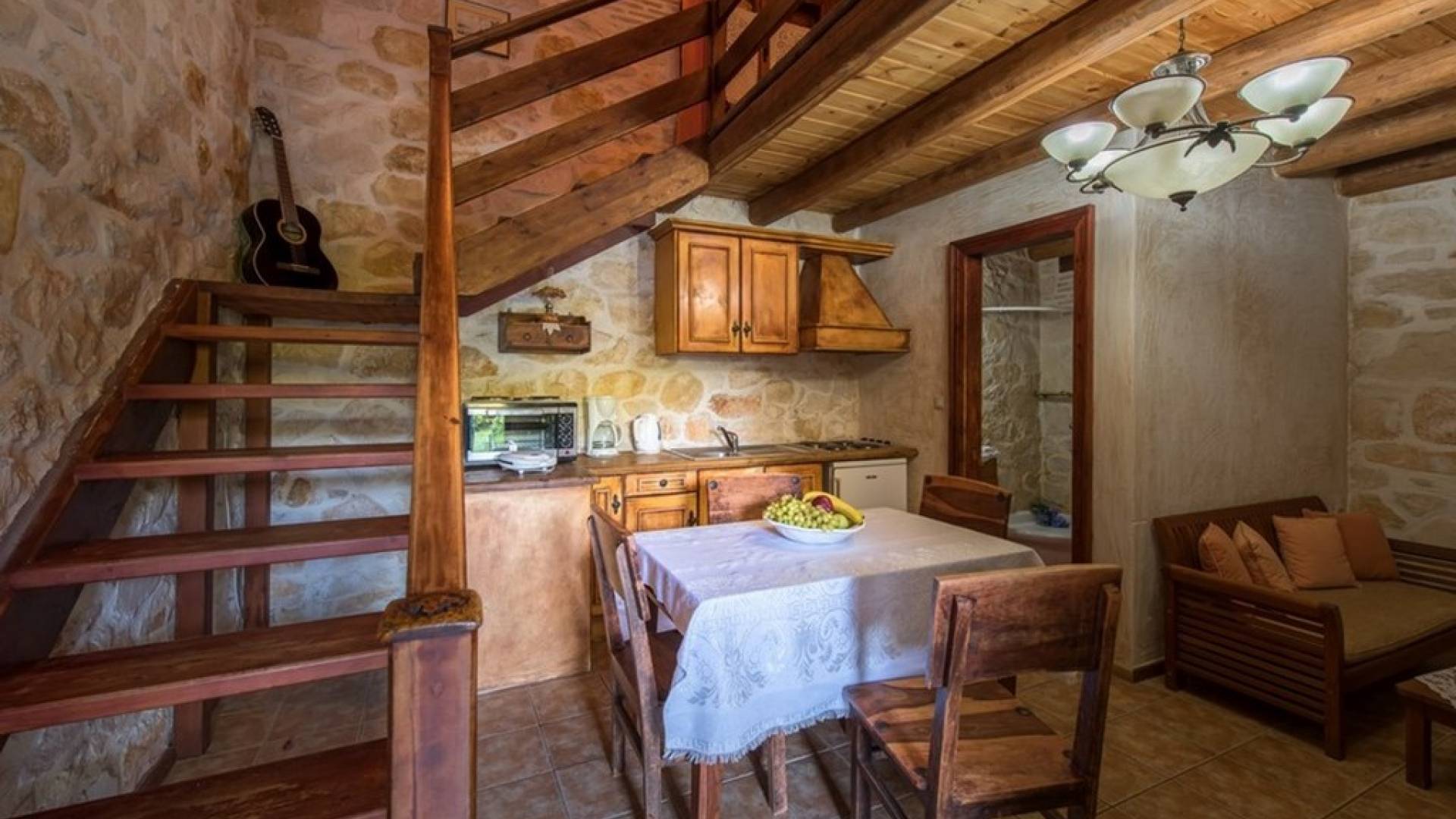 Этот дом был назван в честь старого оливкового дерева, которое растет в саду виллы. Вилла Dopia представляет собой небольшую двухэтажную виллу площадью 85 кв.м. с одной спальней, подходящей для 2-3 человек. Ktima Kourou Tragaki Zante Zakynthos Первый этаж состоит из уютной гостиной с деревянной мебелью, телевизором, DVD и музыкальным центром; полностью оборудованная мини-кухня с небольшой духовкой, кофеваркой, чайником, тостером, блендером, обеденным столом, стульями и всей посудой, а также собственная ванная комната с душем. Деревянная лестница ведет в спальню на первом этаже, оформленную в пастельных тонах, из которой открывается вид на апартаменты внизу. В ней есть двуспальная кровать из кованого железа и соответствующая мебель.