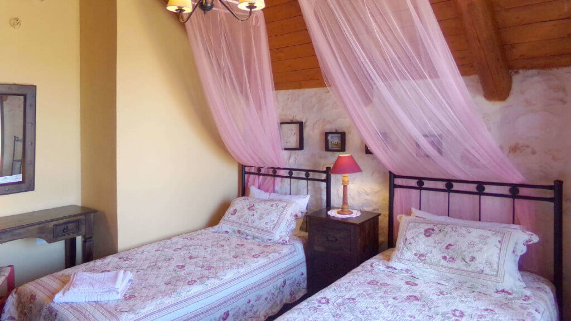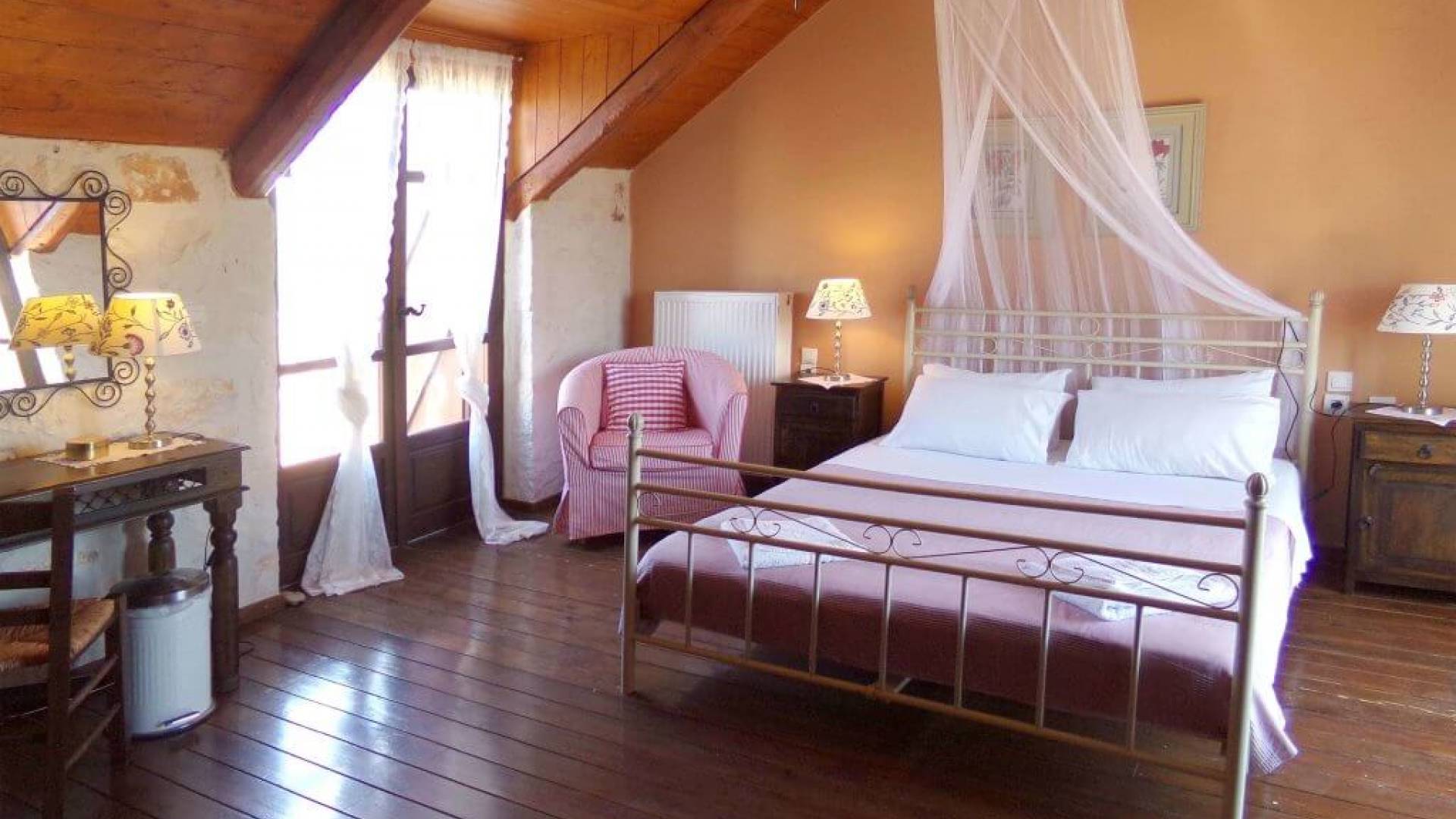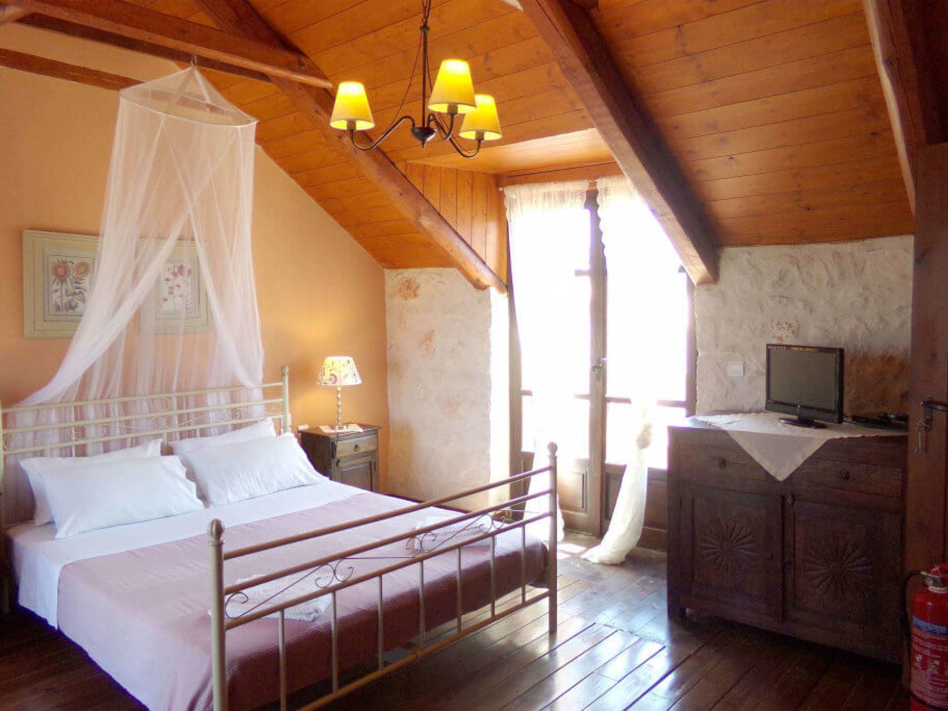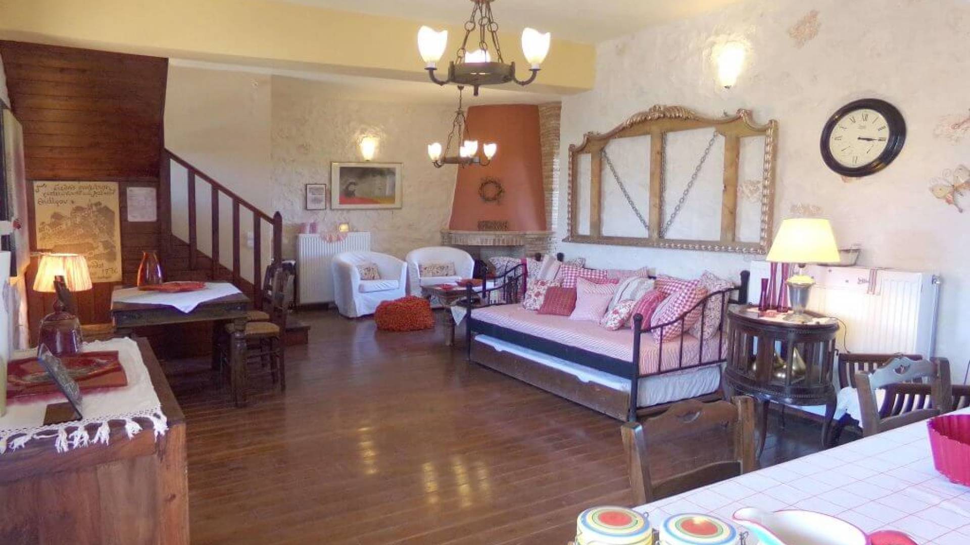 Во всех апартаментах есть гостиная зона на первом уровне (где могут разместиться еще 2 гостя), красиво оформленная антикварной мебелью, освещением, зеркалами, традиционной вышивкой и множеством подушек, создающих ауру закинтийского гостеприимства. Рядом находится полностью оборудованная кухня с холодильником, плитой, духовкой, посудомоечной и стиральной машинами, посудой и всей необходимой посудой. Здесь также есть очаровательная романтическая спальня с двуспальной кроватью, камином и ванной с душем и туалетом.