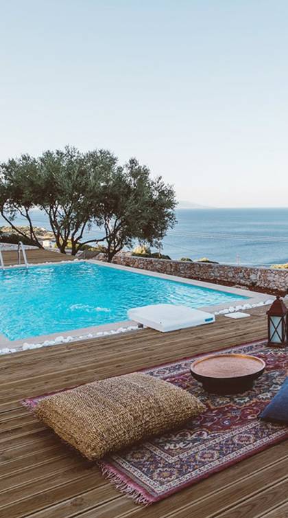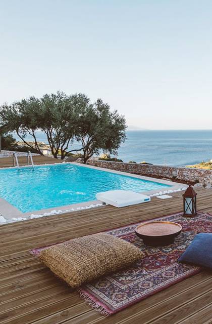 Приблизительно 1500 квадратных метров земли окружают участок, построенный из камня ручной работы, старых строительных материалов, которые органично вписываются в окружающую среду острова и историю ландшафта. Он имеет собственный бассейн, открытую обеденную зону с барбекю, удобные диваны на террасах, ковры и свечи, а также «уютные» уголки под оливковыми деревьями. Вилла Yasmi с удивительным расположением и невероятным видом на море вмещает 4 человек в 2 спальнях и обеспечивает полный опыт спокойного отдыха.