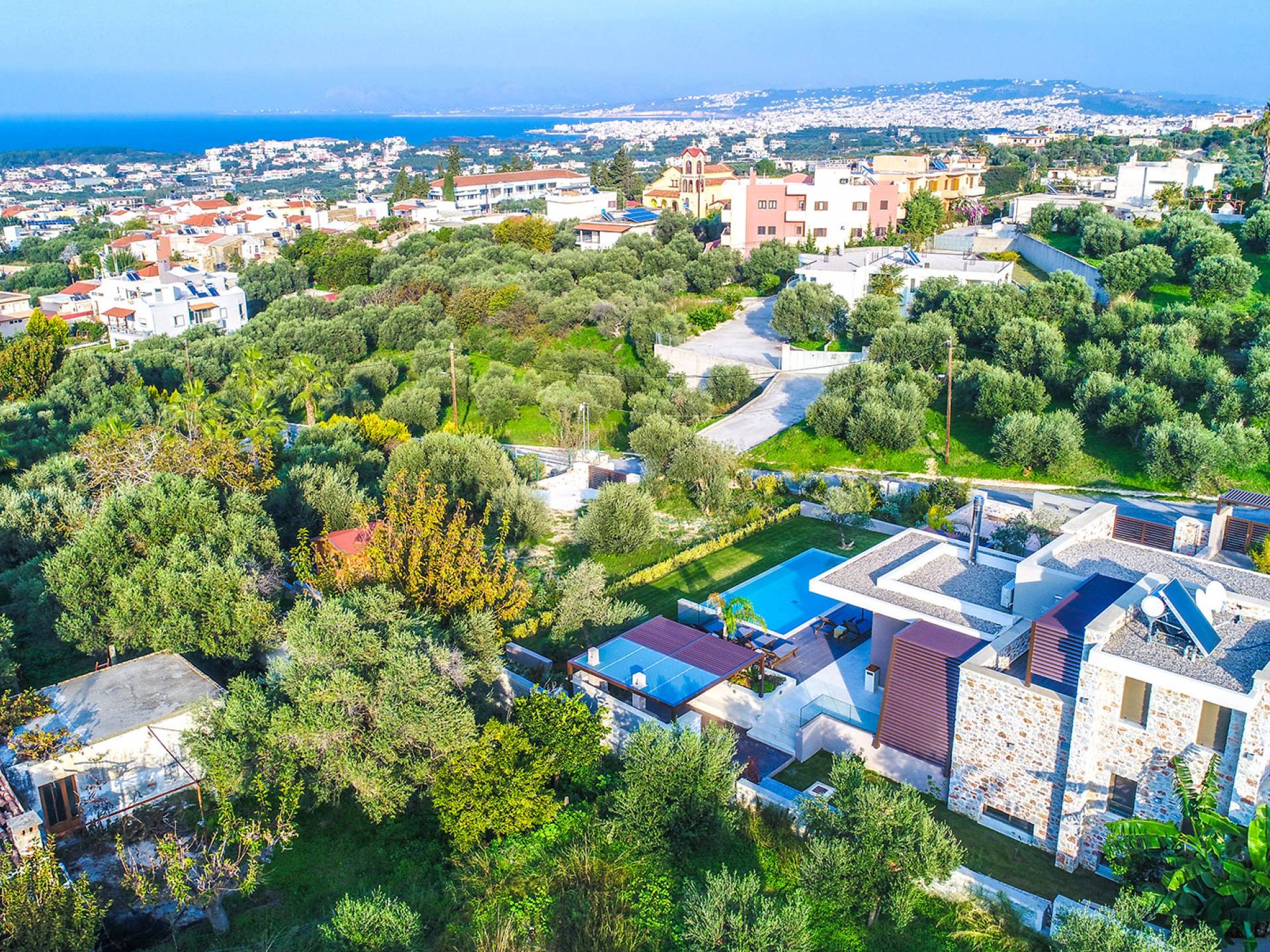 Afroditi Villa Chania - это новая роскошная вилла, построенная на холме с панорамным видом на Критское море и деревню Даратсо. В 200 метрах от виллы вы можете найти ресторан, супермаркет и кафе до главной площади деревни Даратсо. Это идеальный выбор для группы друзей, пар или семей, которые ищут изысканную атмосферу и ищут идеальную базу для знакомства с районом Ханьи и западом Крита. Он построен по высоким стандартам, в нем преобладают местные элементы и прекрасный вид.