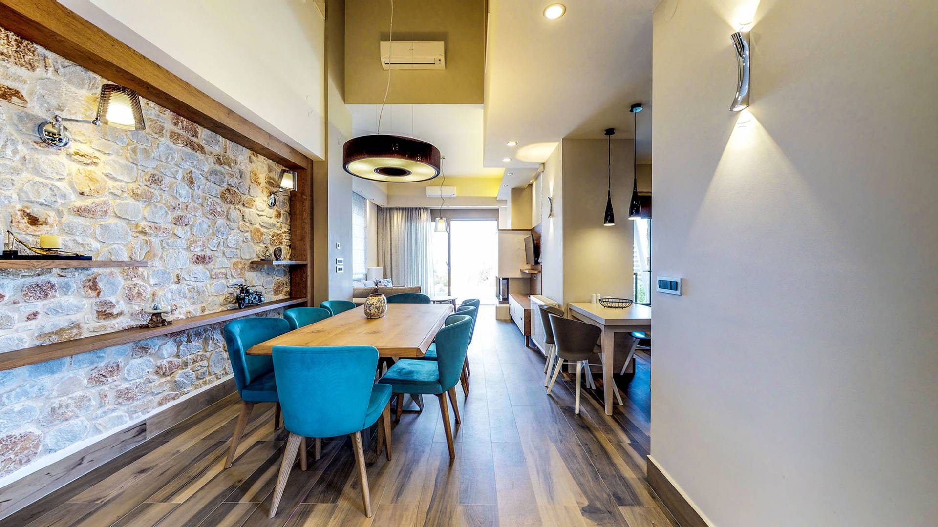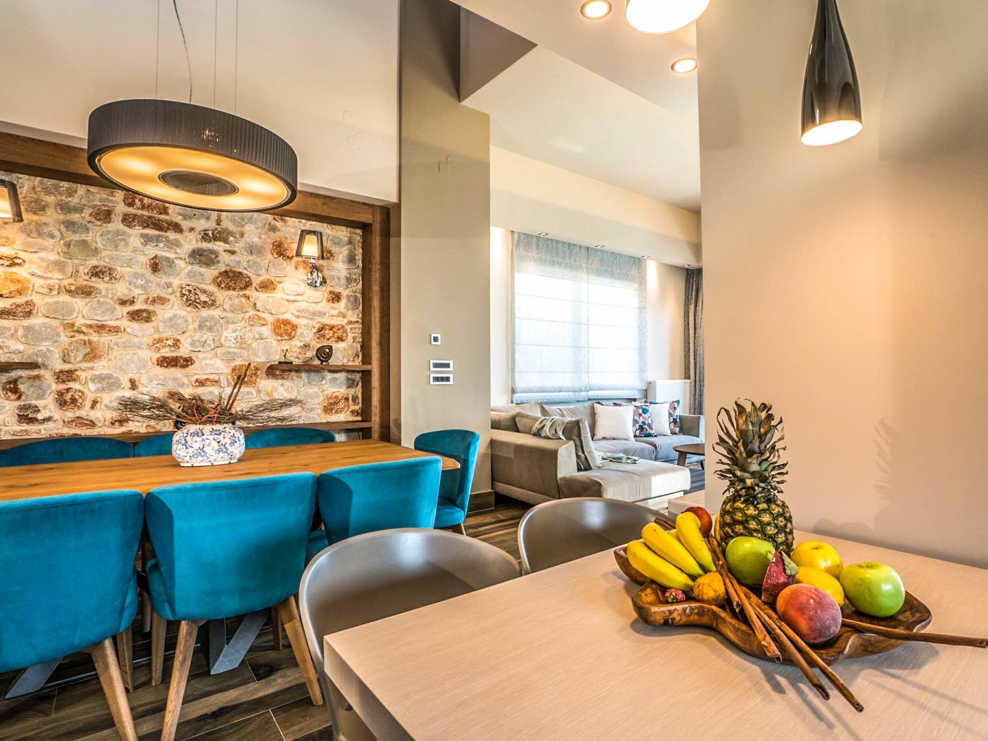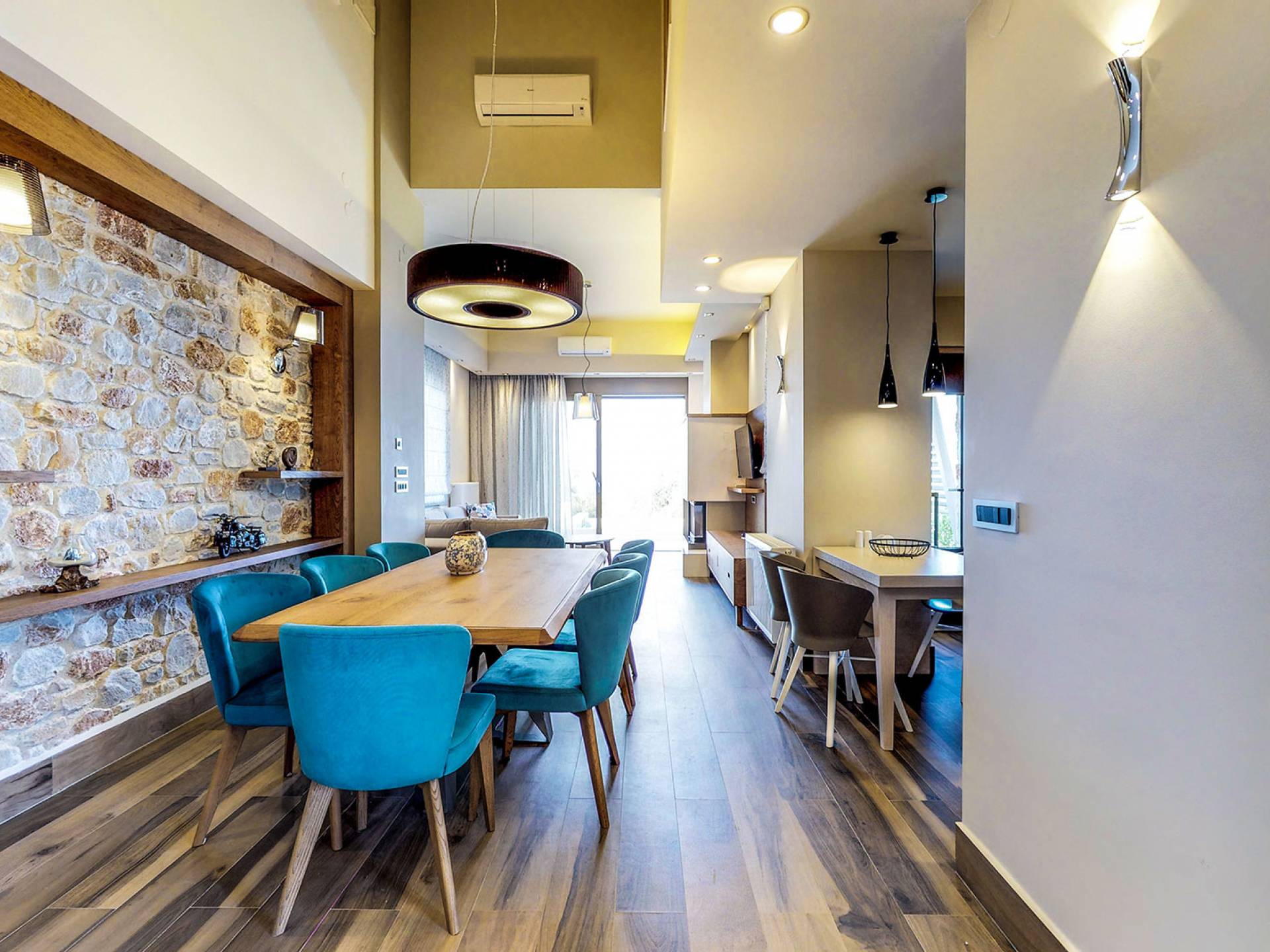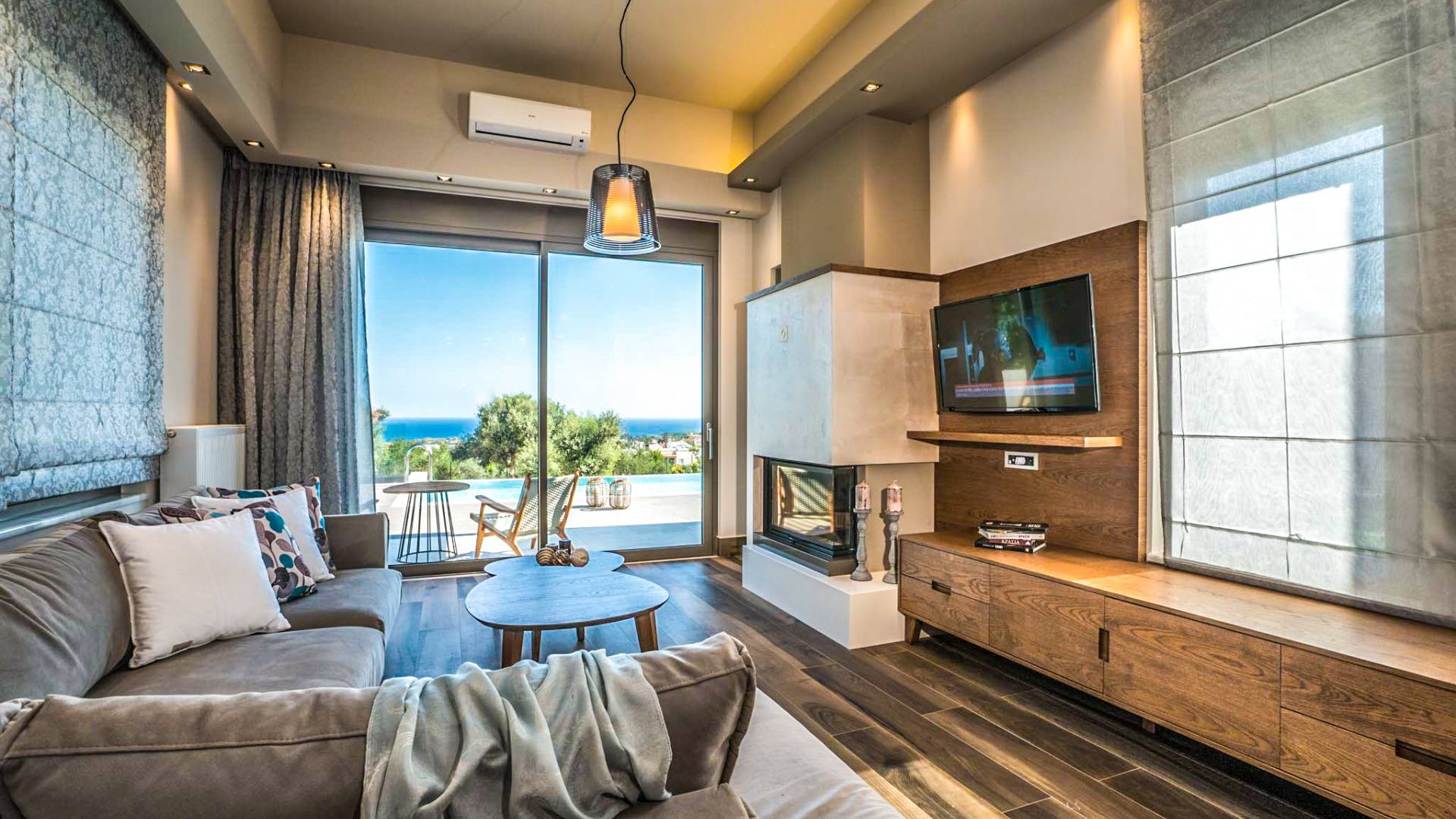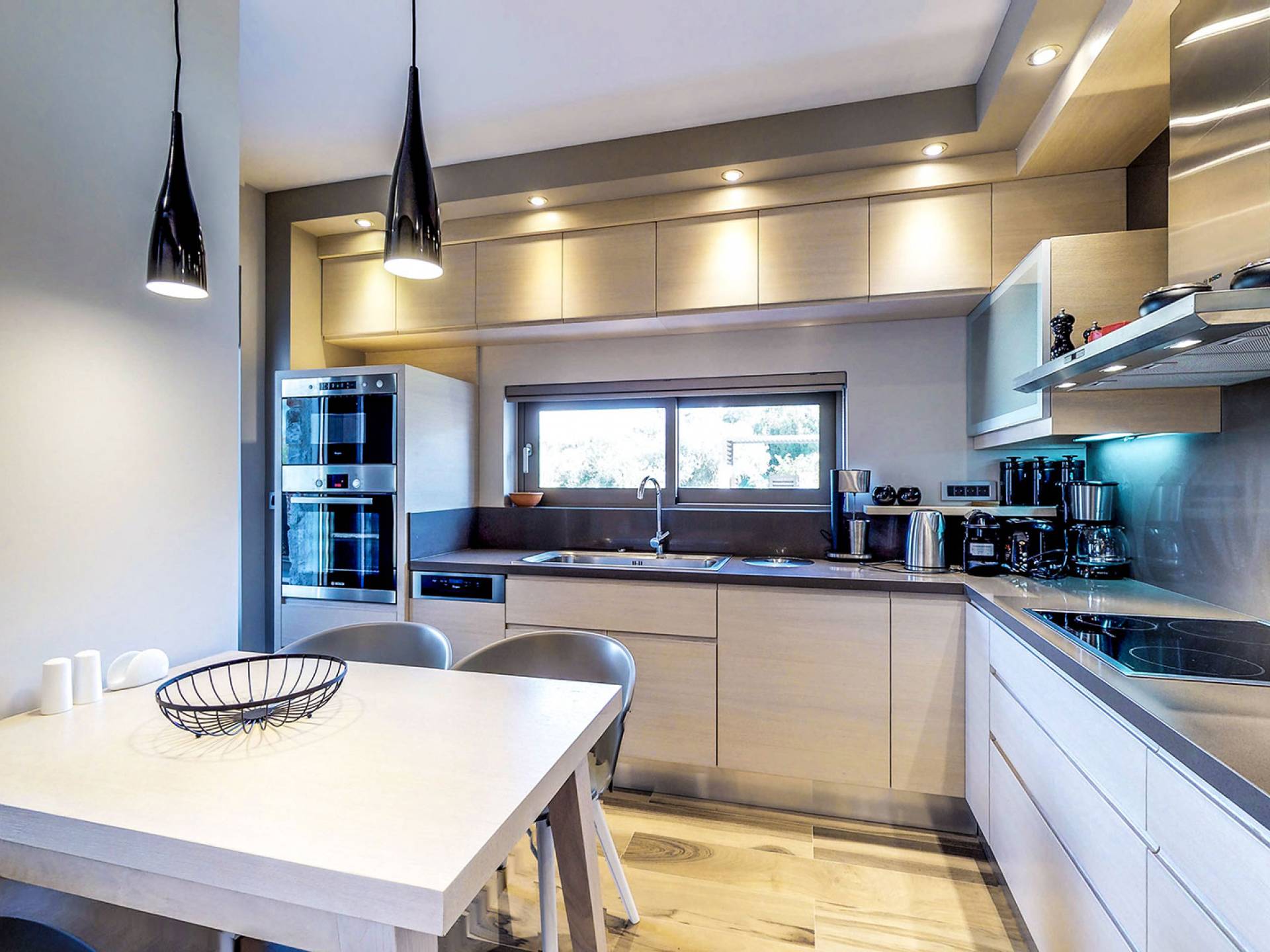 Вилла Afroditi Chania состоит из 3 уровней и может вместить до 8 взрослых и 1 ребенка. На первом этаже находится основная гостиная с большими и удобными диванами, обеденная зона и полностью оборудованная кухня. Есть также 2 спальни с двуспальными кроватями, которые имеют общую ванную комнату с душем. На втором этаже находится еще одна спальня с большой двуспальной кроватью и ванной комнатой с душем. На нижнем этаже есть еще одна гостиная, одна спальня с ванной комнатой и игровая комната с тренажерным залом и бильярдным столом.