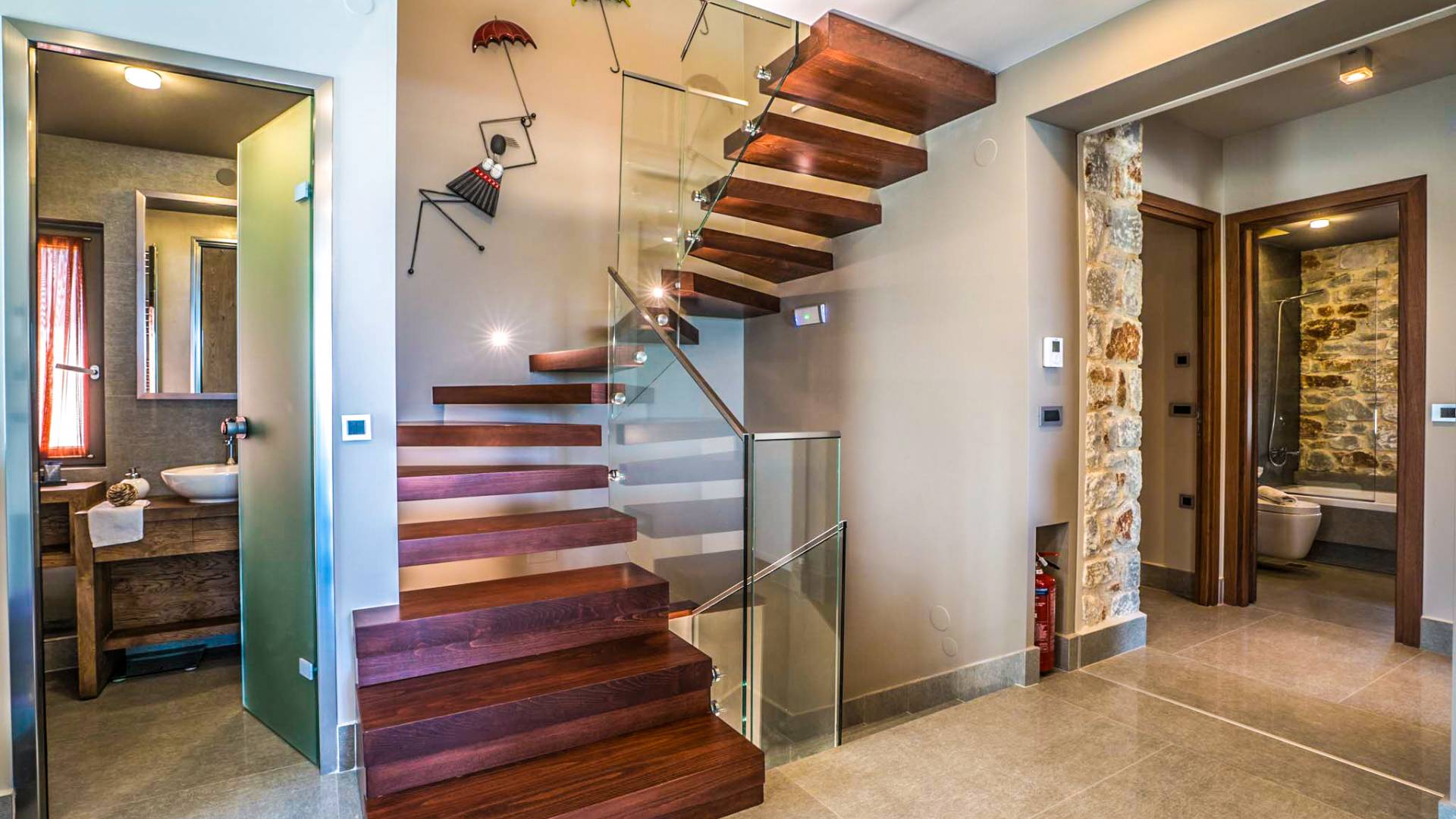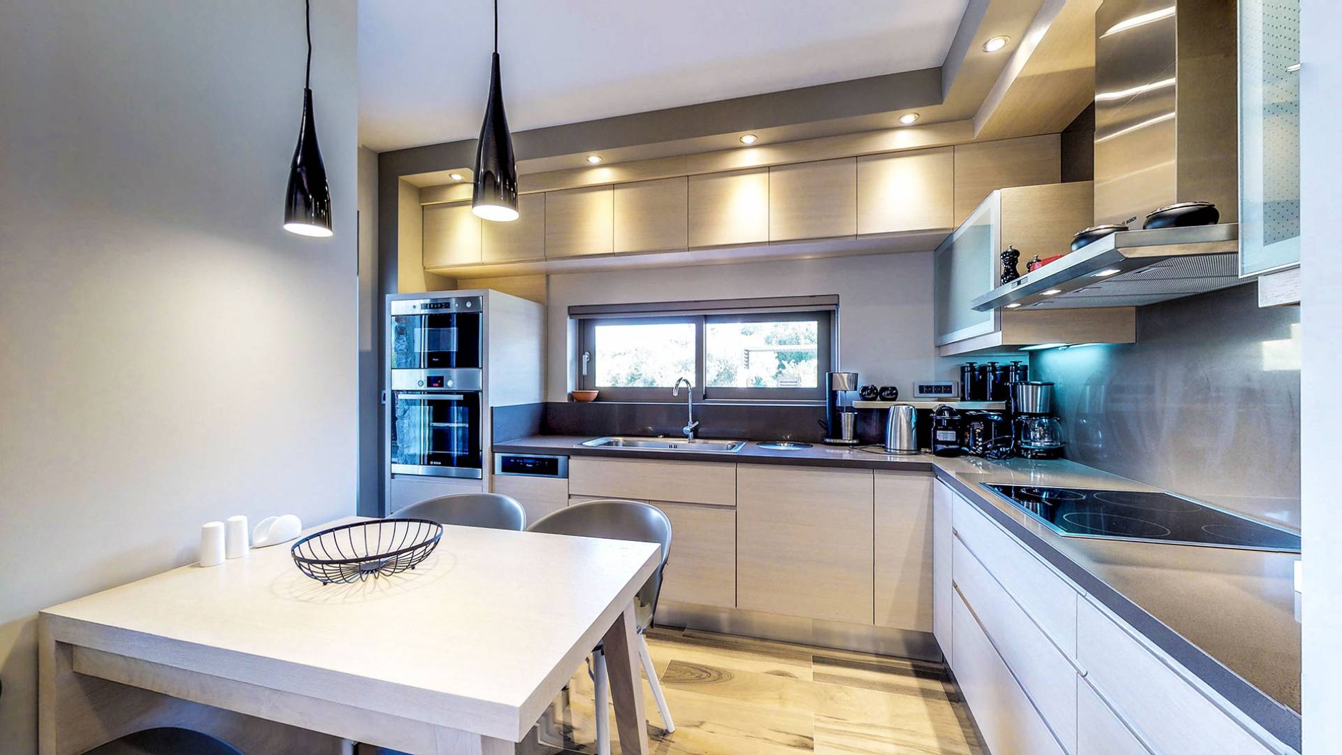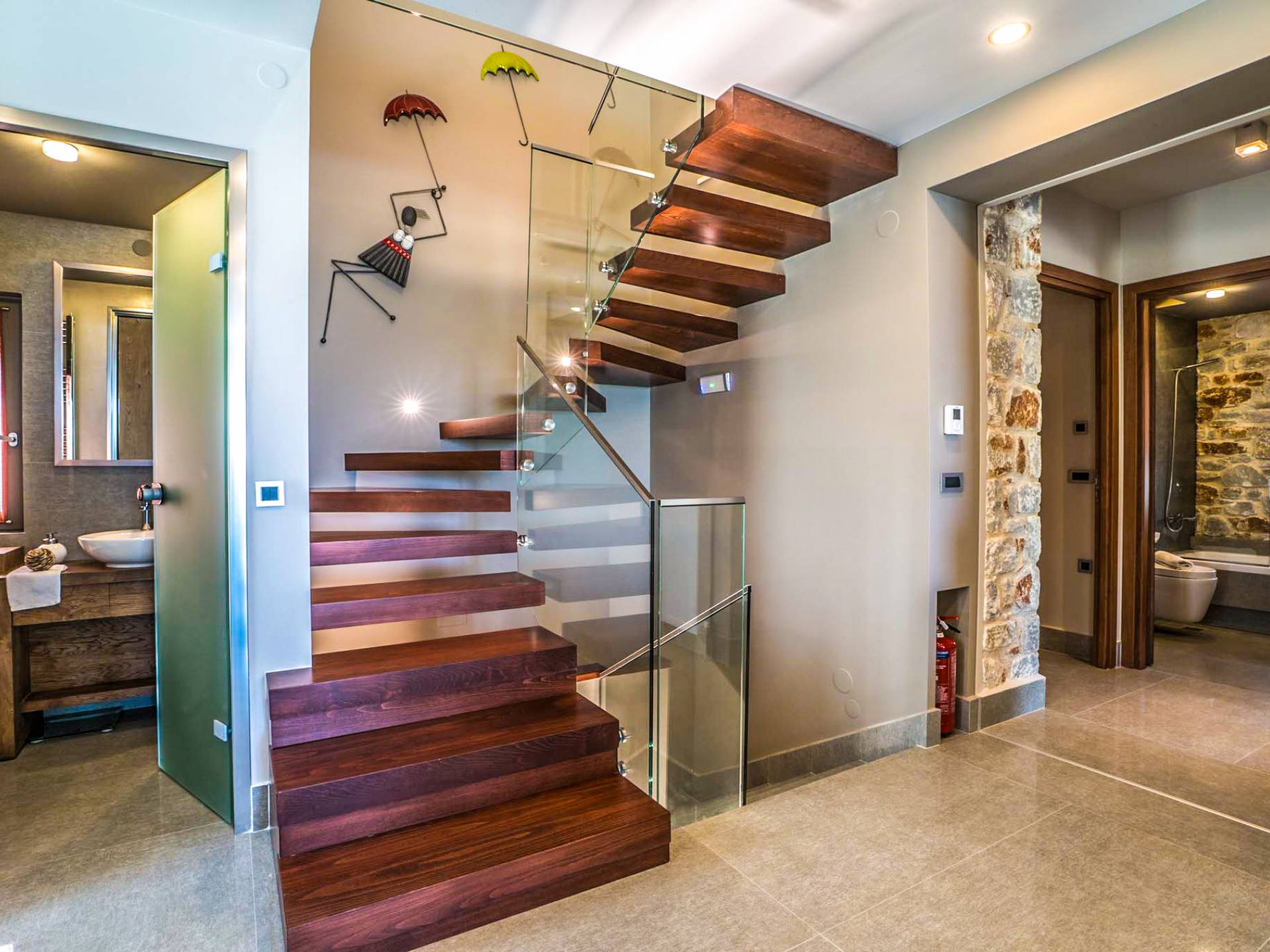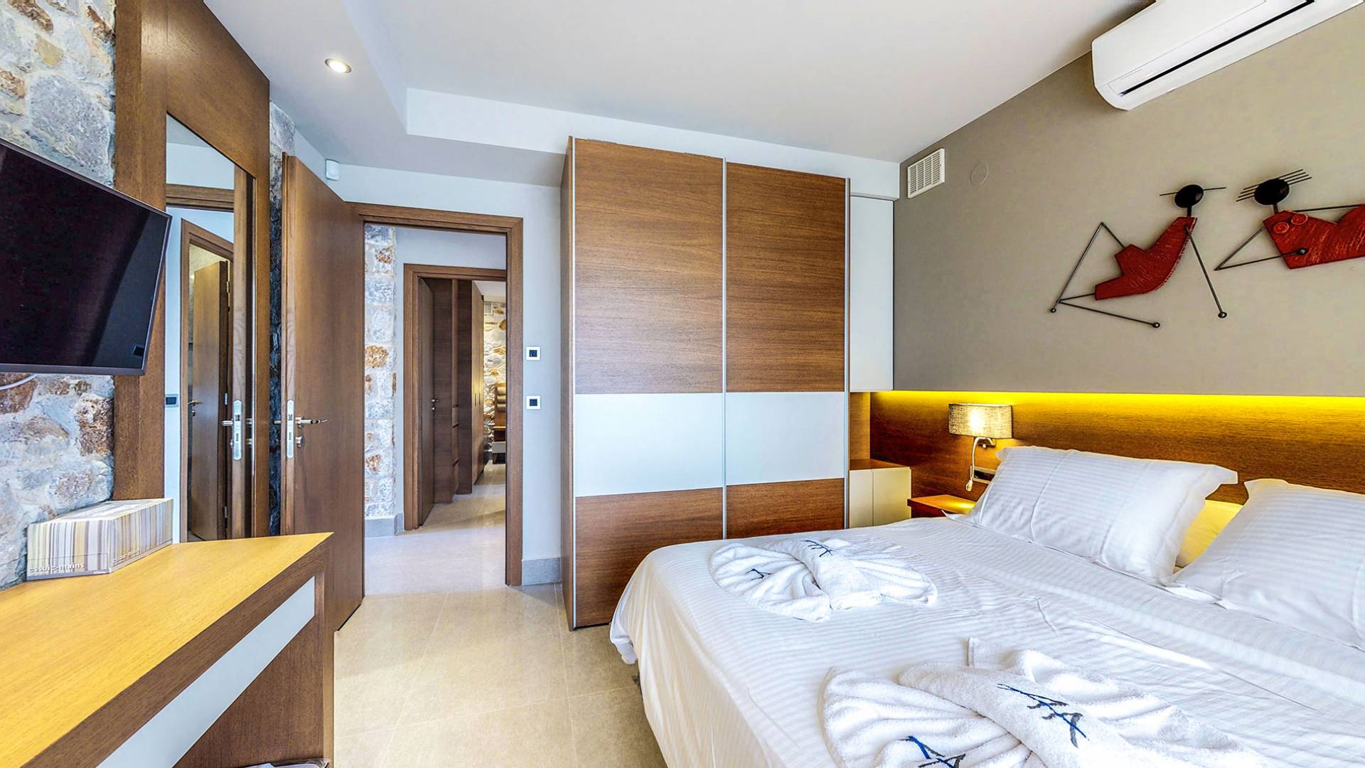 Вилла Afroditi Chania состоит из 3 уровней и может вместить до 8 взрослых и 1 ребенка. На первом этаже находится основная гостиная с большими и удобными диванами, обеденная зона и полностью оборудованная кухня. Есть также 2 спальни с двуспальными кроватями, которые имеют общую ванную комнату с душем. На втором этаже находится еще одна спальня с большой двуспальной кроватью и ванной комнатой с душем. На нижнем этаже есть еще одна гостиная, одна спальня с ванной комнатой и игровая комната с тренажерным залом и бильярдным столом.