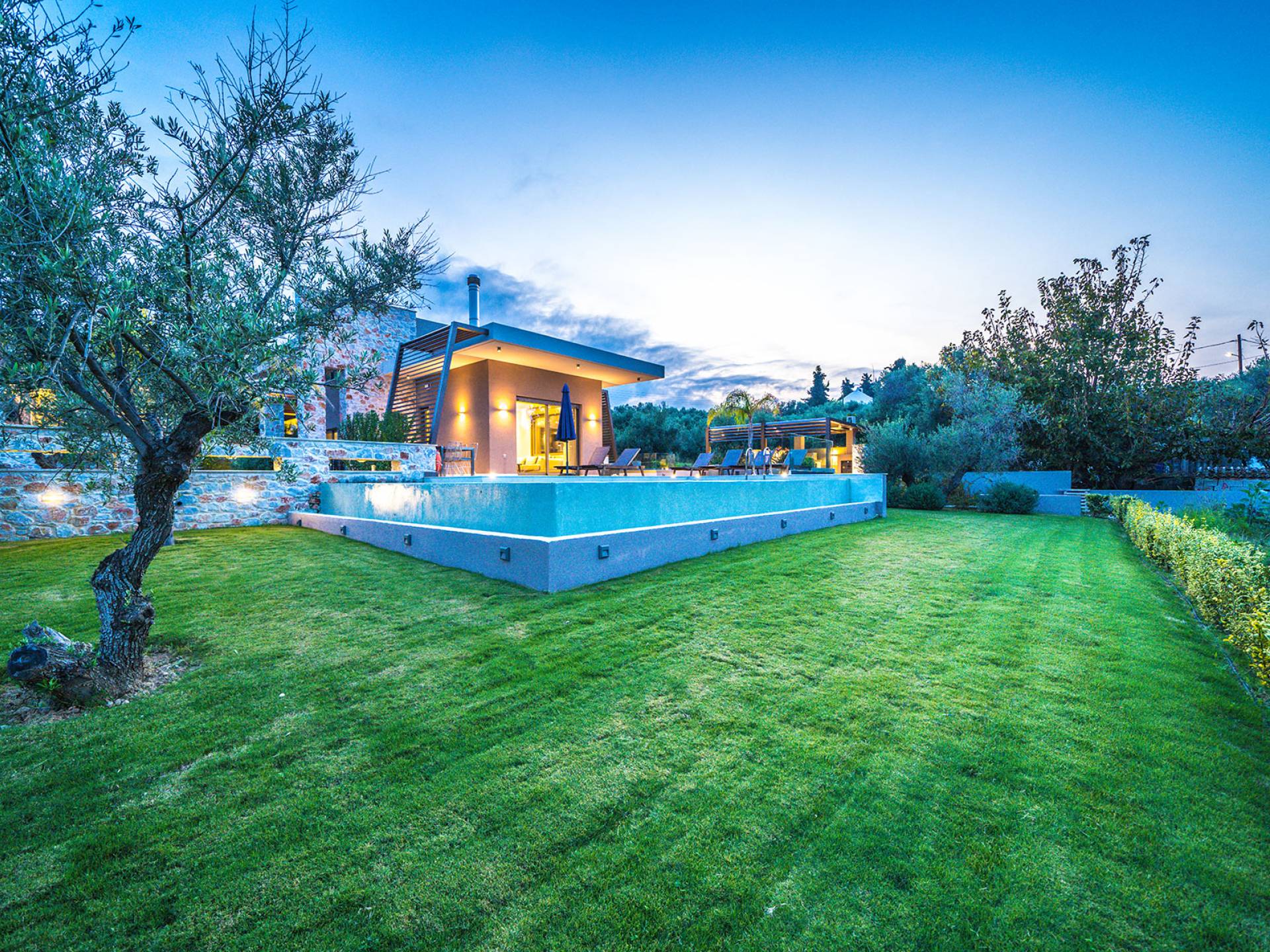 Выйдя за пределы Afroditi Villa Chania, вы будете наслаждаться большим садом и пейзажным бассейном, который идеально подходит для отдыха под критским солнцем. Здесь также есть барбекю и обеденный стол, а также зона отдыха, где вы можете послушать музыку или даже почитать книгу в сопровождении различных природных звуков критской сельской местности. Вечером вы можете насладиться великолепным романтическим закатом, который раскрашивает прекраснейшими красками чистое синее средиземноморское небо, или вы можете проехать примерно 3-4 минуты до ближайших ресторанов и отведать критскую кухню. Всего в 2 км от отеля находится прекрасный песчаный пляж Агии Апостоли, подходящий для детей. также есть парк, который идеально подходит для бега.