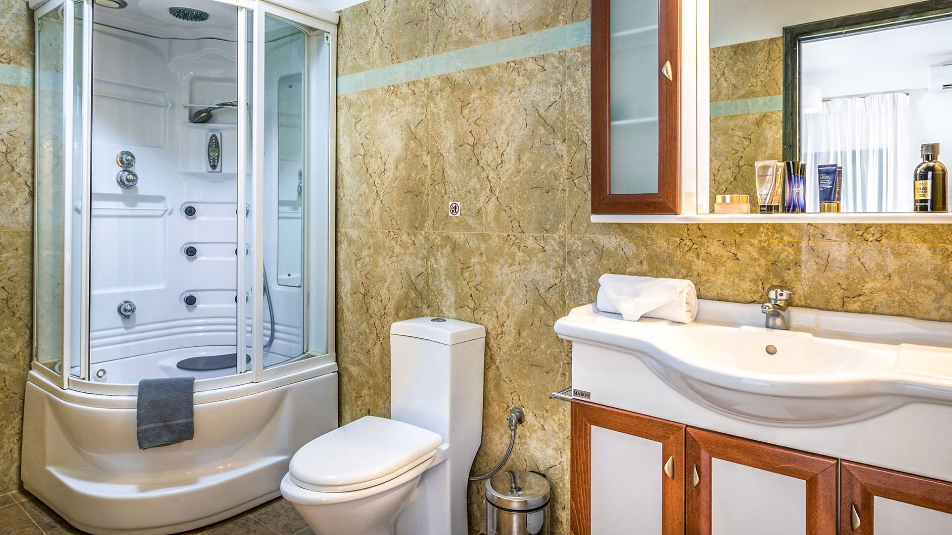 Akrotiri SeaView Estate Chania features 13 beautifully designed bedrooms spread across three villas, ensuring ample privacy and comfort for all guests.