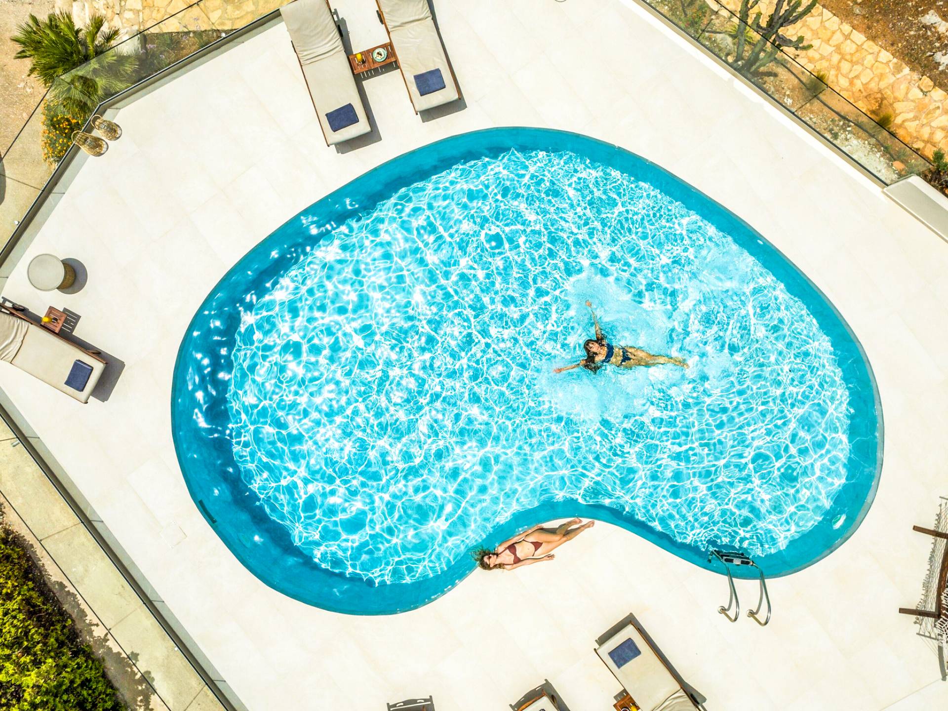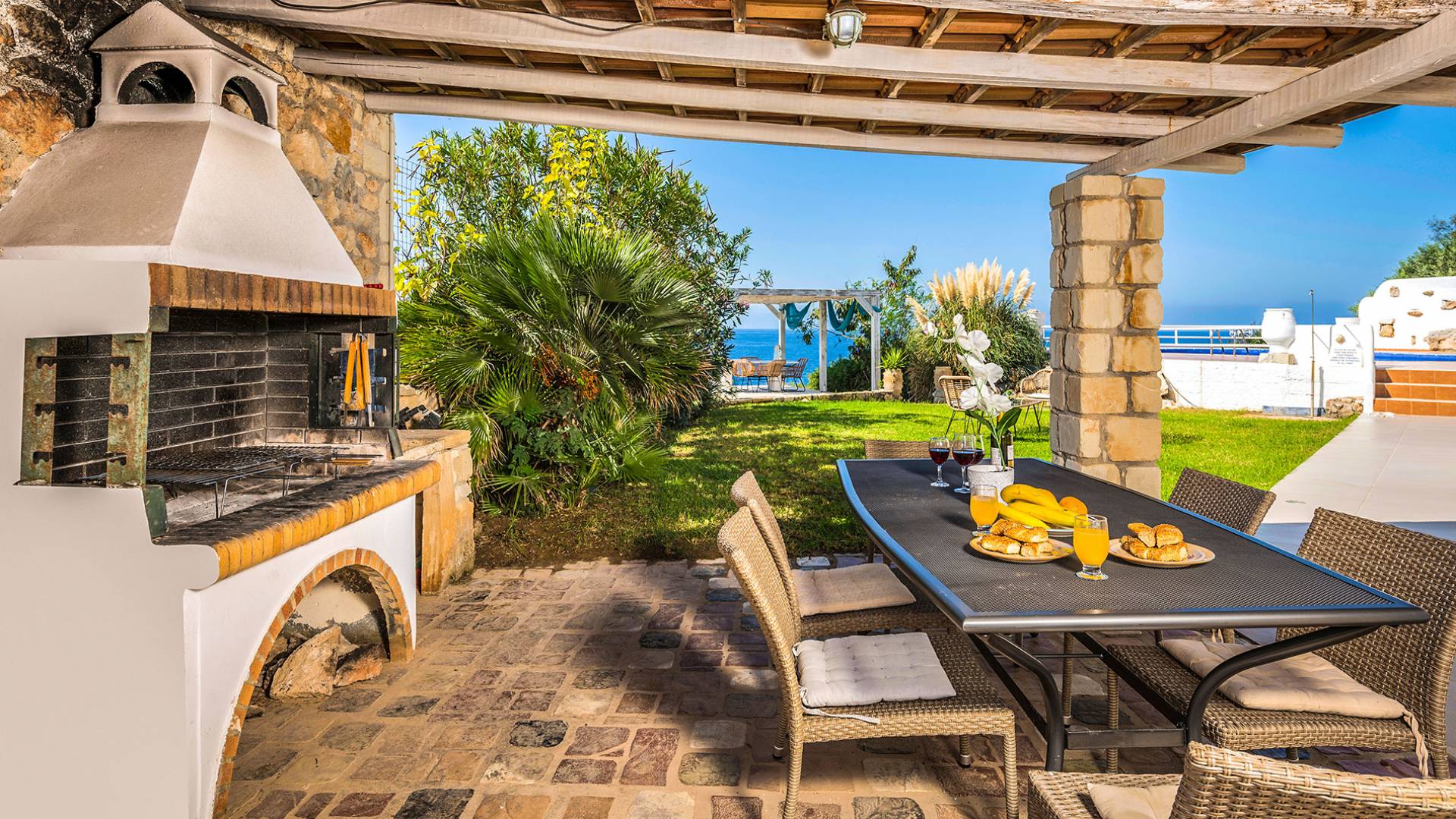 The outdoor areas are the heart of the villas, featuring 3 stunning crystal-clear swimming pools, sun loungers, and umbrellas. Shaded pergolas with outdoor dining tables and BBQs invites long, relaxed meals, soaking in the sea views, sunshine, and gentle coastal breeze.