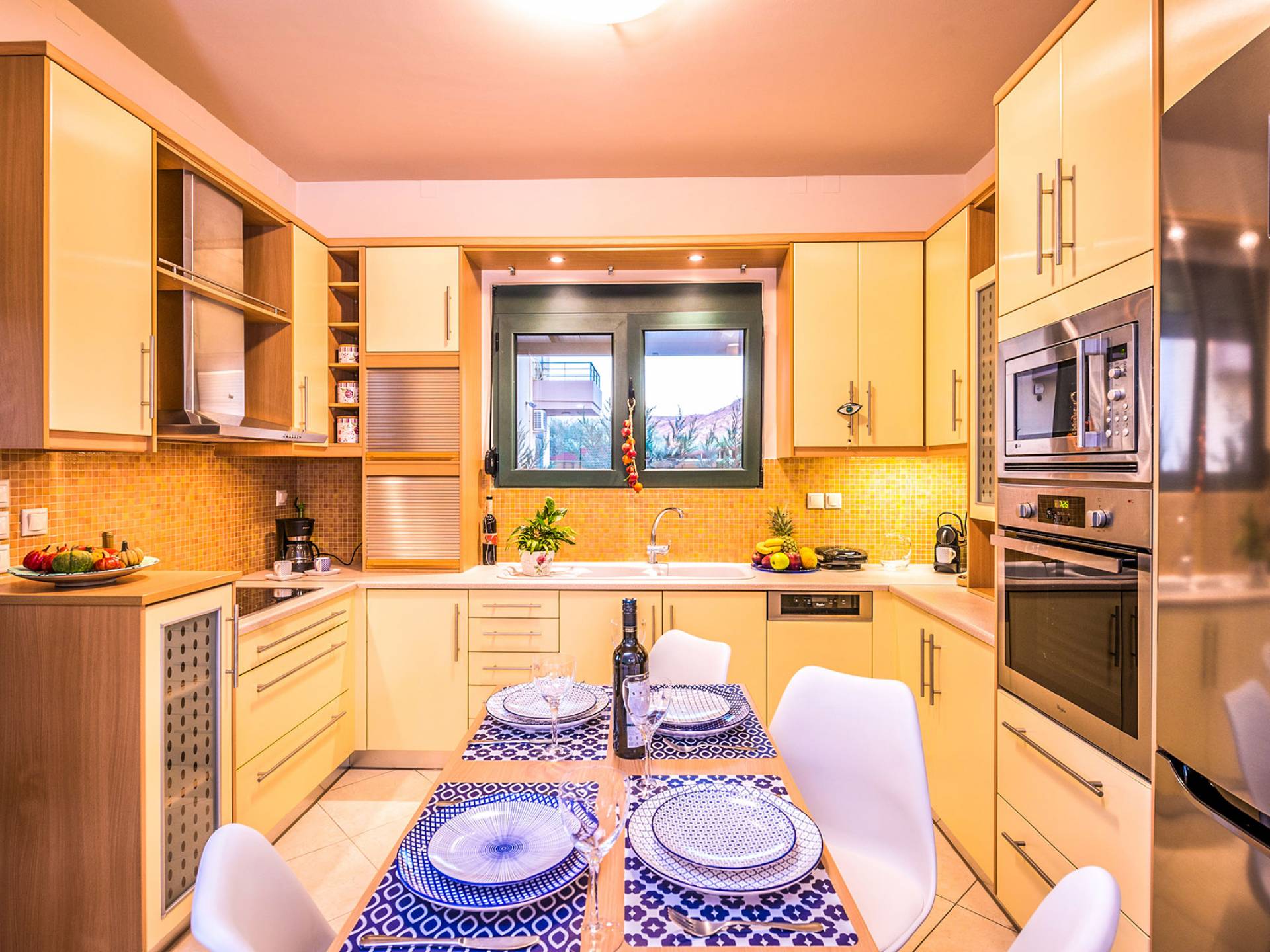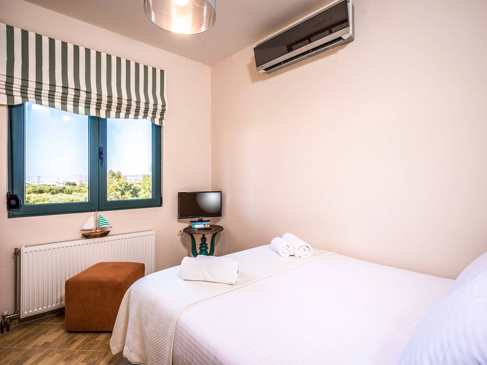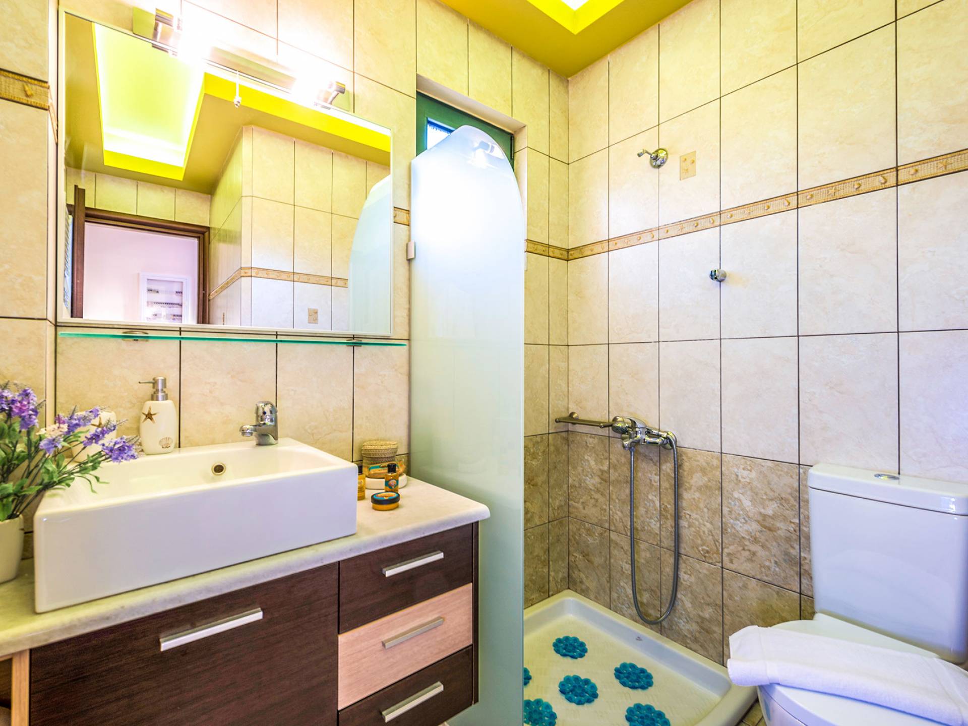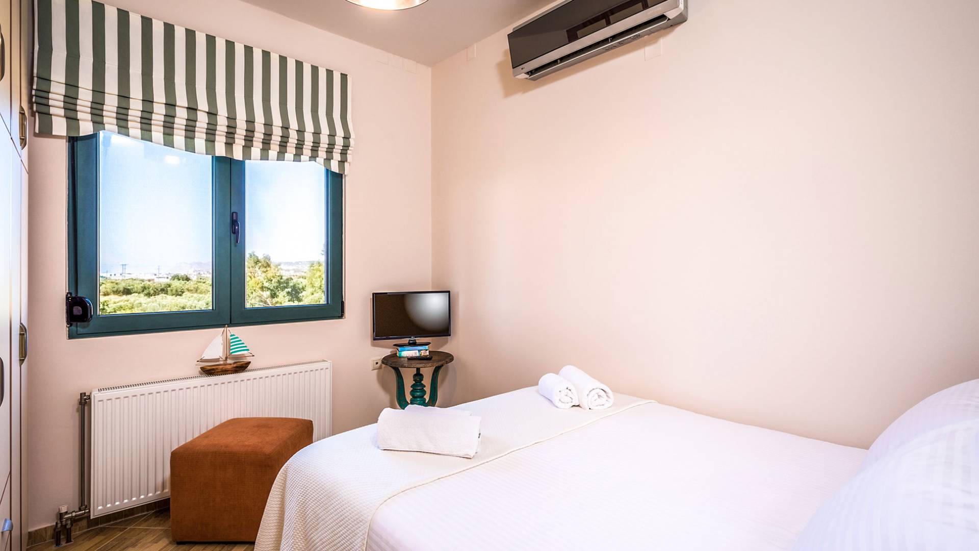 На вилле Antonia Blue Chania есть большая и удобная гостиная с ЖК-телевизором, полностью оборудованная кухня и обеденная зона. Большой диван в гостиной может быть преобразован в большую двуспальную кровать для размещения еще 2 человек. На этом этаже также есть большая веранда с прекрасным видом и обеденный стол на открытом воздухе. Также имеется спальня с 1 большой двуспальной кроватью и ванная комната с душем. На верхнем этаже находятся еще 2 спальни и большая ванная комната с ванной. Двуспальные кровати также могут быть преобразованы в 2 односпальные кровати. На этом этаже также есть большой балкон с великолепным видом.