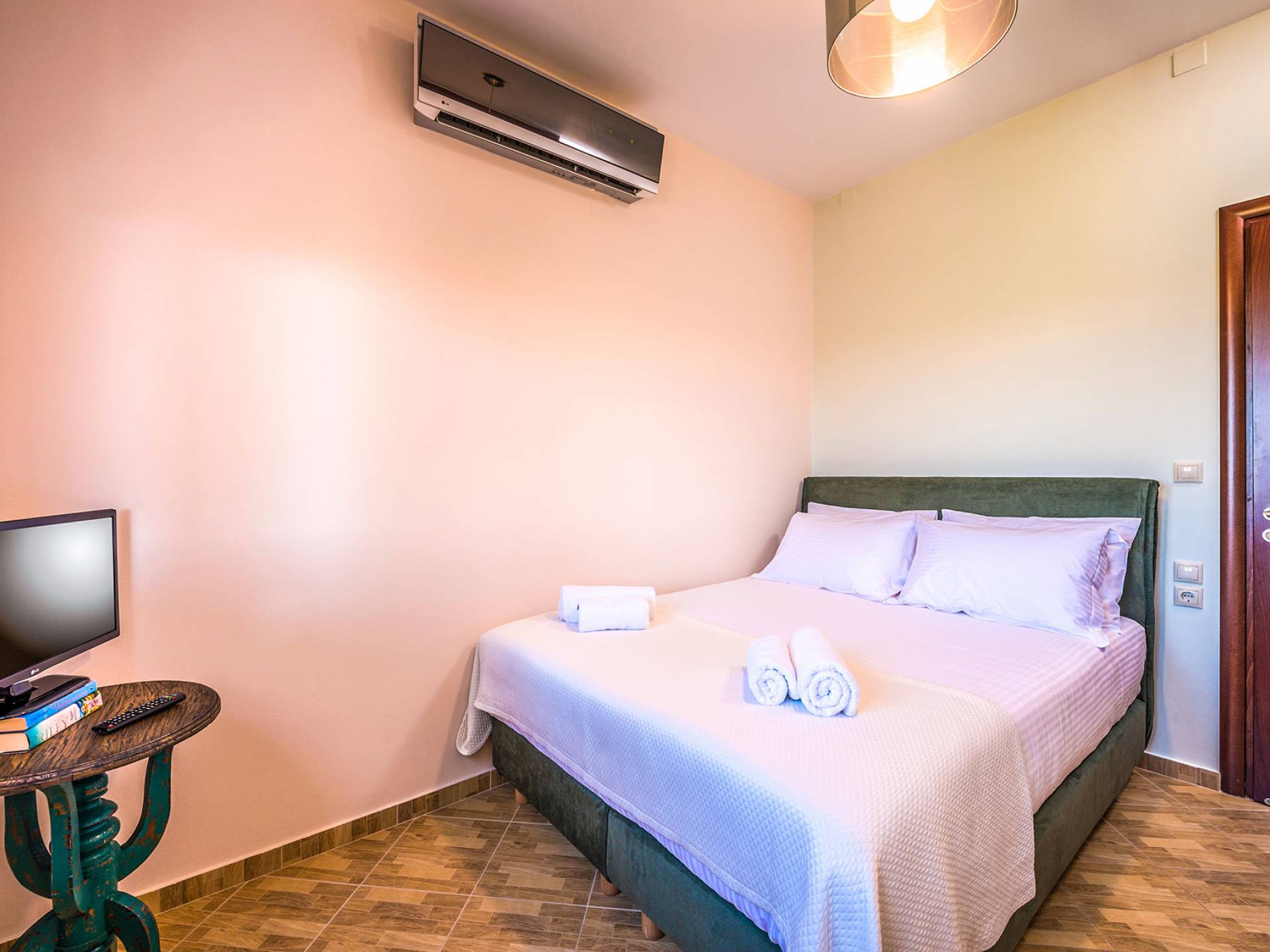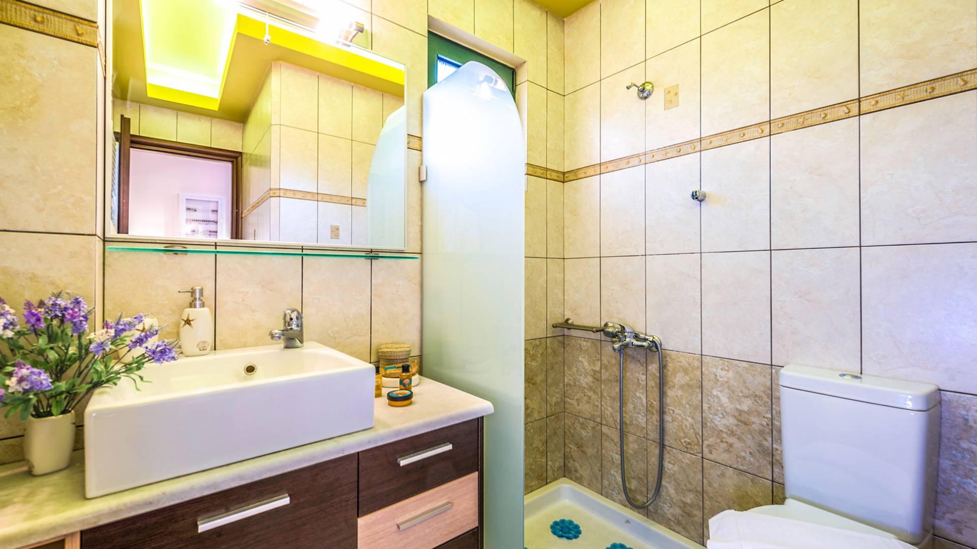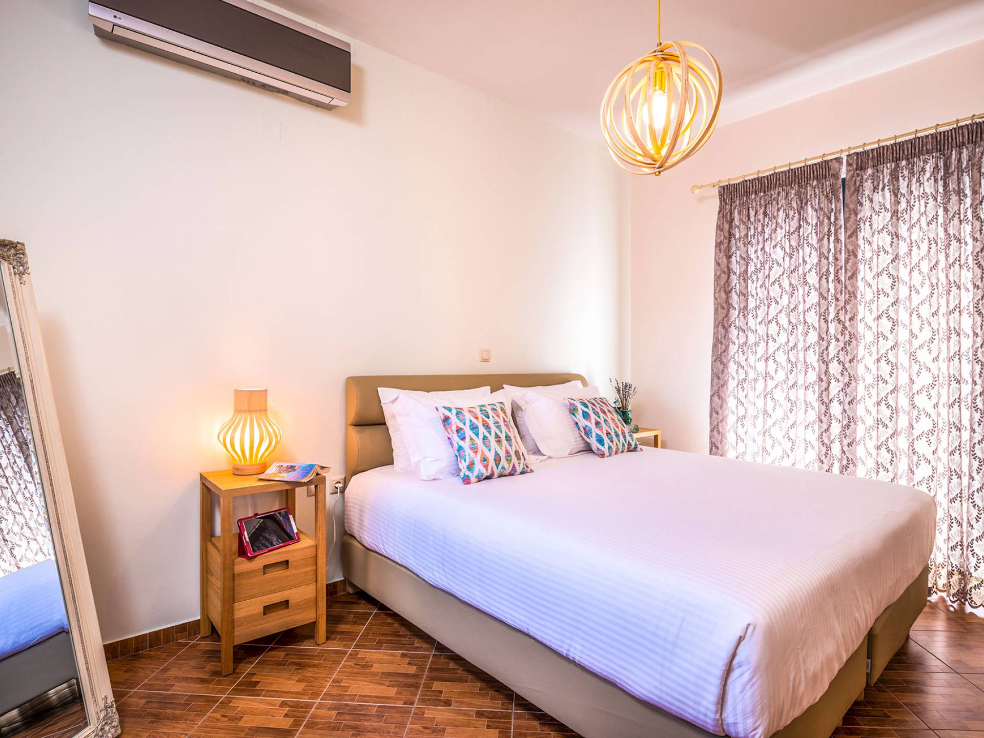 На вилле Antonia Blue Chania есть большая и удобная гостиная с ЖК-телевизором, полностью оборудованная кухня и обеденная зона. Большой диван в гостиной может быть преобразован в большую двуспальную кровать для размещения еще 2 человек. На этом этаже также есть большая веранда с прекрасным видом и обеденный стол на открытом воздухе. Также имеется спальня с 1 большой двуспальной кроватью и ванная комната с душем. На верхнем этаже находятся еще 2 спальни и большая ванная комната с ванной. Двуспальные кровати также могут быть преобразованы в 2 односпальные кровати. На этом этаже также есть большой балкон с великолепным видом.