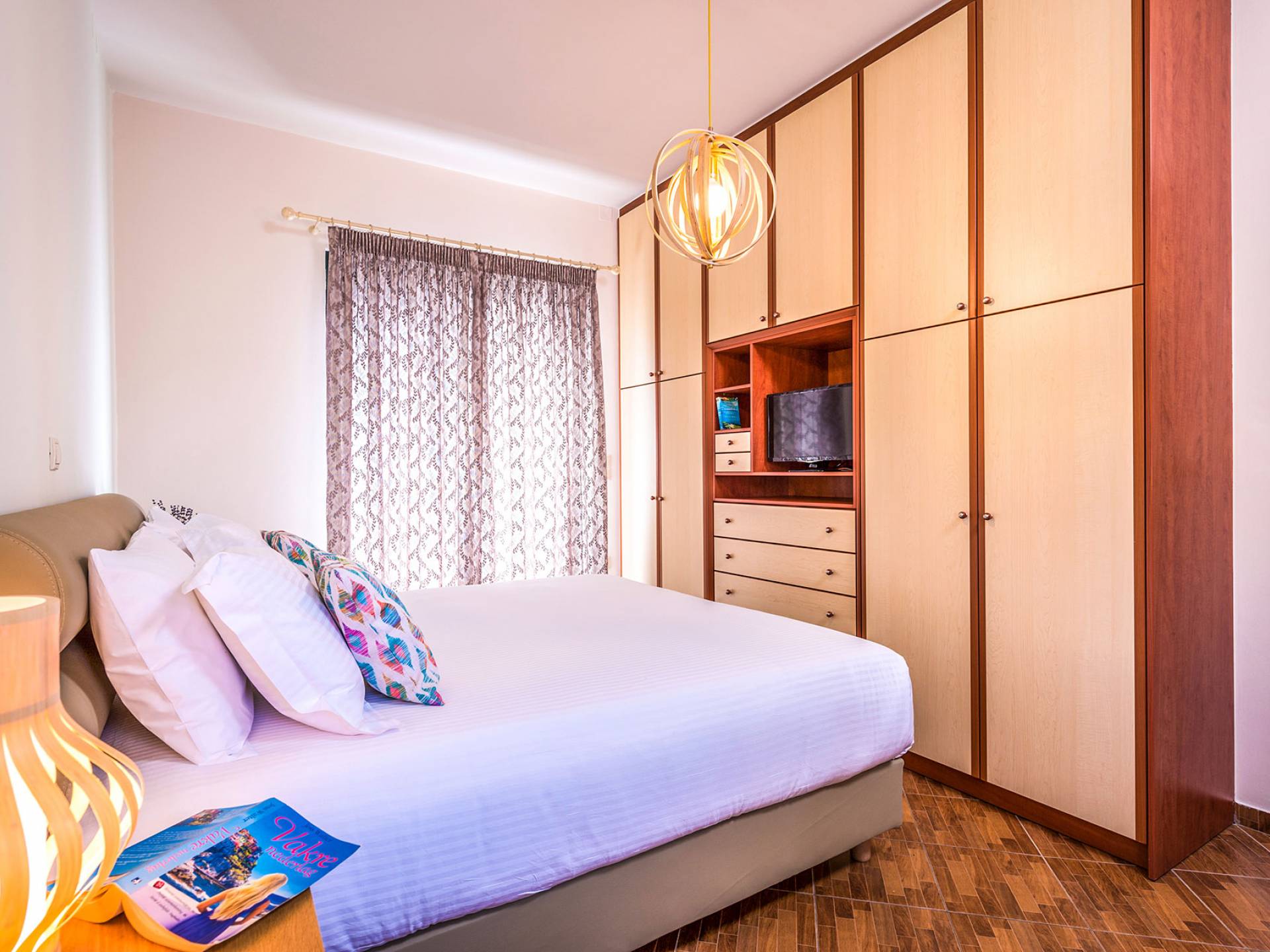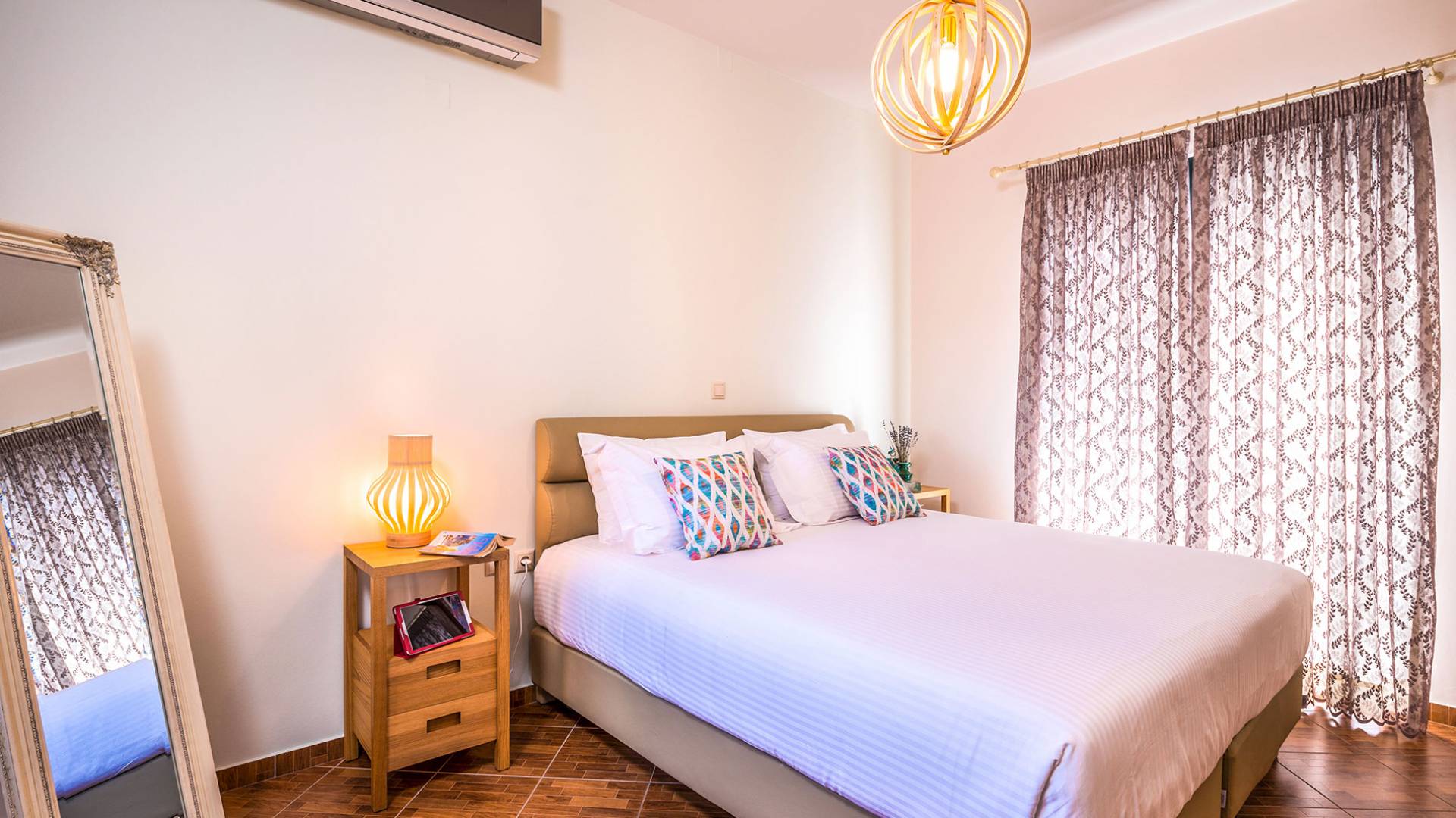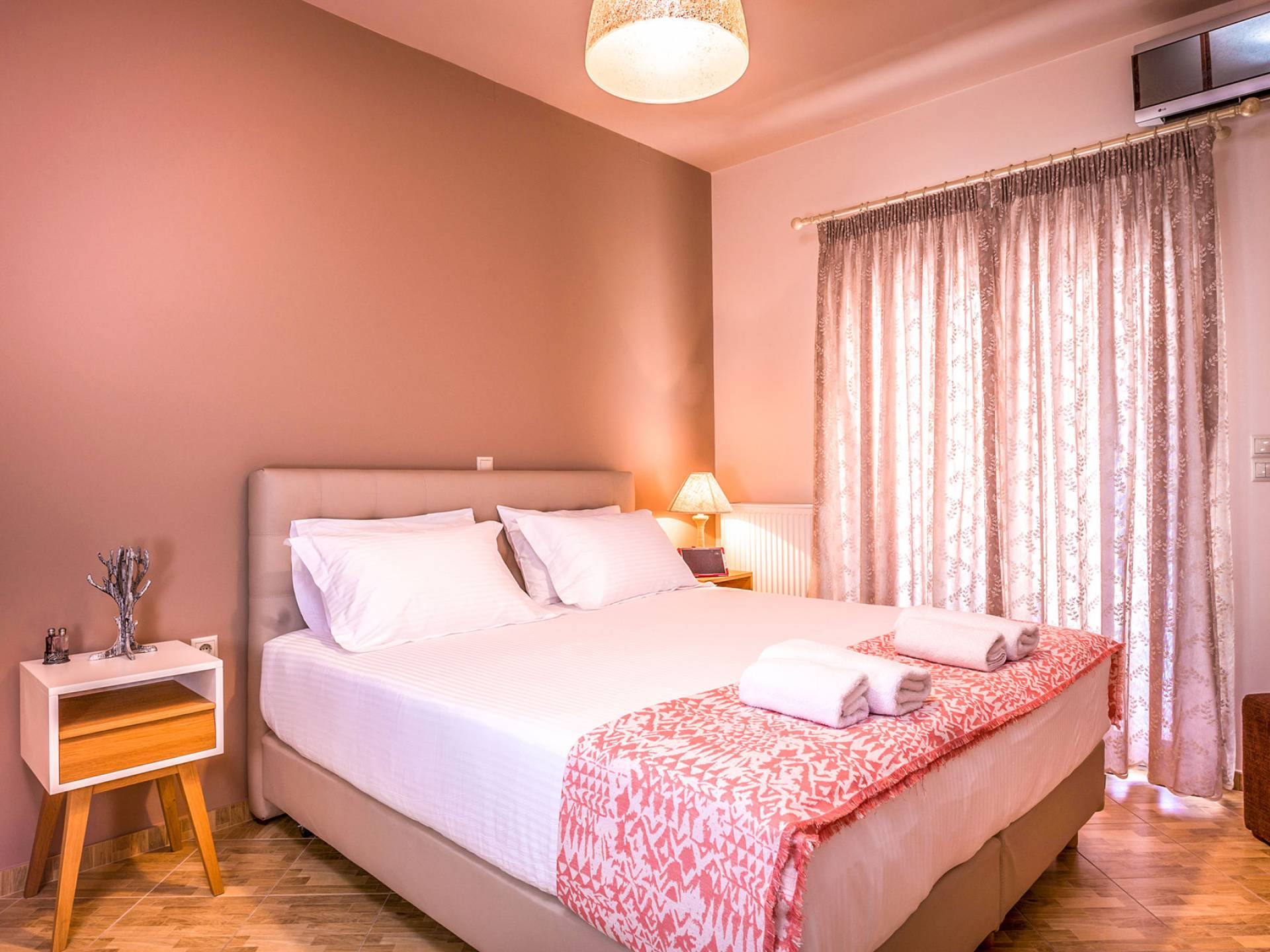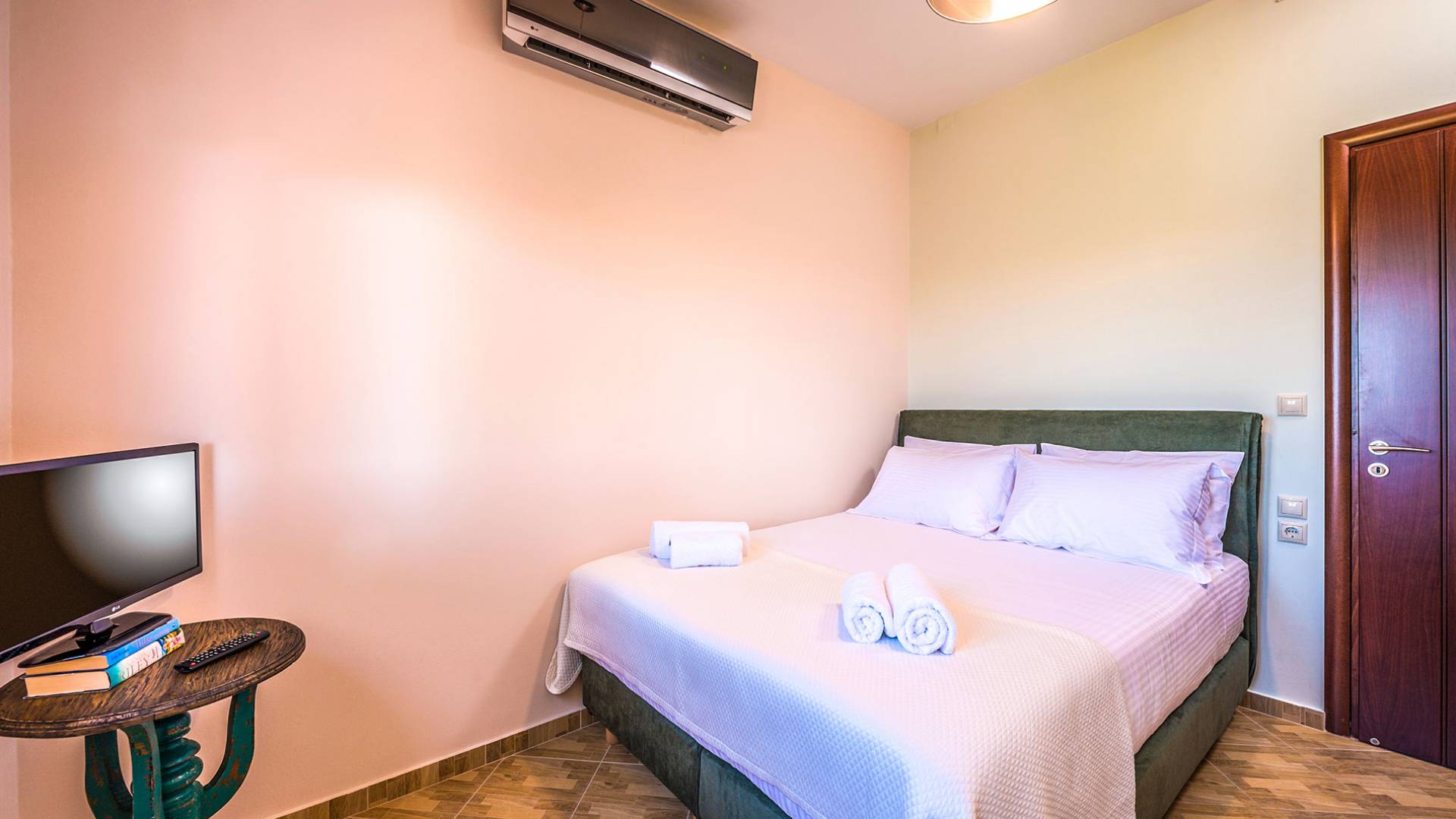 На вилле Antonia Blue Chania есть большая и удобная гостиная с ЖК-телевизором, полностью оборудованная кухня и обеденная зона. Большой диван в гостиной может быть преобразован в большую двуспальную кровать для размещения еще 2 человек. На этом этаже также есть большая веранда с прекрасным видом и обеденный стол на открытом воздухе. Также имеется спальня с 1 большой двуспальной кроватью и ванная комната с душем. На верхнем этаже находятся еще 2 спальни и большая ванная комната с ванной. Двуспальные кровати также могут быть преобразованы в 2 односпальные кровати. На этом этаже также есть большой балкон с великолепным видом.