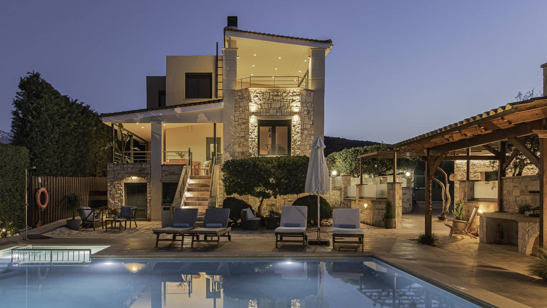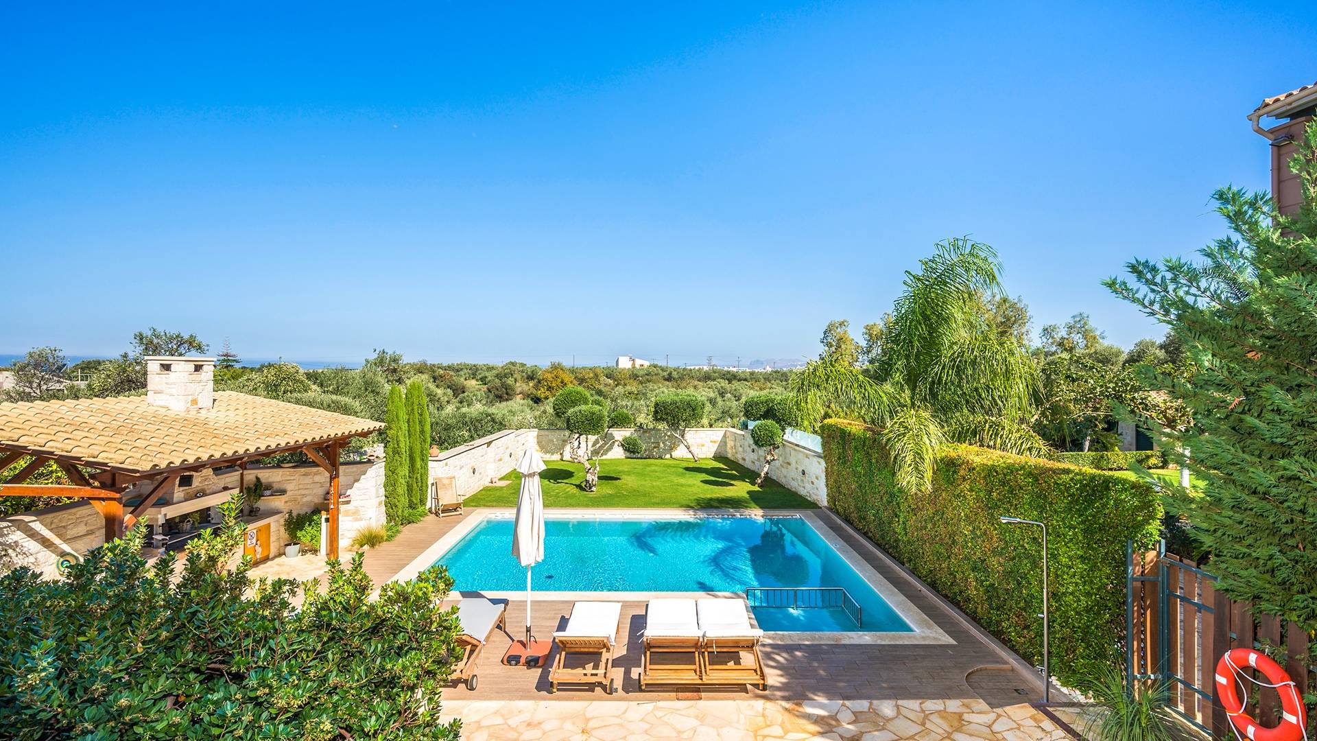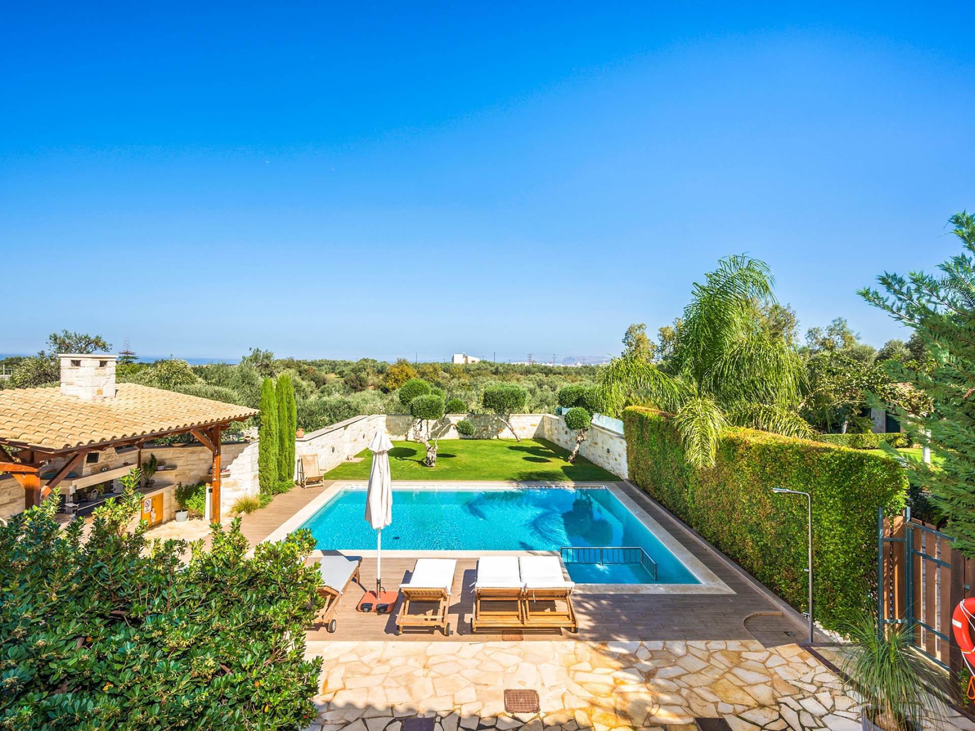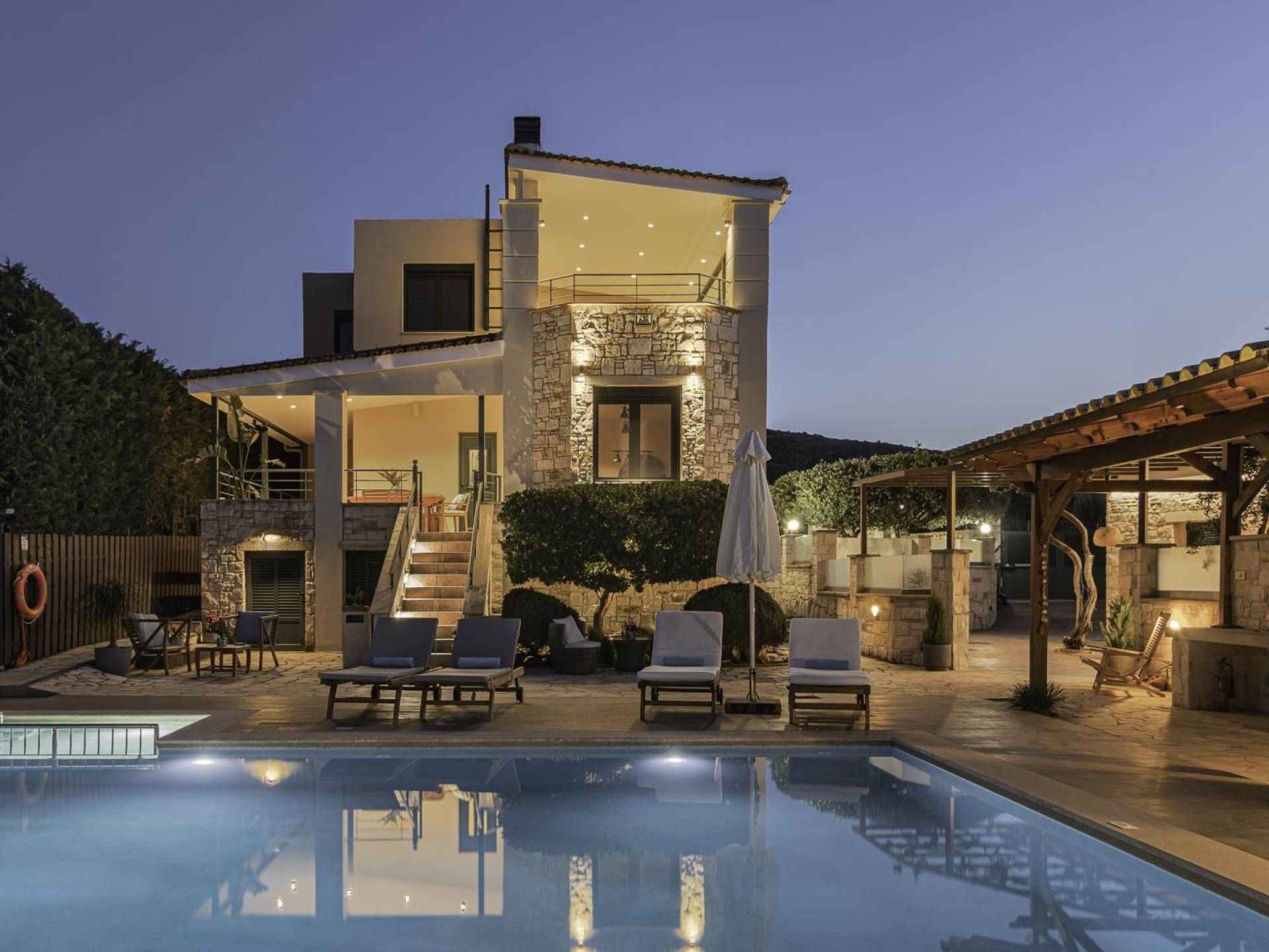Antonia Blue Villa Chania - это совершенно новое роскошное здание, расположенное в деревне Мурниес, всего в 5 минутах езды от центра города Ханья и рядом со всеми удобствами. Antonia Blue Villa Chania была спроектирована как семейный дом и поэтому хорошо оборудована, предлагая превосходное семейное размещение. Это двухэтажное здание, окруженное пышной зеленью и оливковыми деревьями.