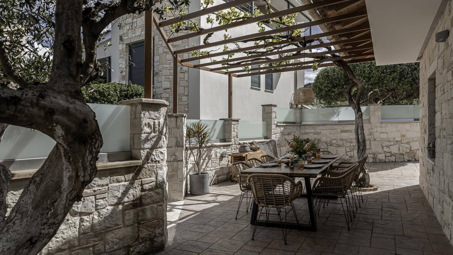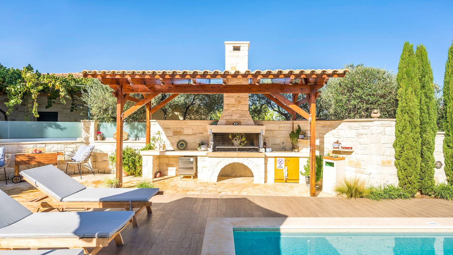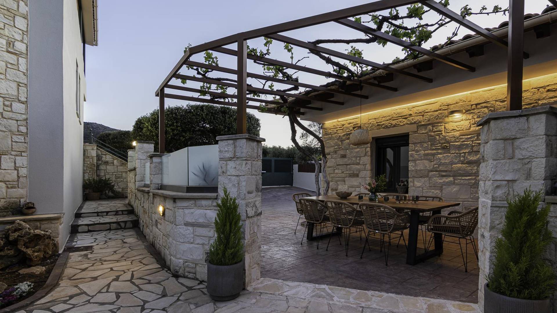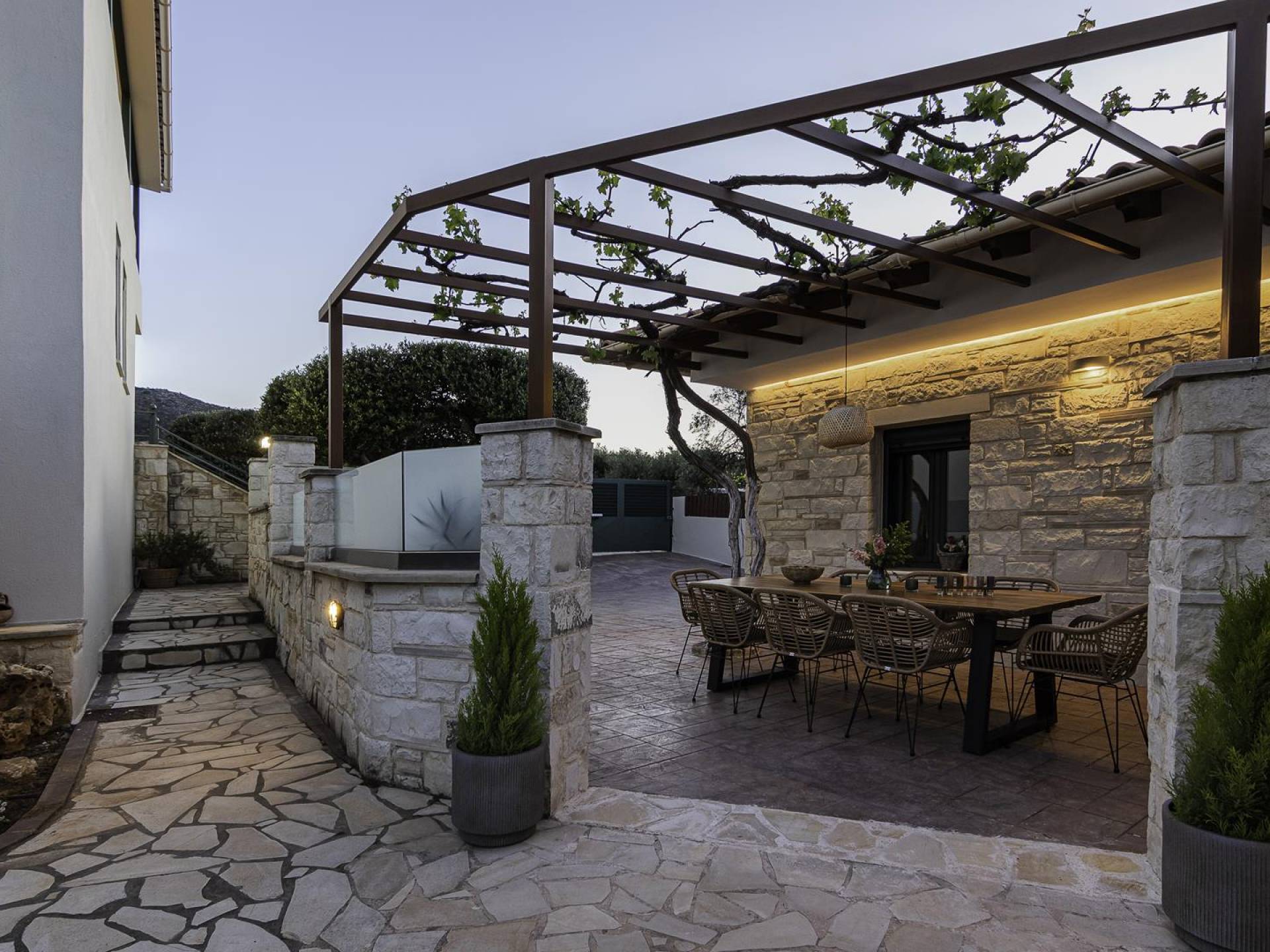 Antonia Blue Villa Chania - это совершенно новое роскошное здание, расположенное в деревне Мурниес, всего в 5 минутах езды от центра города Ханья и рядом со всеми удобствами. Antonia Blue Villa Chania была спроектирована как семейный дом и поэтому хорошо оборудована, предлагая превосходное семейное размещение. Это двухэтажное здание, окруженное пышной зеленью и оливковыми деревьями.