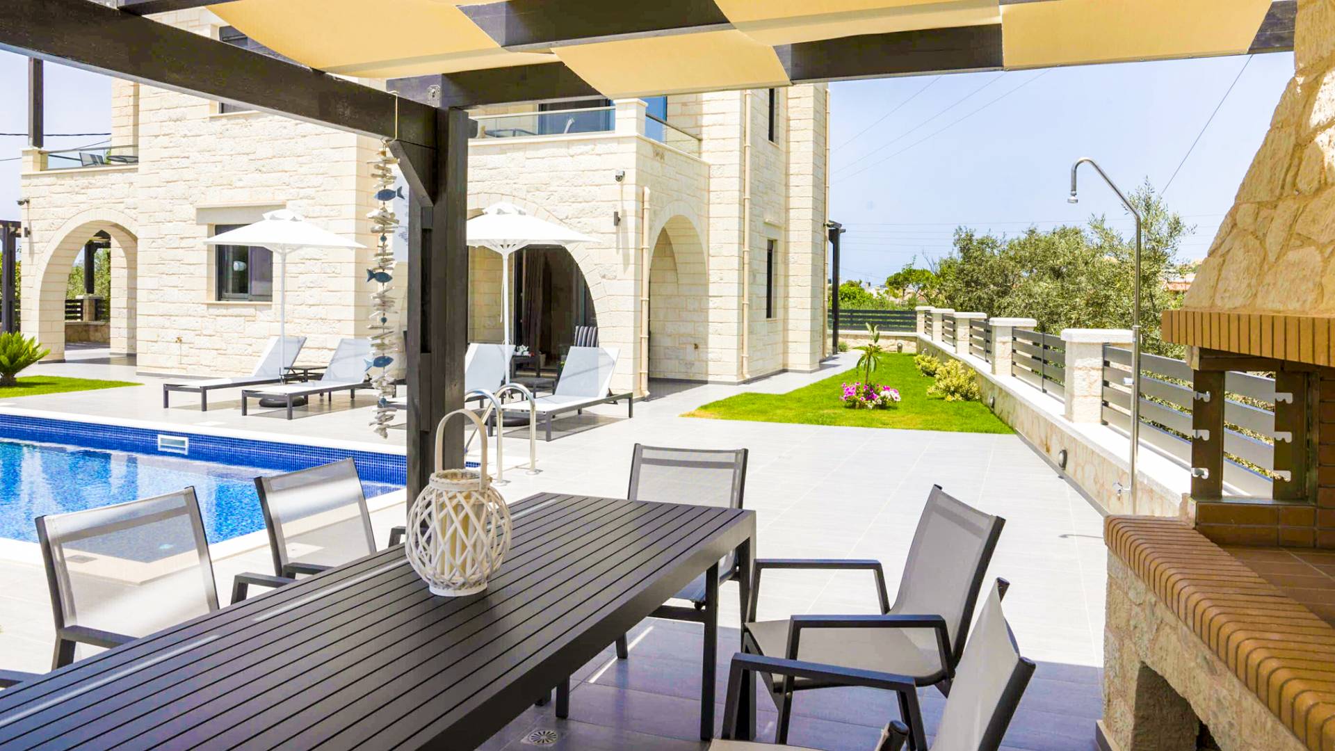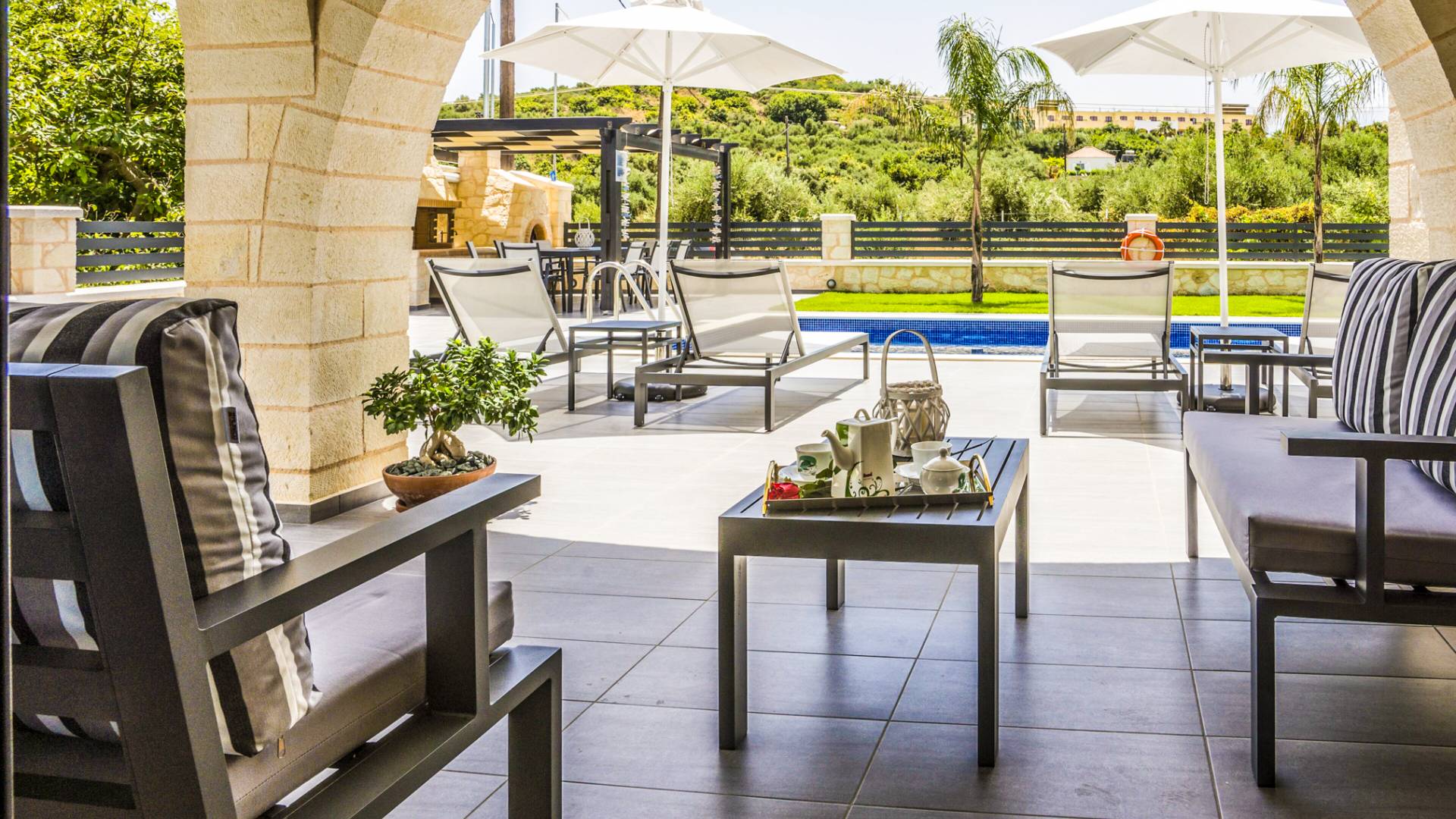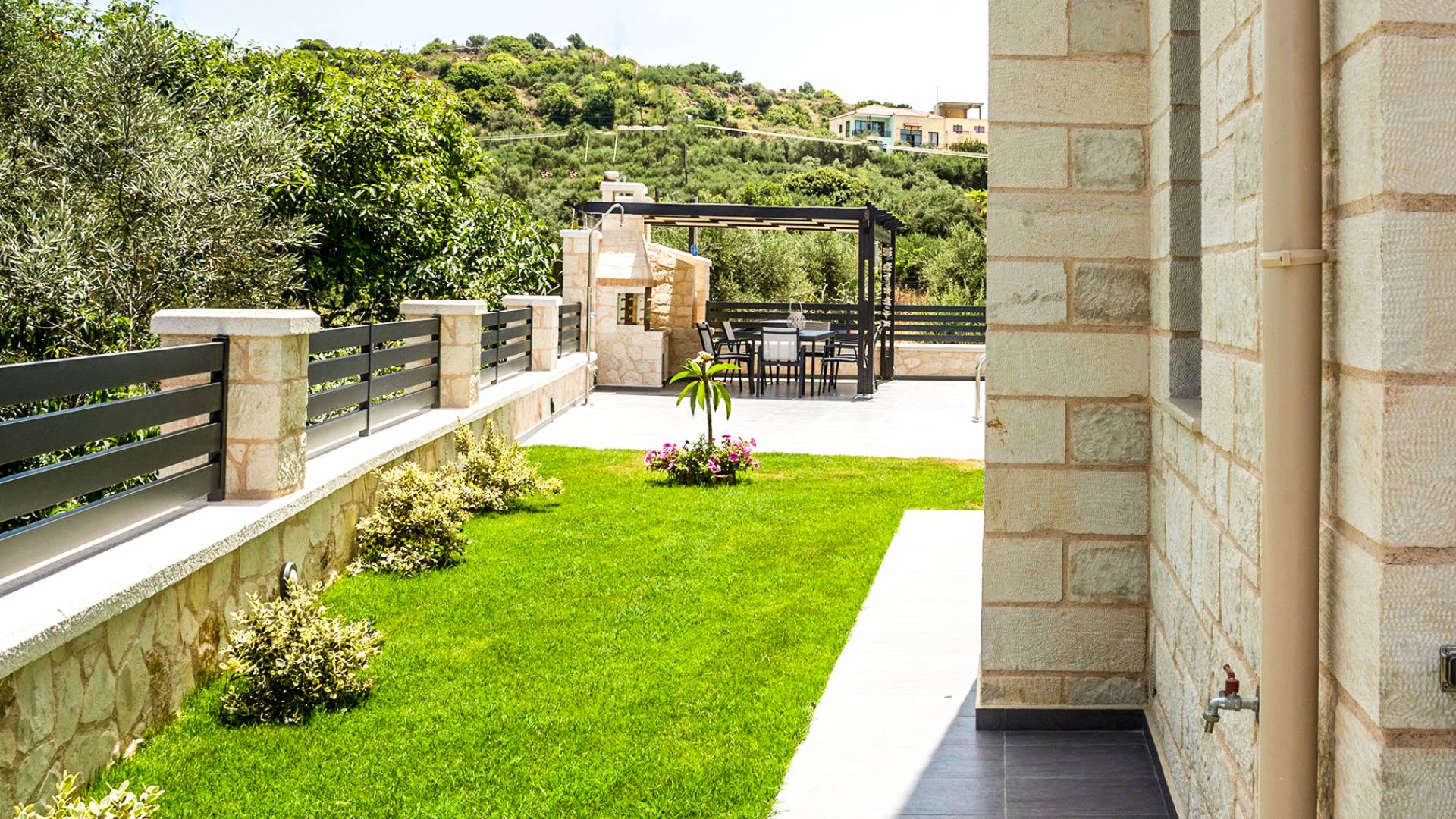 Зеленые зоны на открытом воздухе с газоном, пальмами, бассейном и камнем для барбекю дополняют атмосферу и обещают незабываемые ночи. Традиционное критское гостеприимство не могло отсутствовать в доме по прибытии, а традиционные угощения соответственно времени, такие как хорошее вино, фрукты, орехи и мед, которые придадут новый оттенок вашему отдыху.
