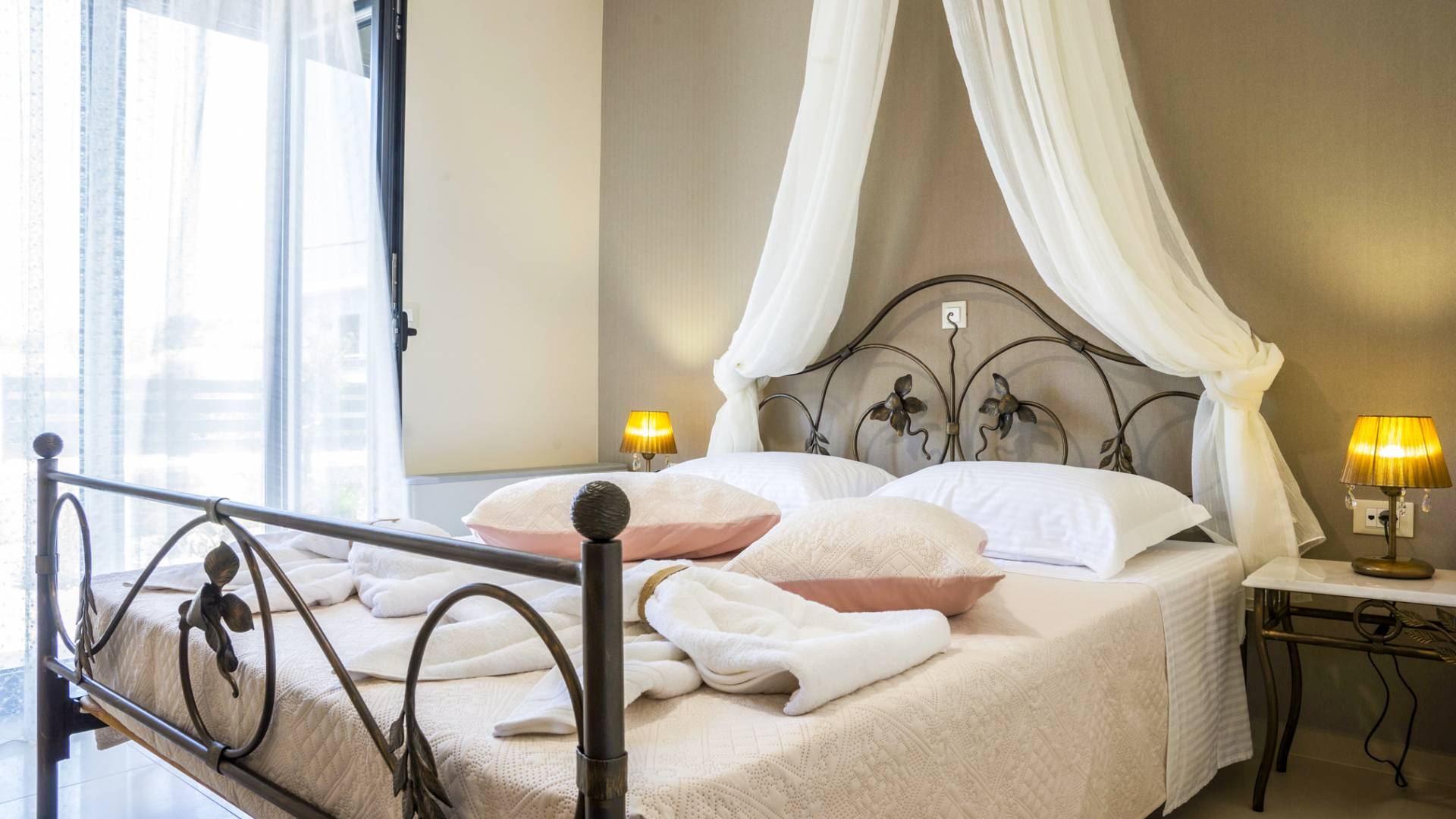 1-й этаж: Спальни 1 и 2: в этих номерах есть одна двуспальная кровать, ванная комната, большие встроенные шкафы и удобный балкон с местами для отдыха на свежем воздухе и красивым видом. Попробуйте общий хаммам для абсолютного расслабления. Спальня 3: В этом номере есть две односпальные кровати, большие шкафы и удобный балкон с зоной отдыха и красивым видом. Для полного расслабления посетите общий хаммам.