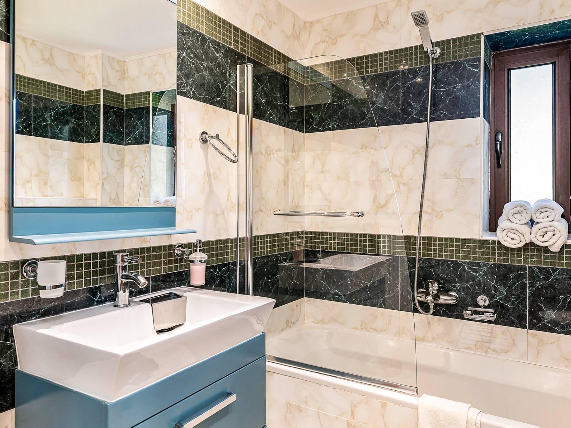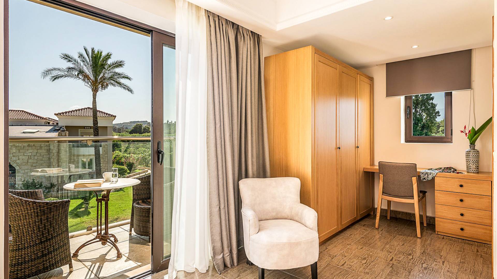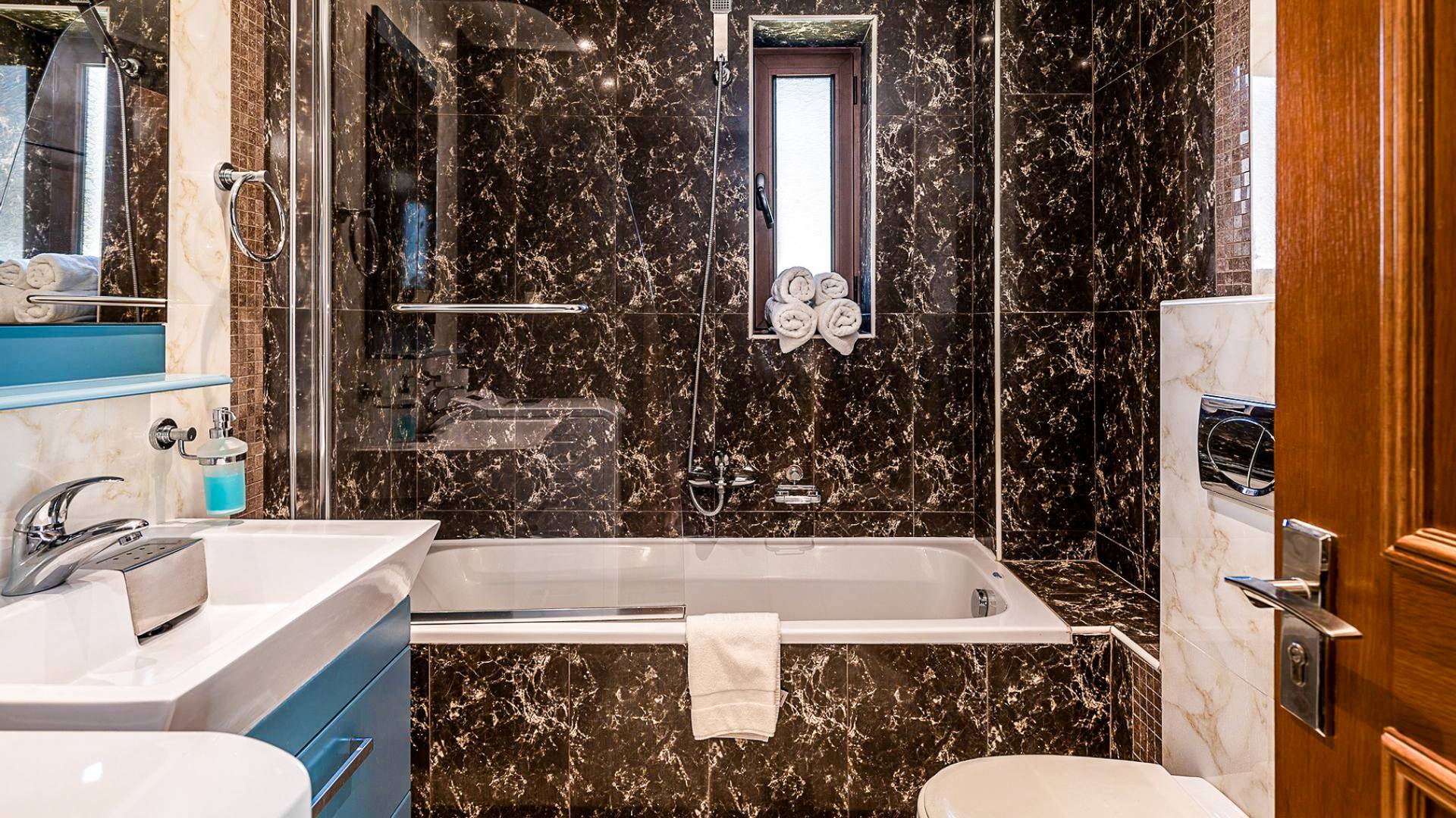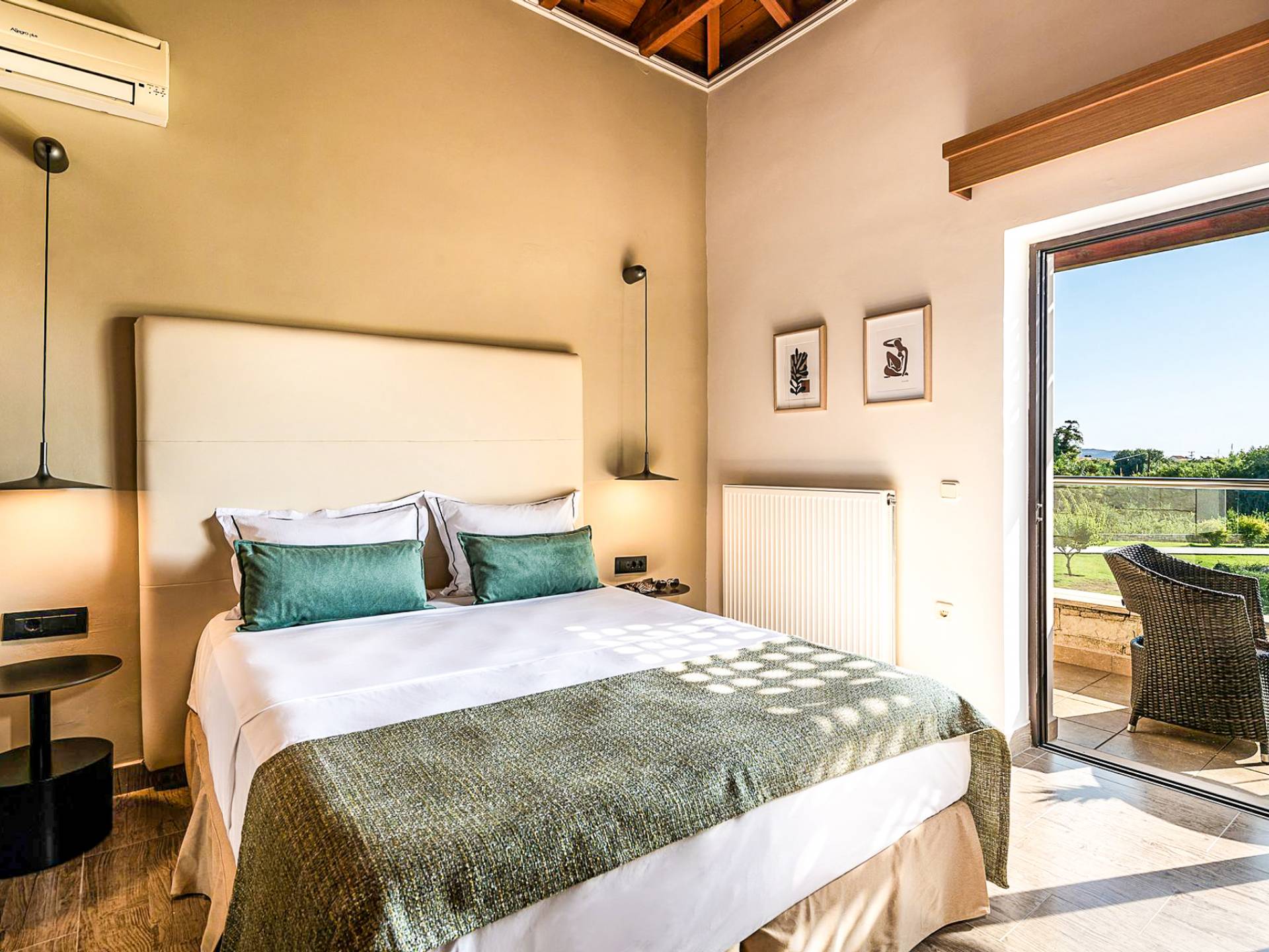 На первом этаже находится гостиная и обеденная зона открытой планировки с камином и принадлежностями для барбекю, которая сочетает в себе закрытый и открытый частные бассейны, обеспечивает все удобства и роскошь и создает поистине очаровательную атмосферу. На первом этаже находится спальня с двуспальной кроватью с ванной комнатой, туалет и дополнительная кровать. На втором этаже две спальни с двуспальными кроватями с ванными комнатами и просторные балконы с видом на чудесную сельскую местность. Во всех номерах есть 32-дюймовый телевизор с плоским экраном, кондиционер, центральное отопление, что делает виллу подходящей для проживания в течение всего года, садовую мебель, шезлонги и зонтики от солнца.