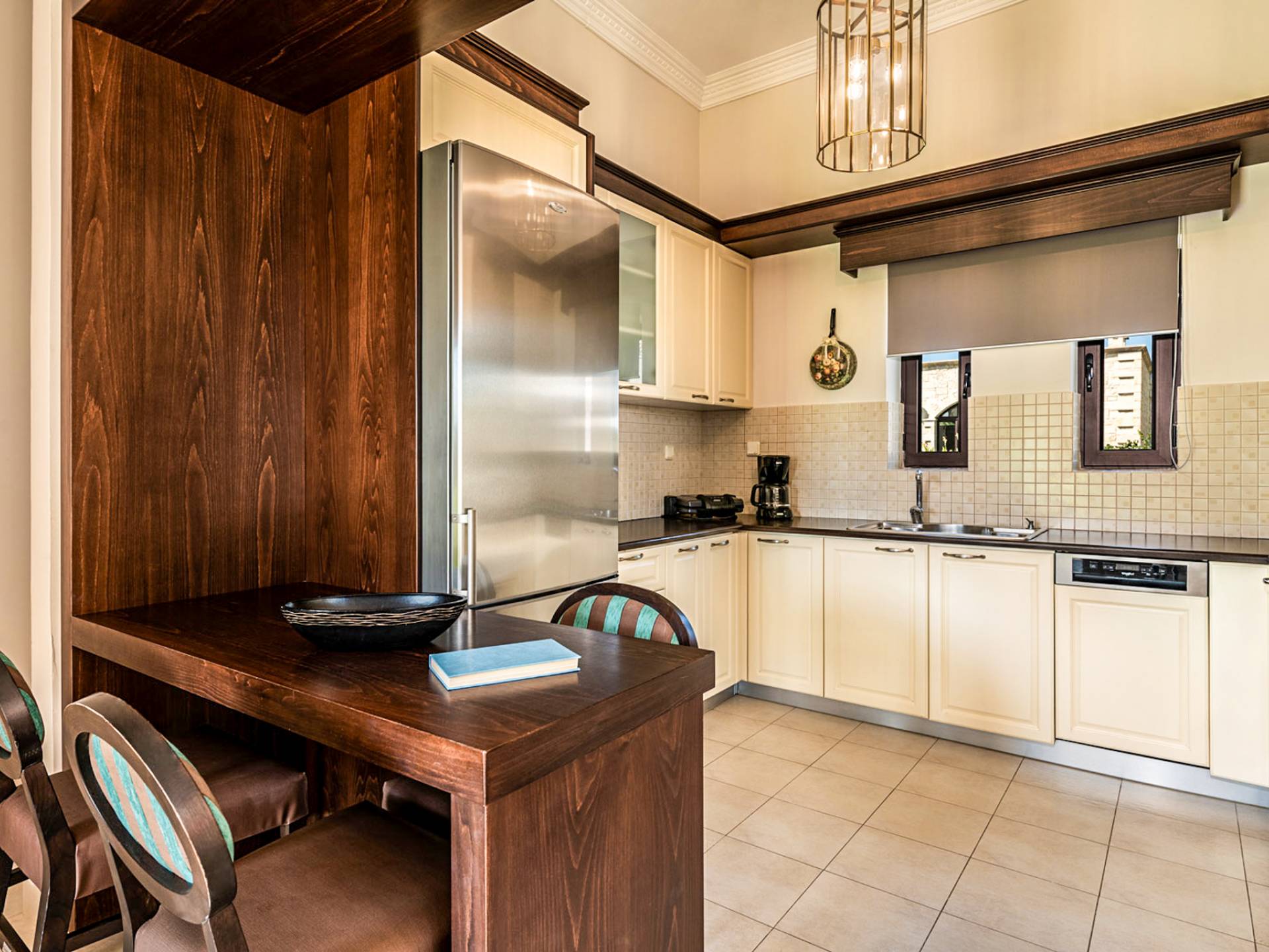 Плазменный телевизор, DVD-плеер, телефон, бесплатный Wi-Fi доступ в Интернет и сейф также доступны, а также полностью оборудованная кухня со всей современной бытовой техникой, включая холодильник / морозильник, духовку / плиту, микроволновую печь, посудомоечную машину, бойлер, тостер. , фильтр-кофе-машина, утюг и гладильная доска. На каждой вилле установлена стиральная машина, и на каждой вилле есть собственная парковка.
