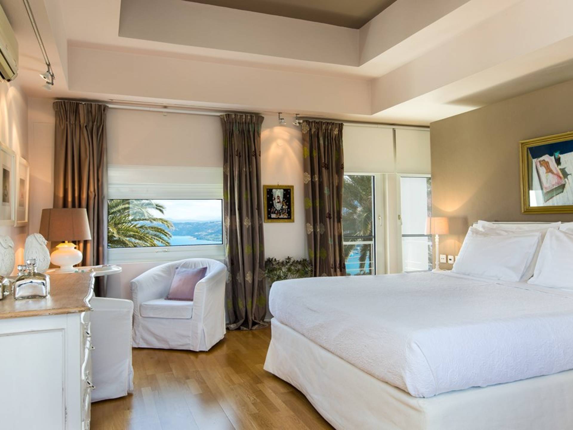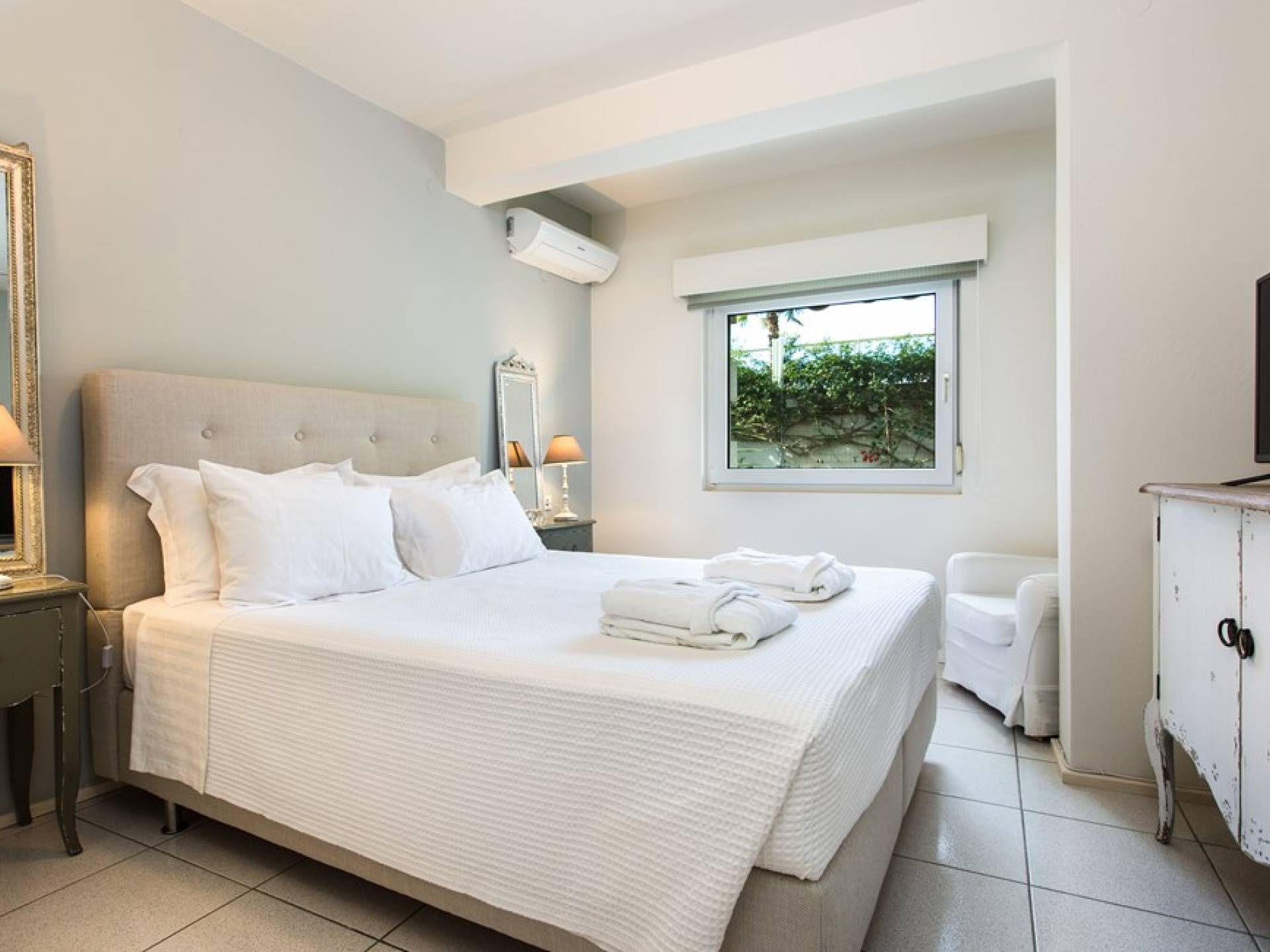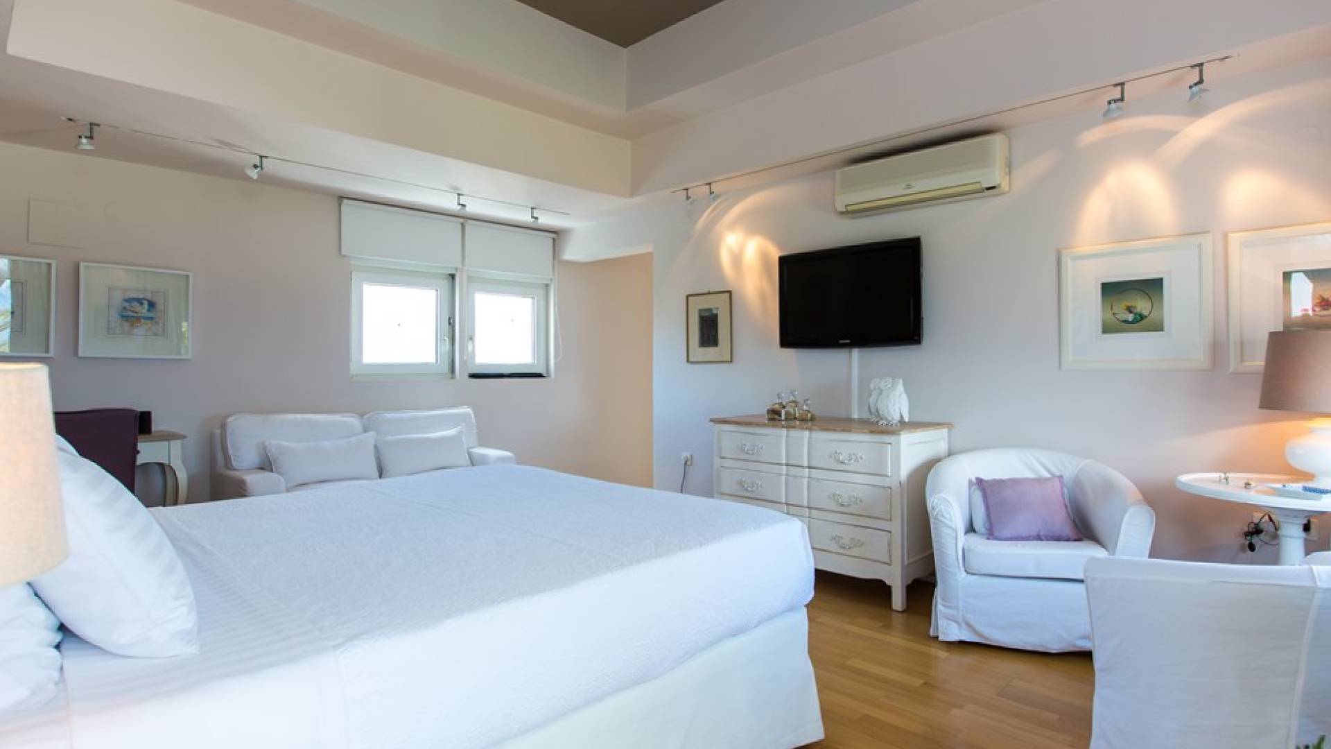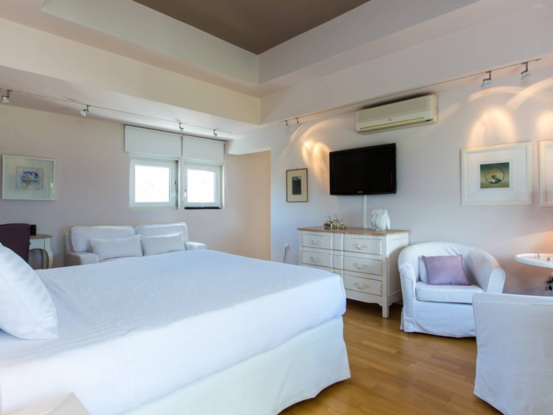 Все пять спален полностью оборудованы ванными комнатами и имеют балкон. Спустившись по лестнице на первый этаж, вы заметите полностью оборудованный тренажерный зал и большую игровую зону с камином и домашним кинотеатром. Casa Scordillli Chania отличается многочисленными и очень просторными и элегантными номерами, которые делают его идеальным для незабываемого роскошного отдыха.